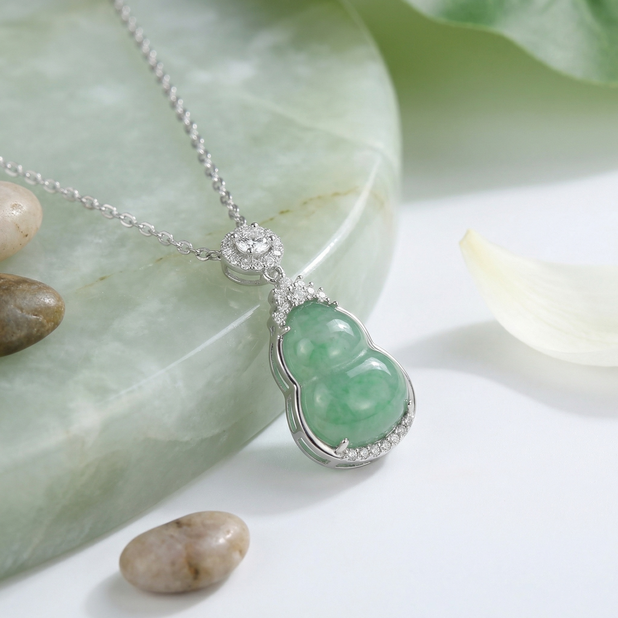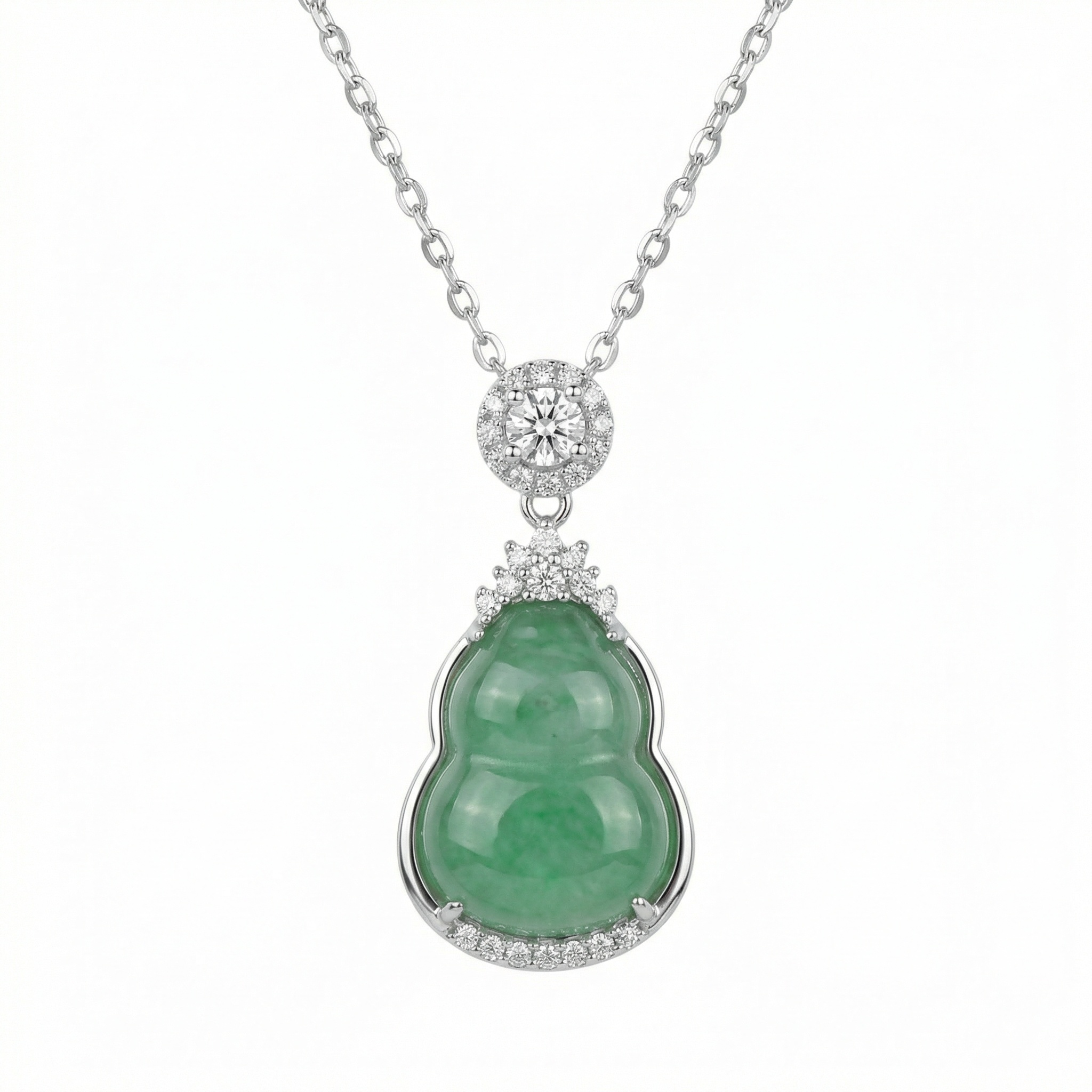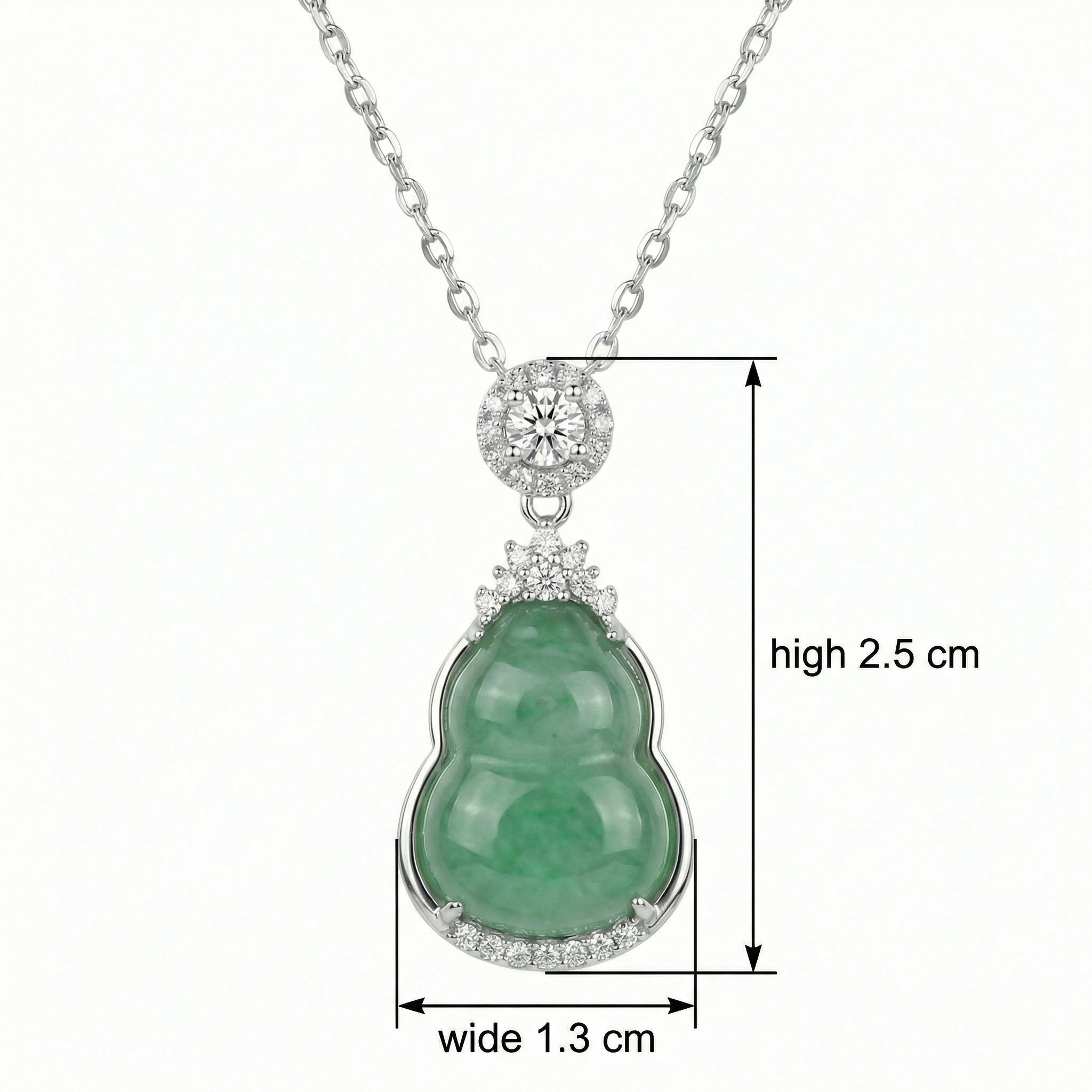 【Delivery Includes】 1 x 925 Silver Gourd Necklace with Irregular Jade and Round Diamond Pendant 1 x Premium Gift Box 1 x Jewelry Care Cloth 【Care Instructions】 1. Gently wipe the necklace with the included soft cloth after each wear to maintain shine and remove residue. 2. Store separately in the provided box to avoid scratches or tangling. 3. Avoid contact with harsh chemicals, perfumes, and excessive moisture to preserve the beauty of both jade and diamonds. 4. Remove before bathing or swimming to protect the gold and gemstones. | Brand: jewelryodm