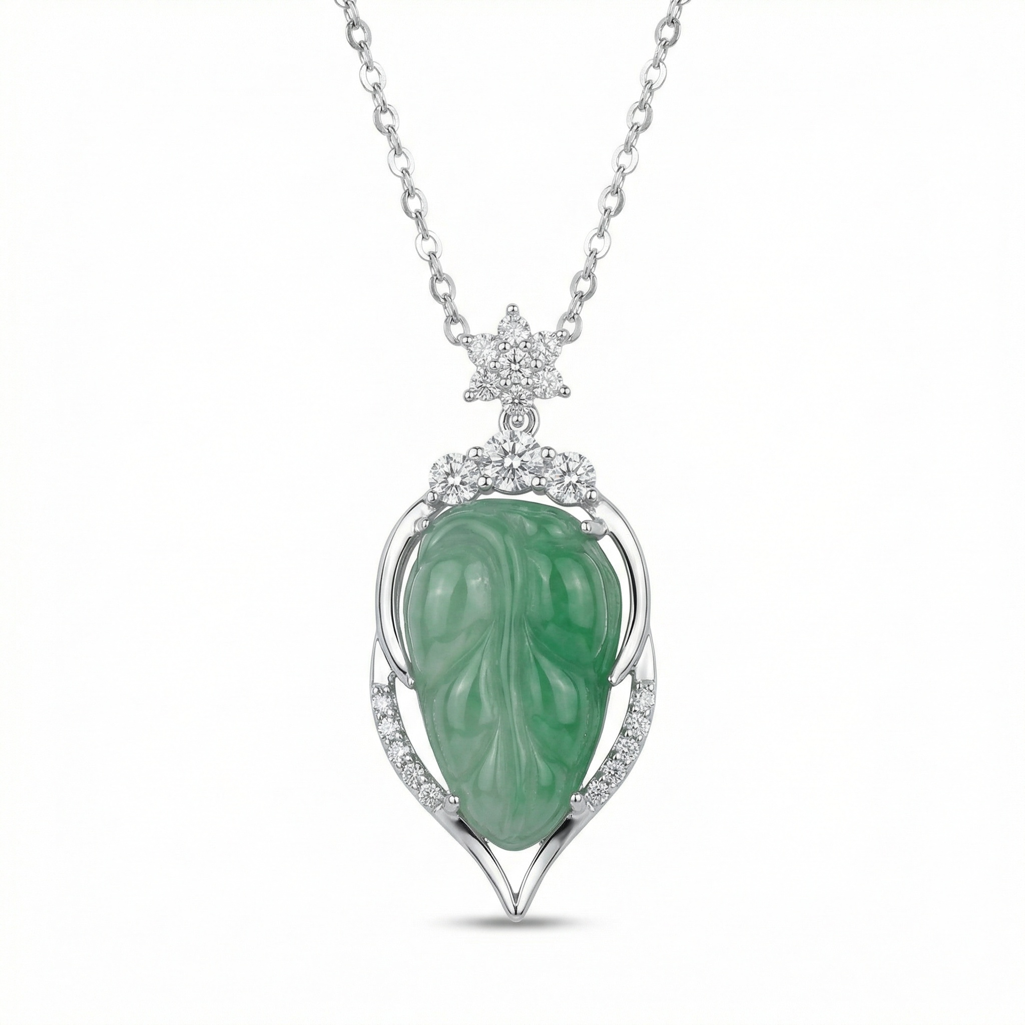 【Delivery Includes】 1 x Leaf Jade Necklace with Irregular Jade Pendant and Diamond Accents 1 x Premium Gift Box 1 x Soft Jewelry Cleaning Cloth 【Care Instructions】 1. Avoid contact with harsh chemicals, perfumes or cosmetics to preserve the natural beauty of the jade and the shine of . 2. Store necklace in a dry, sealed container when not in use, and separate it from other jewelry to prevent scratching. 3. Wipe gently with the included soft cloth after each wear to maintain brilliance and remove oils and dust. 4. Remove jewelry before swimming, bathing, or engaging in strenuous activities. | Brand: jewelryodm