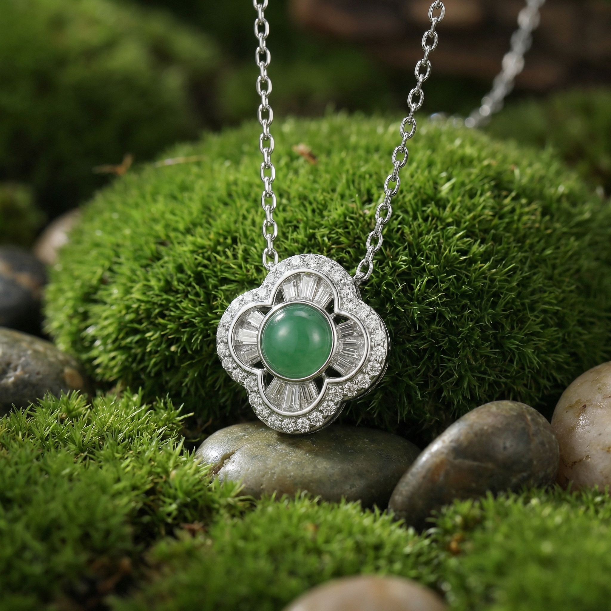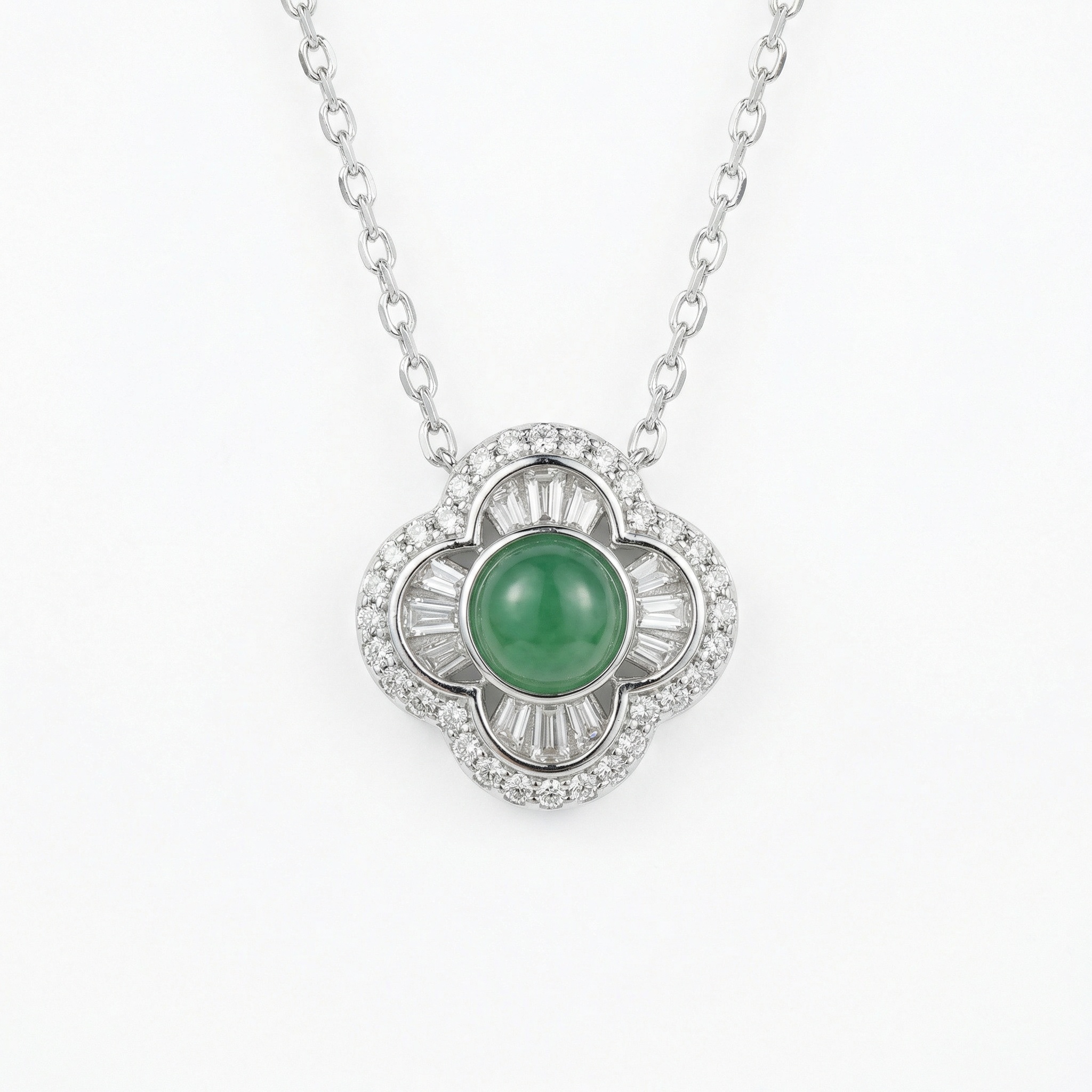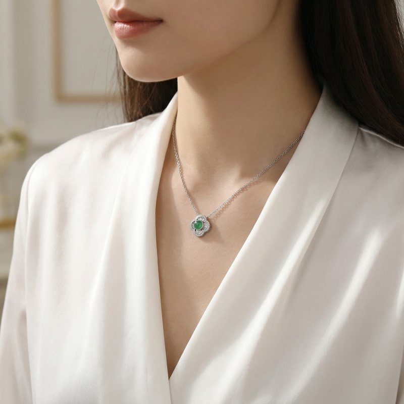 【Delivery Includes】 1 x Round Jade Flower Necklace with Diamond Halo 1 x Premium Gift Box 1 x Cleaning Cloth 【Care Instructions】 1. Store your necklace in the provided jewelry box or a soft pouch when not in use to avoid scratches and oxidation. 2. Gently clean with the included cloth to remove oils and dust. 3. Avoid exposing the jewelry to harsh chemicals, perfumes, or direct sunlight for prolonged periods. 4. Remove before bathing, swimming, or strenuous activities to maintain shine and durability. | Brand: jewelryodm