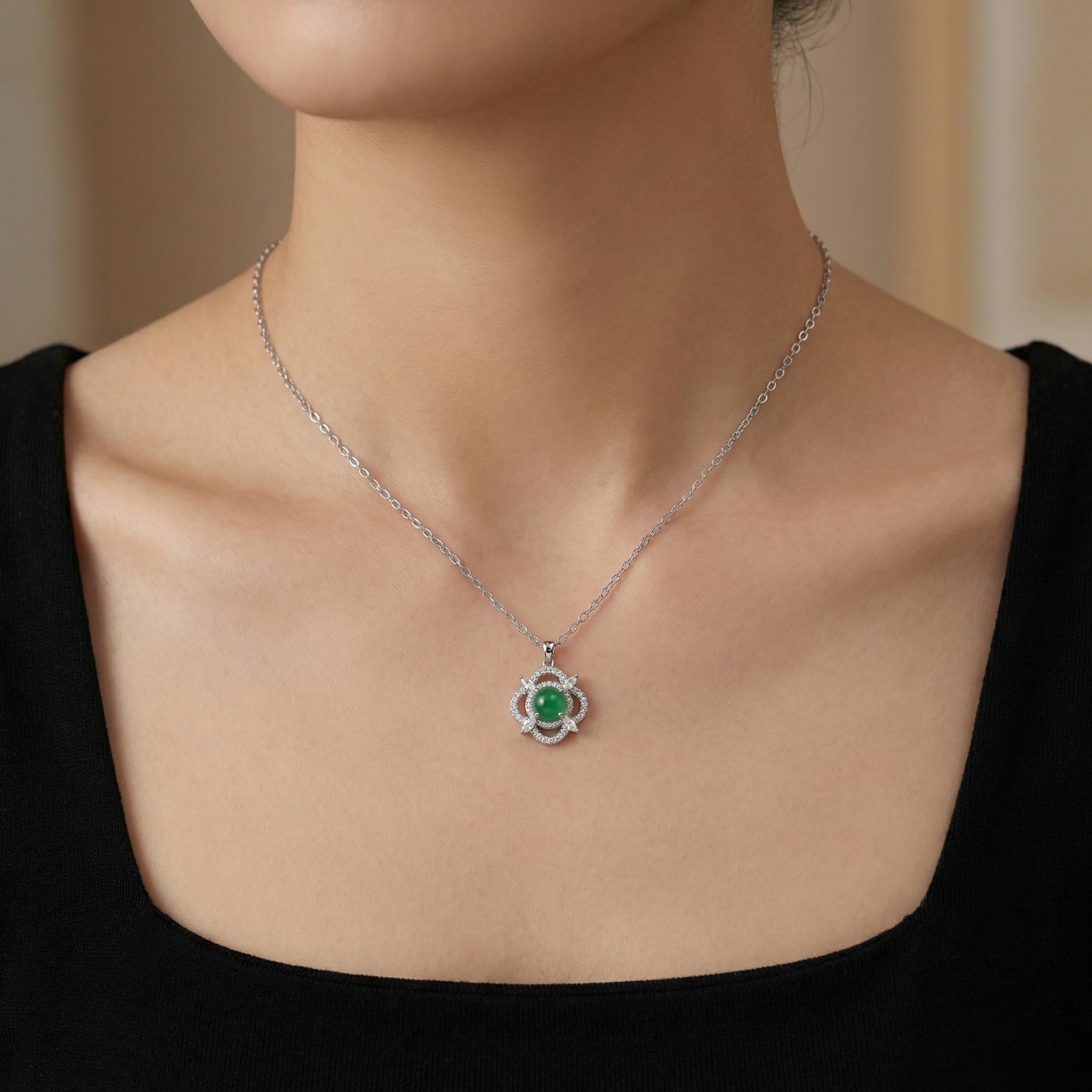 【Delivery Includes】 1 x Jade and Diamond Flower Necklace 1 x Elegant Gift Box 1 x Jewelry Care Cloth 【Care Instructions】 1. Store the necklace in the provided gift box or a soft pouch to prevent scratches and exposure to air. 2. Avoid direct contact with chemicals, perfumes, and cosmetics to protect the luster of gemstones and gold. 3. Gently wipe the necklace with the provided jewelry cloth after wearing. 4. Remove the necklace before swimming, bathing, or physical activities. 5. Have the necklace professionally cleaned annually for long-term brilliance. | Brand: jewelryodm