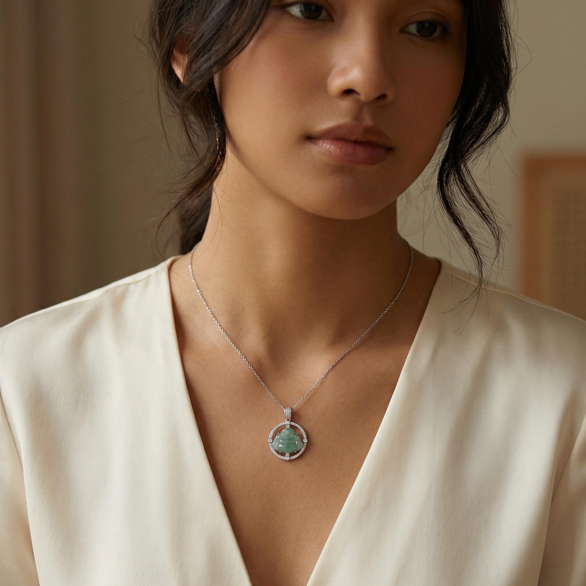 【Delivery Includes】 1 x Jade and Diamond Circle Necklace 1 x Premium Gift Box 1 x Cleaning Cloth 【Care Instructions】 1. Store in a soft pouch or box when not in use to prevent scratches and oxidation. 2. Avoid exposure to harsh chemicals, perfumes, or lotions that may affect the shine of gold, jade, and diamond. 3. Clean gently with the included cleaning cloth; for thorough care, use lukewarm water and mild soap, then dry with a soft cloth. 4. Handle with care to preserve the natural beauty and strength of the gemstones. | Brand: jewelryodm