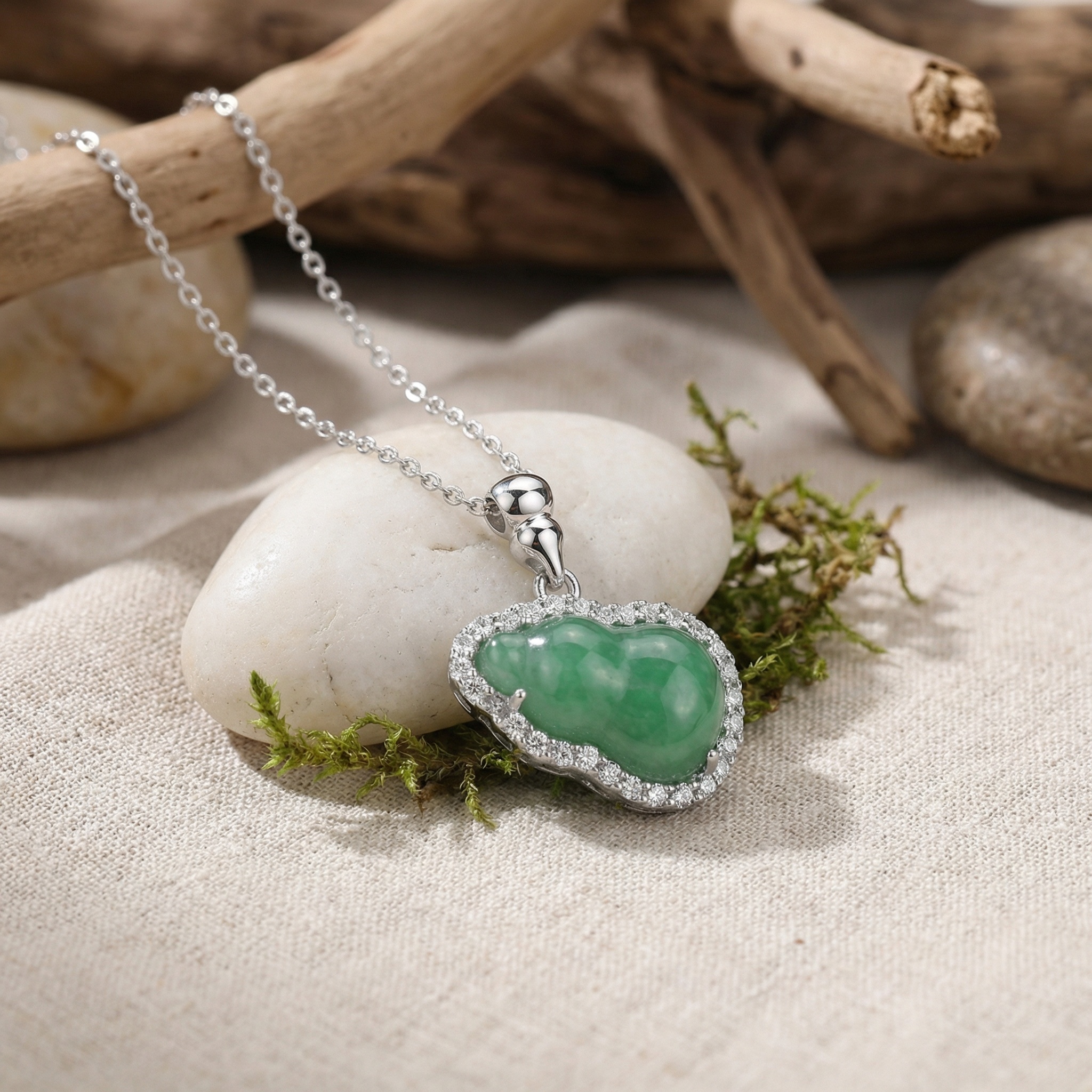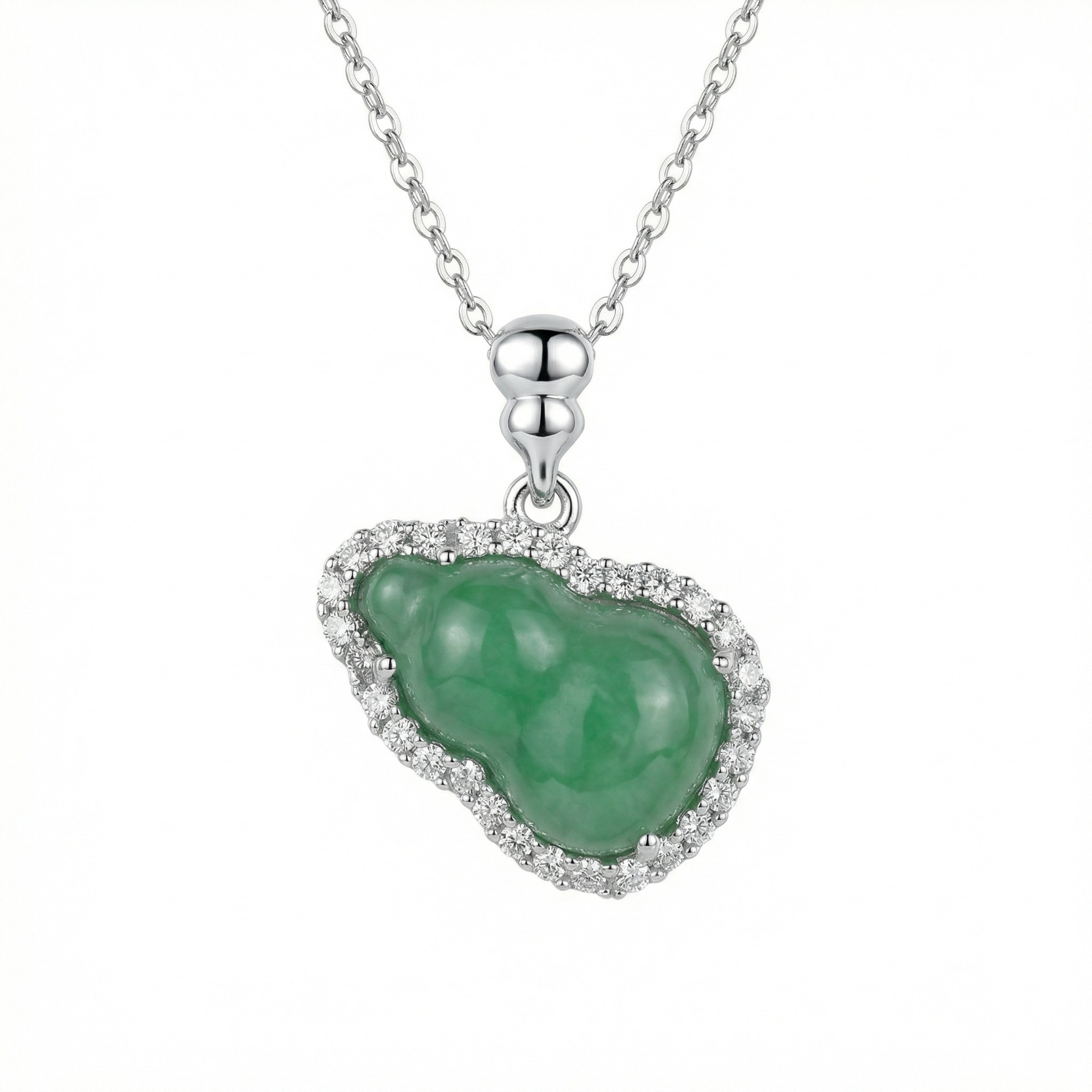 【Delivery Includes】 1 x Irregular Jade Gourd Pendant Necklace with Diamond Halo 1 x Premium Gift Box 1 x Jewelry Polishing Cloth 【Care Instructions】 1. Avoid exposing the necklace to harsh chemicals, perfumes, or direct sunlight for prolonged periods. 2. Gently wipe the necklace with the included polishing cloth after wearing and store in the gift box or a soft pouch to preserve shine and prevent scratches. 3. Remove before bathing, swimming, or engaging in vigorous activities to maintain the brilliance of the gemstones and gold. | Brand: jewelryodm