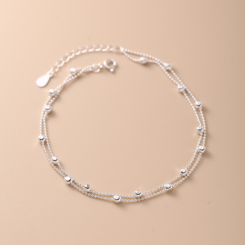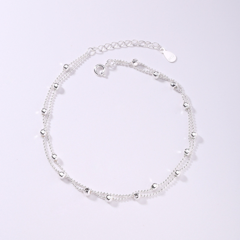 925 Sterling Silver Interval Round Beads Double-circle Anklet Female