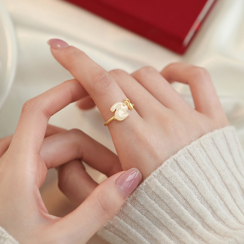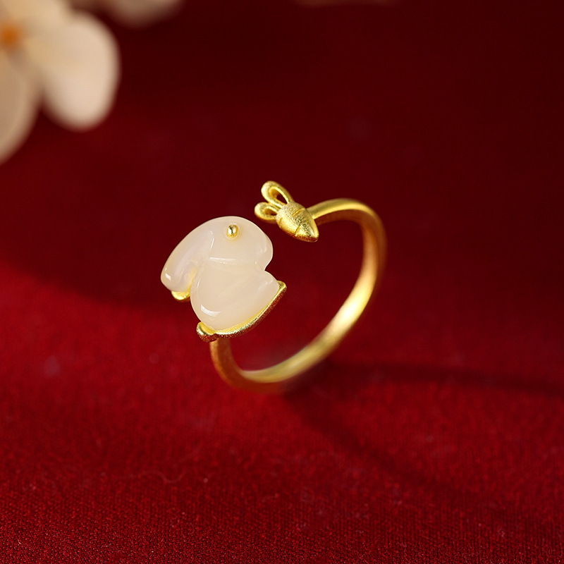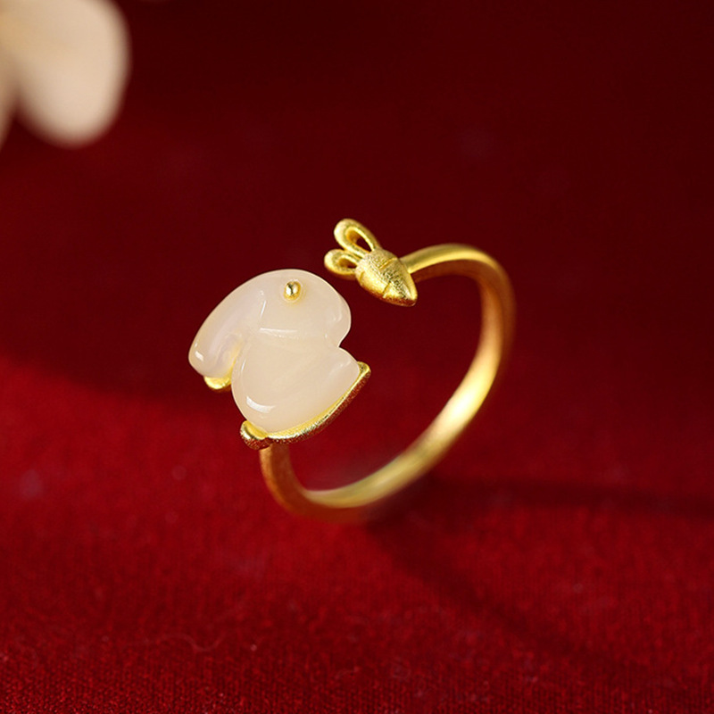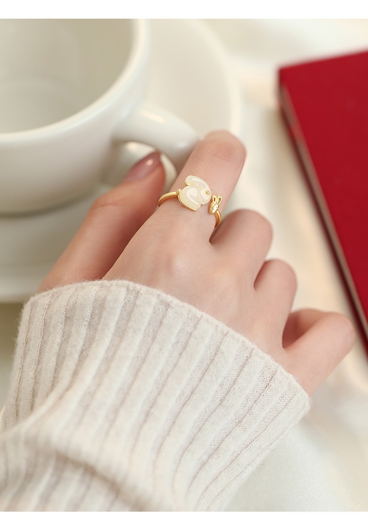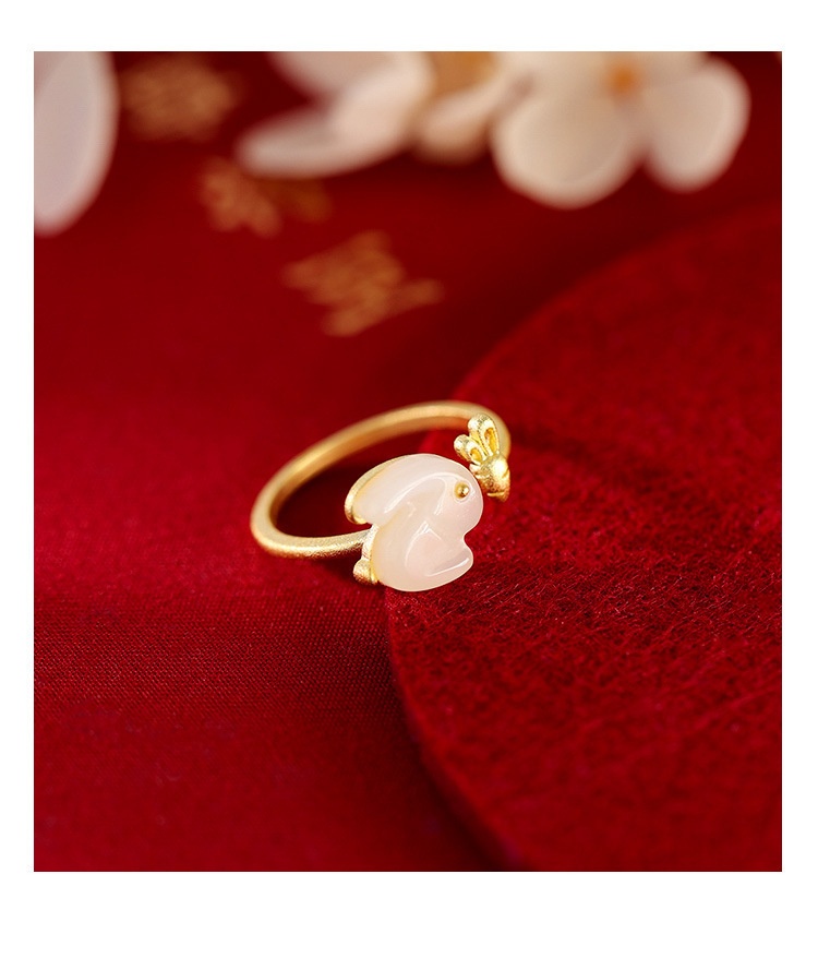 Color: 925 silver jade hare ring