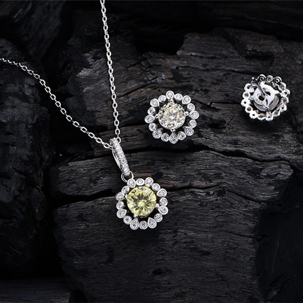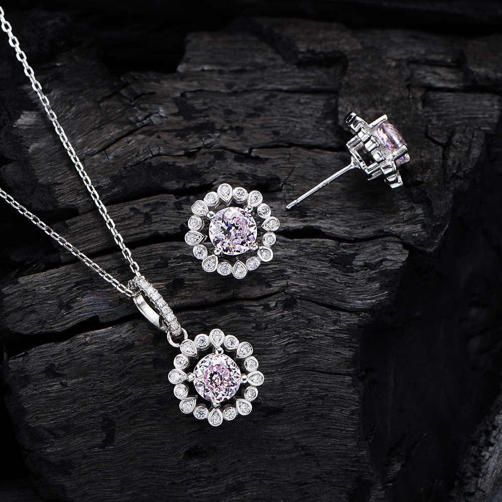 Color : white diamond stud earrings,yellow diamond stud earrings,pink diamond stud earrings,white diamond necklace,yellow diamond necklace,pink diamond necklace,white diamond two-piece set,yellow diamond two-piece set,pink diamond two-piece set