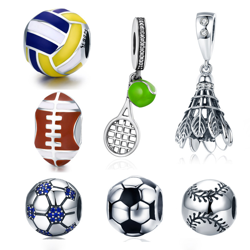 925 Sterling Silver Loose Beads Sports Ball Fashion DIY Beaded Bracelet Jewelry Accessories