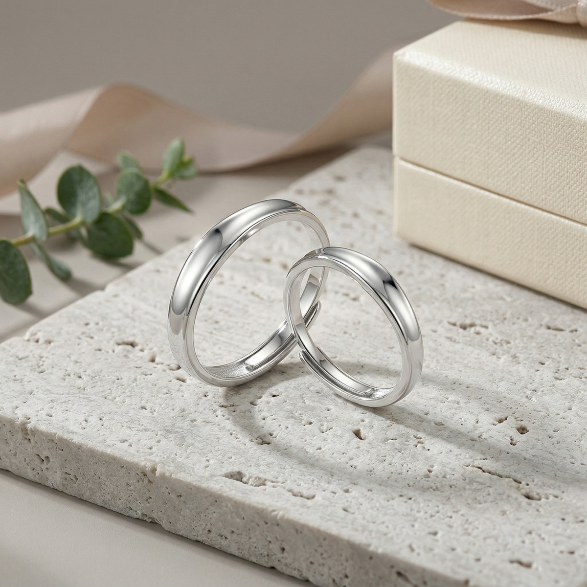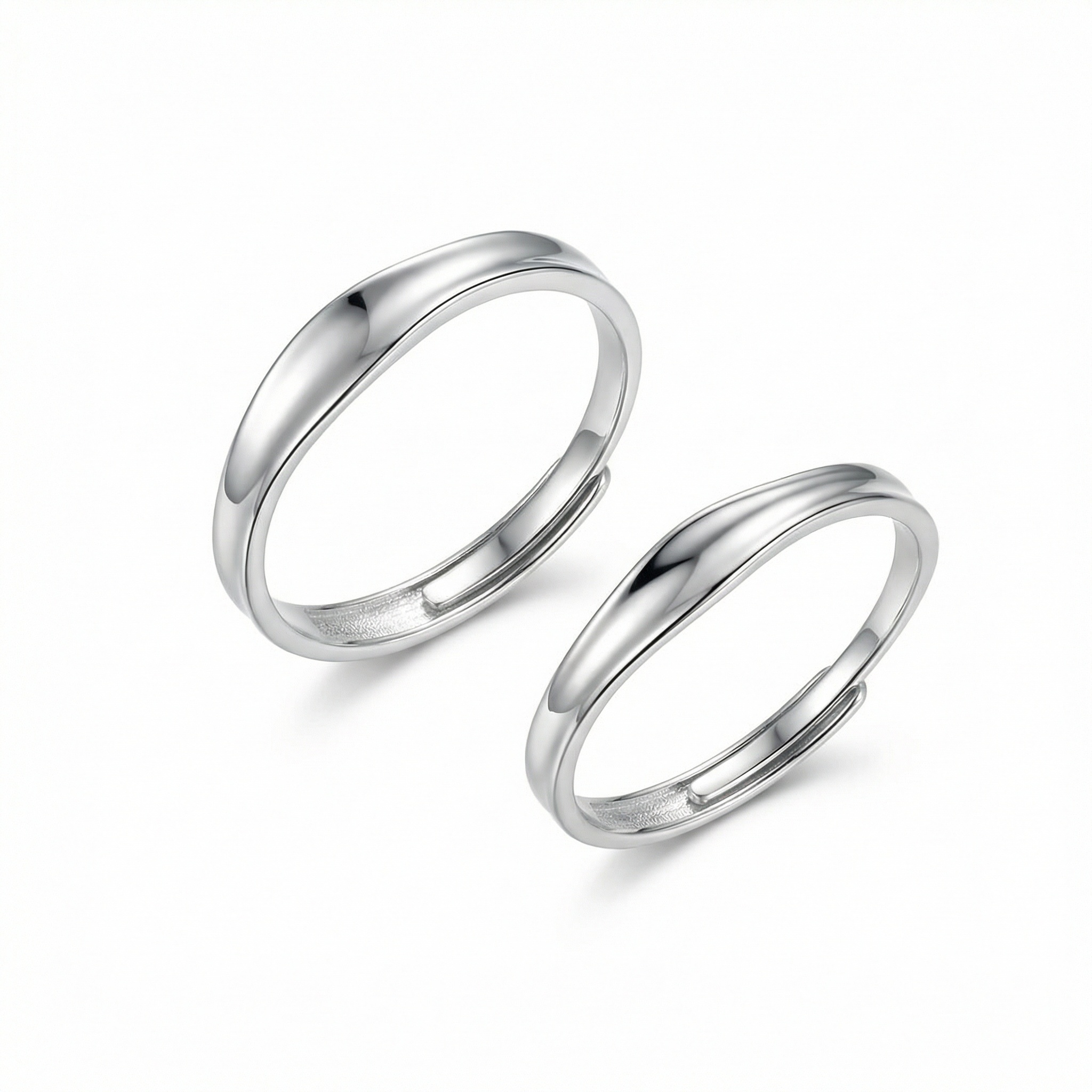These elegant silver-toned rings feature a minimalist and modern design, perfect for couples. Crafted with a smooth, polished finish, each ring showcases a distinct raised central ridge that adds a touch of sophisticated texture. The open-ended, adjustable design ensures a comfortable fit for any finger size, making them a versatile choice for both men and women. Whether used as promise rings, wedding bands, or simple everyday accessories, their timeless aesthetic symbolizes a continuous bond. These rings are ideal for anniversaries, Valentine's Day, or special milestones. Lightweight and durable, they offer a subtle yet stylish way to celebrate love and commitment. | Brand: jewelryodm