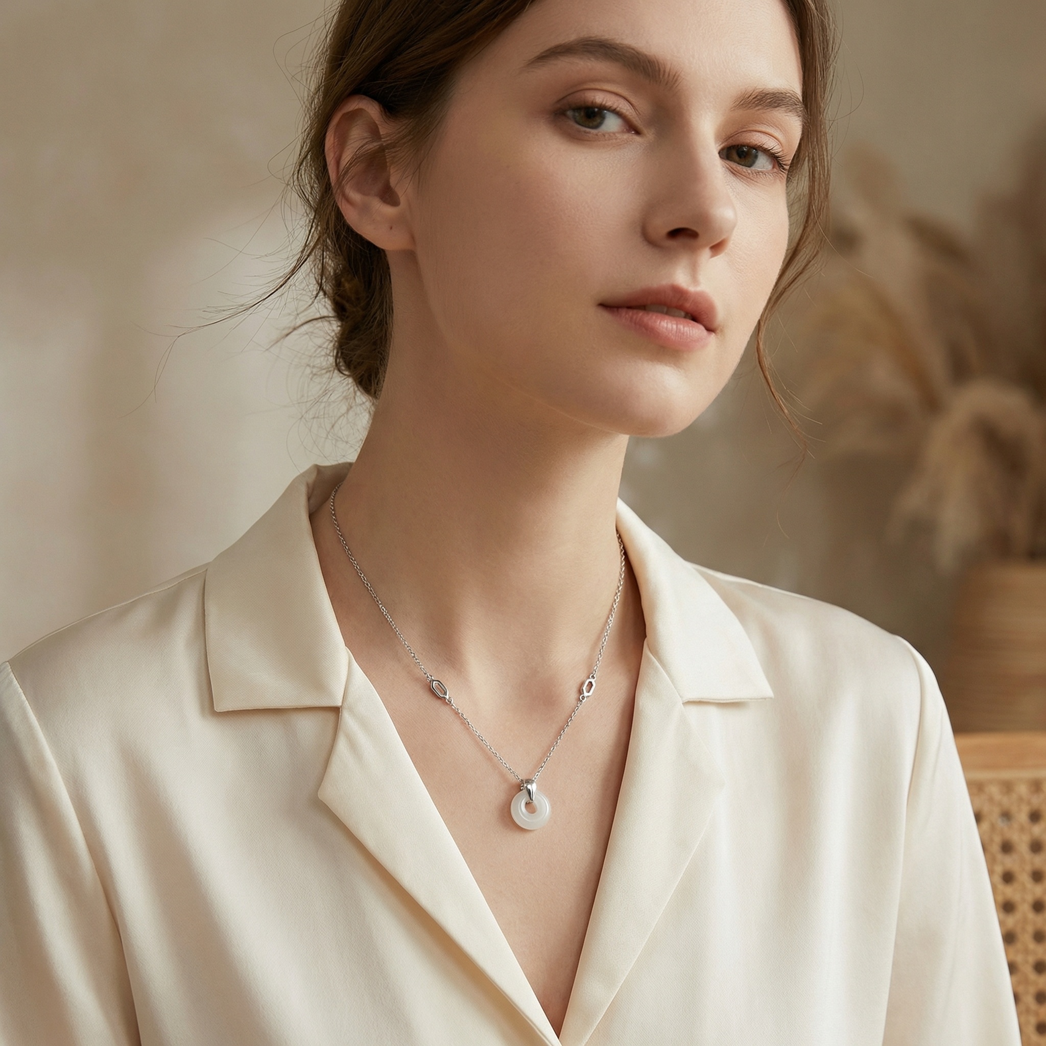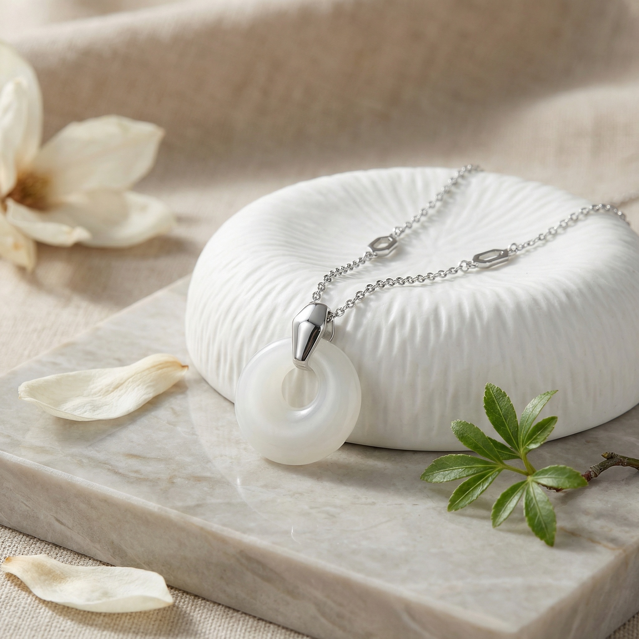 【Delivery Includes】 1 x Jade Donut Circle Pendant Necklace 1 x Elegant Gift Box 1 x Jewelry Cleaning Cloth 【Care Instructions】 1. Wipe the necklace gently with the provided cleaning cloth after each use to remove oils and maintain its shine. 2. Store the necklace separately in the provided box to avoid scratches or damage from other jewelry. 3. Avoid exposure to harsh chemicals, perfumes, or excessive moisture to preserve the jade’s natural beauty. 4. Remove the necklace before swimming, bathing, or strenuous activities to prevent accidental damage. | Brand: jewelryodm