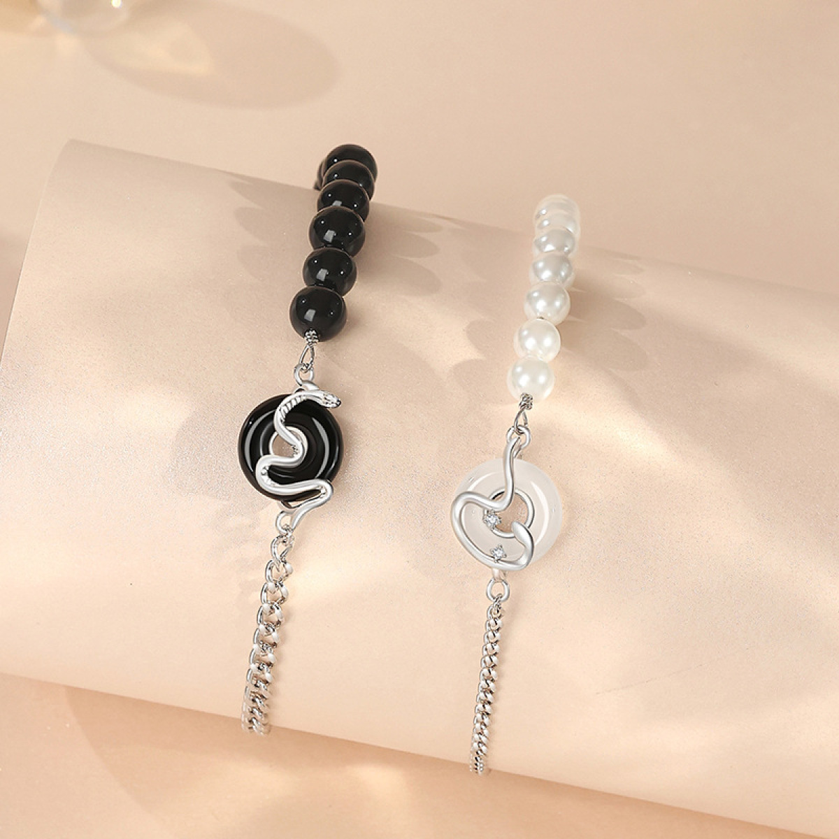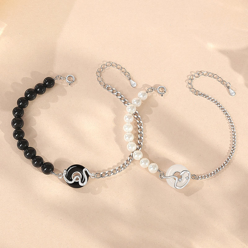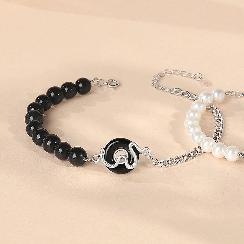 925 Sterling Silver New Chinese Obsidian Pearl Bracelet Safe Buckle Love Old Bracelet