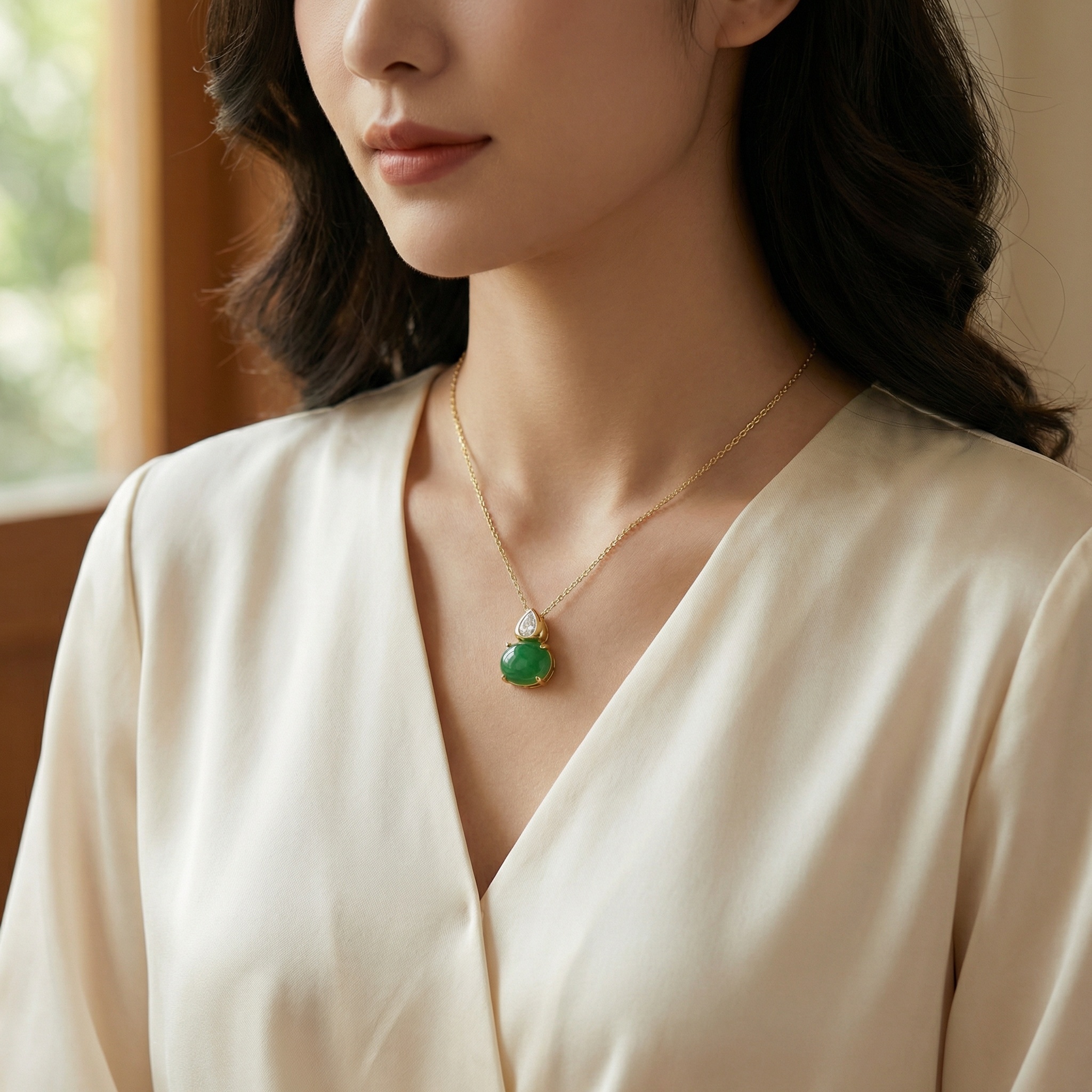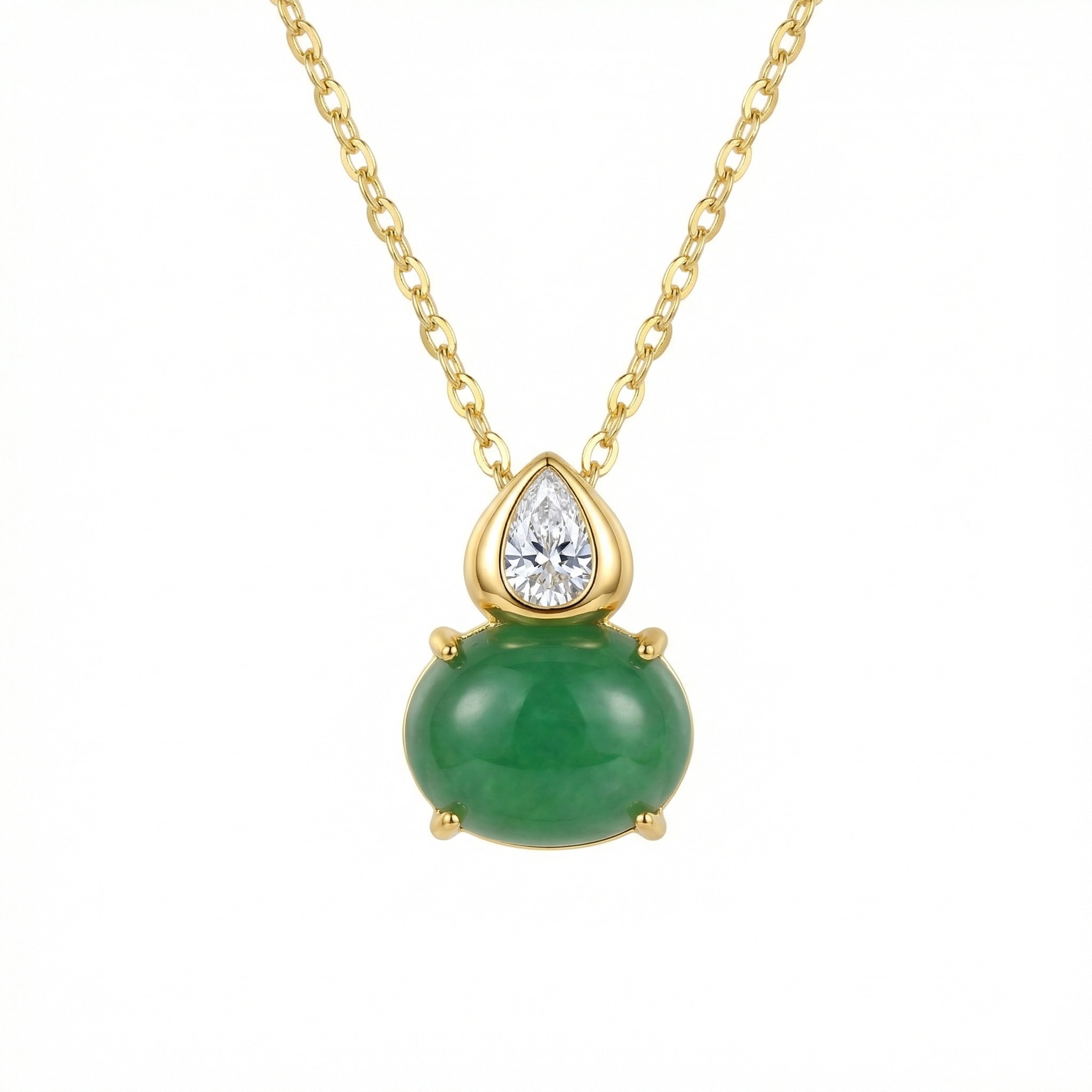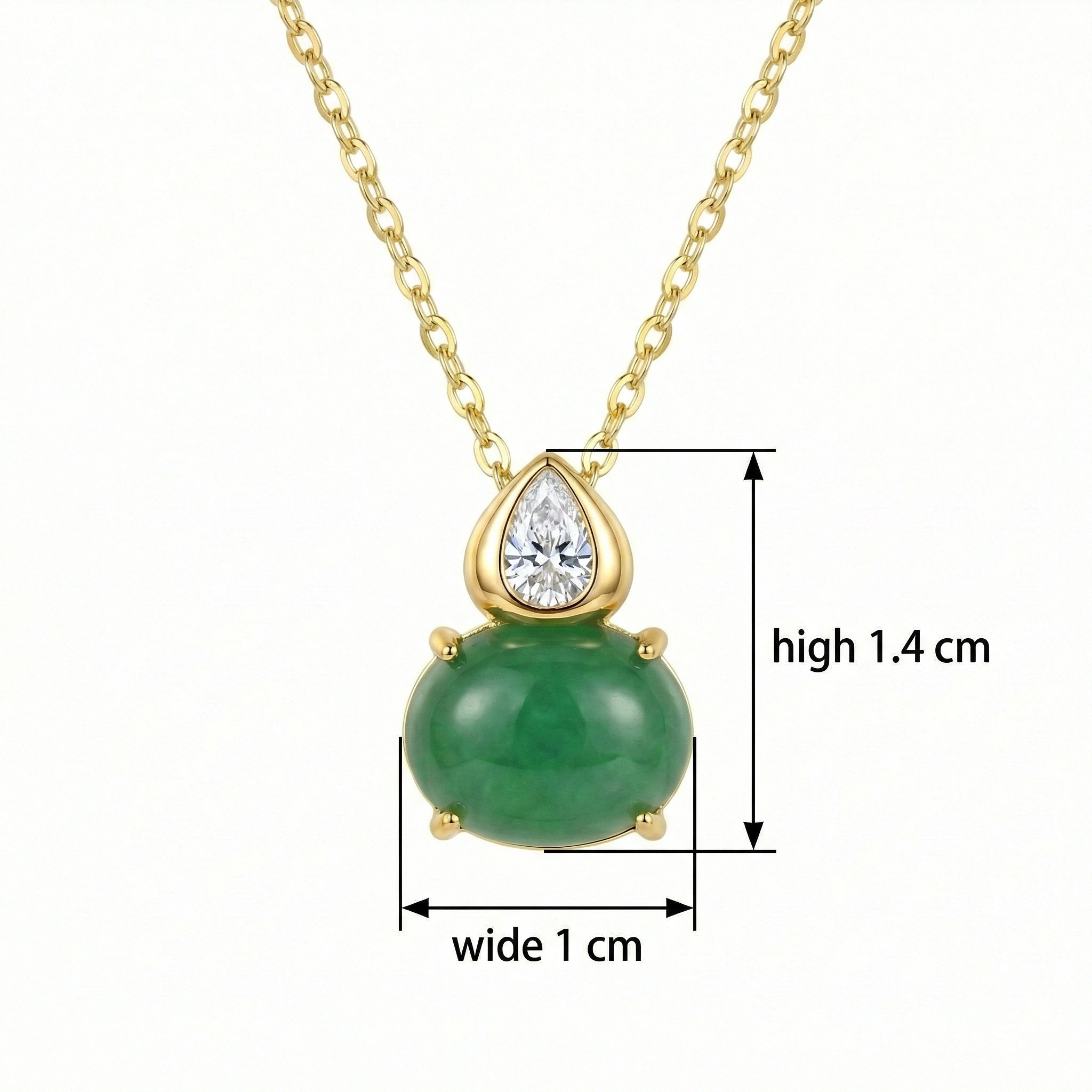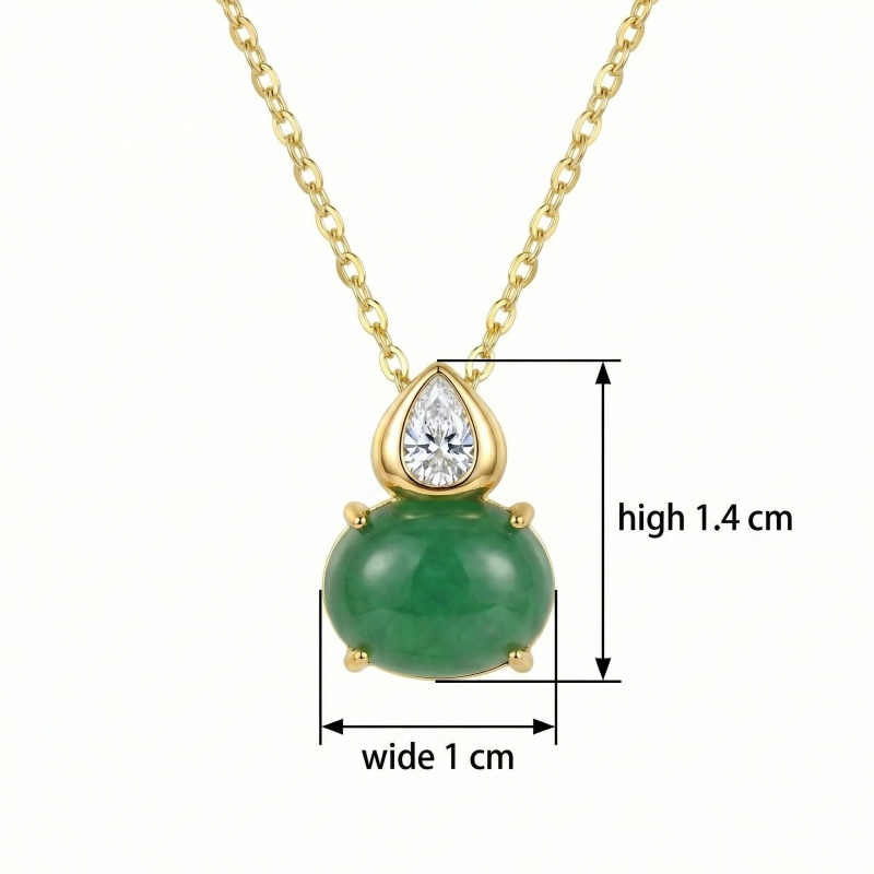 【Delivery Includes】 1 x Jade and Diamond Necklace (Oval and Pear Shape Gemstones) 1 x Gift Box 1 x Jewelry Care Cloth 【Care Instructions】 1. Store your necklace in the provided gift box or a sealed pouch when not in use to maintain its shine and avoid exposure to air. 2. Wipe gently with the jewelry care cloth after each wear to remove oils or residues. 3. Avoid contact with chemicals, perfumes, or cosmetics to protect both the metal and the gemstones. 4. Remove the necklace before swimming, bathing, or sleeping to prevent potential damage. | Brand: jewelryodm