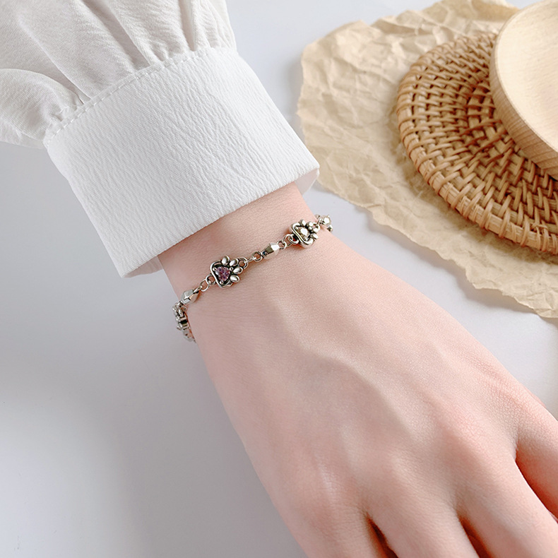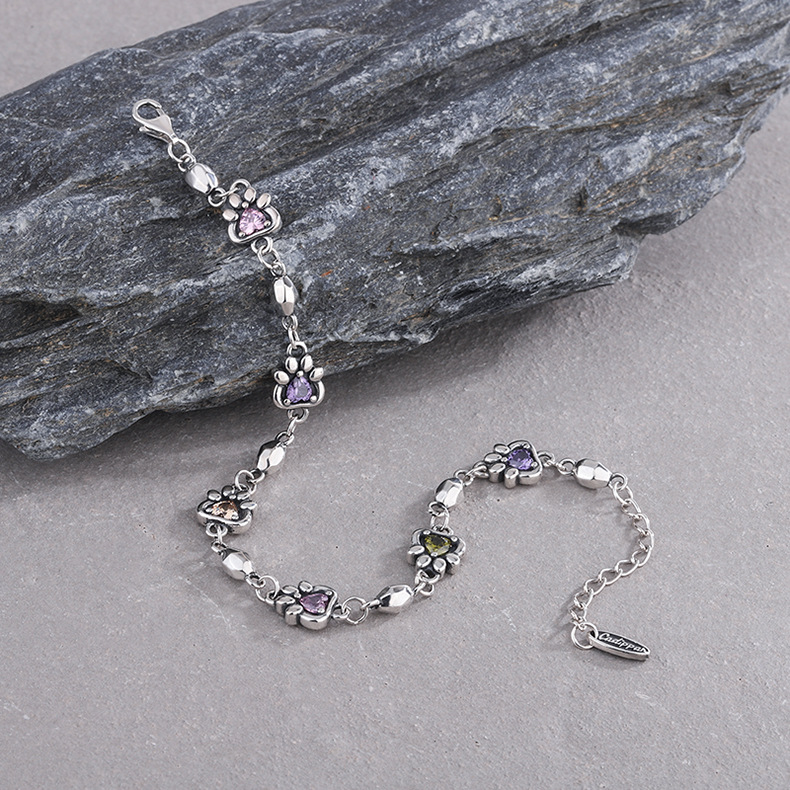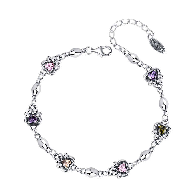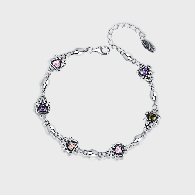 925 Sterling Silver Rainbow Love Zirconium Cat Claw Stone Chain Bracelet Female