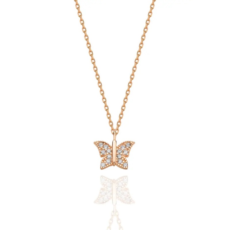 This 925 sterling silver butterfly necklace features a delicate rose gold plated finish, symbolizing freedom, transformation, and timeless elegance. Designed for everyday wear or special occasions, this dainty butterfly pendant necklace adds a graceful touch to any outfit.