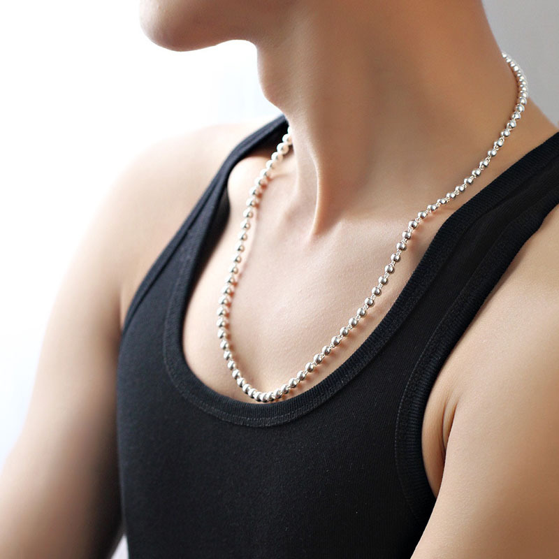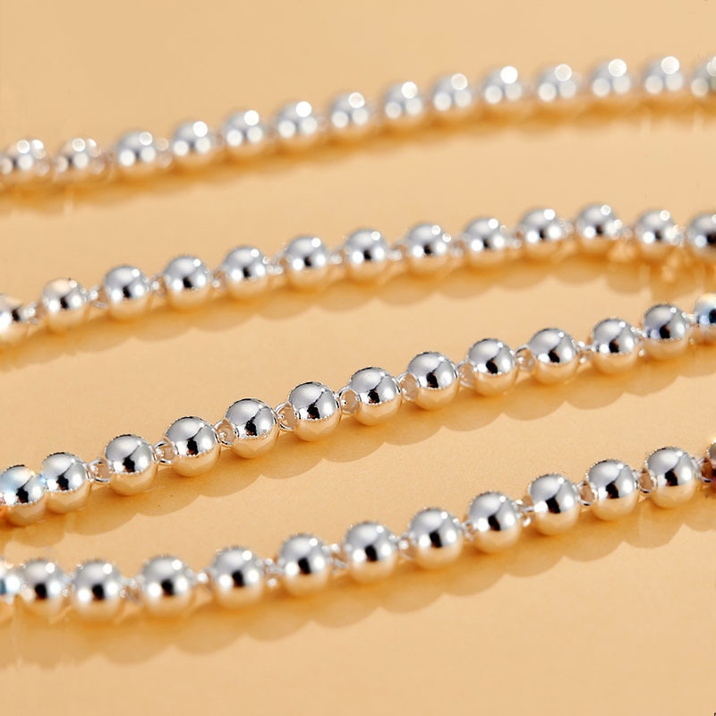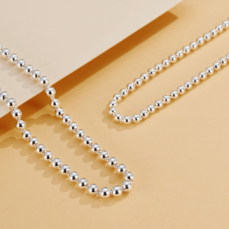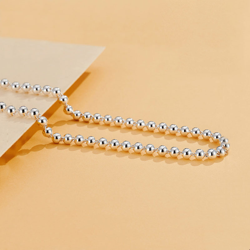 925 Sterling Silver Round Beads Women'S Short Chain Necklace Collar