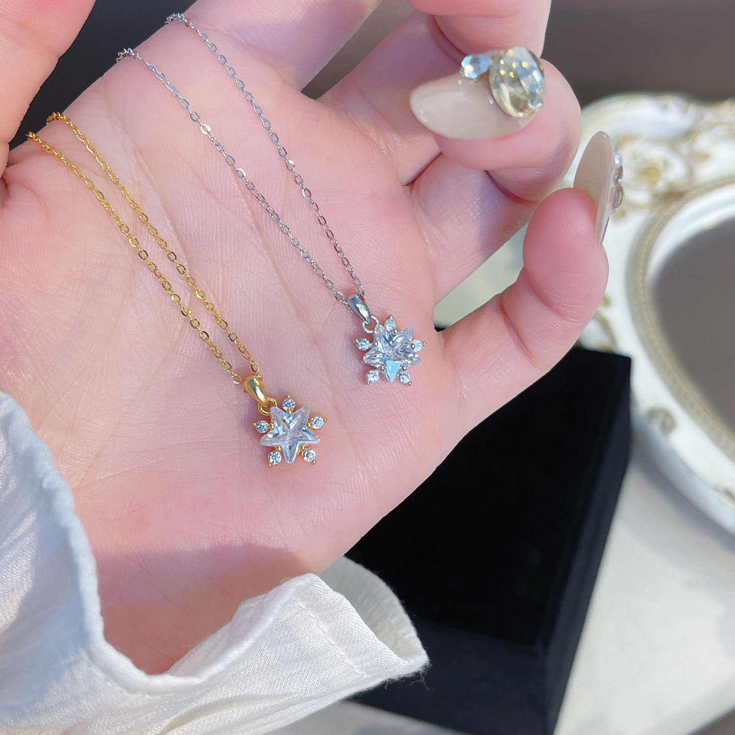 925 Sterling Silver Star Zircon Necklace For Women High-end