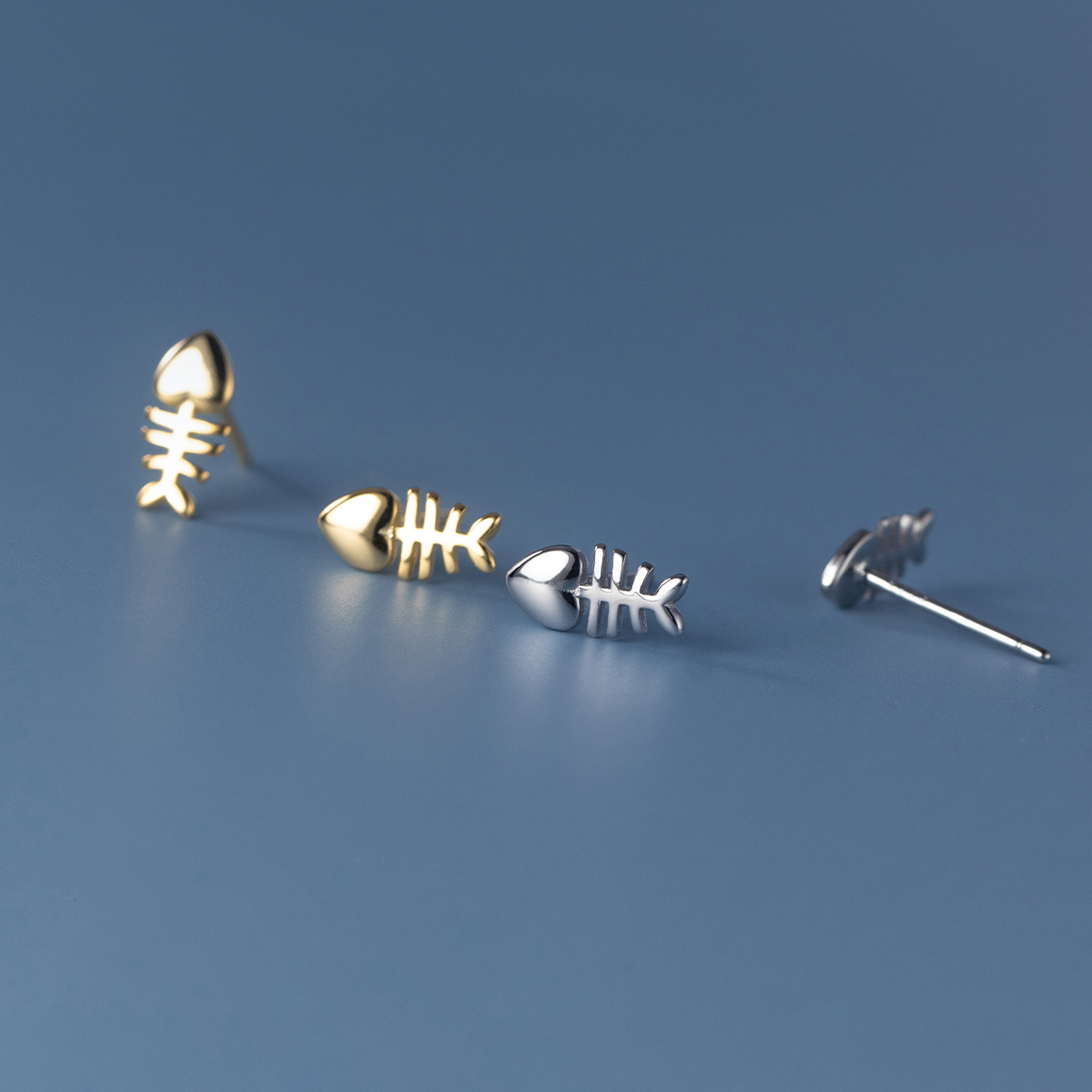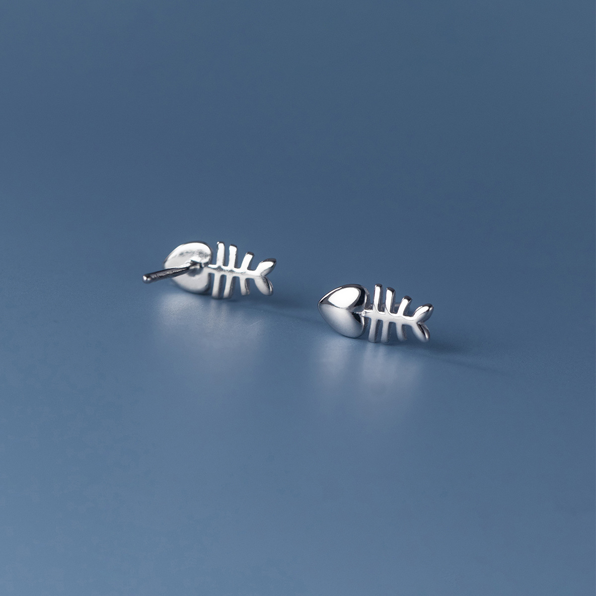 925 Sterling Silver Temperament Korean Style Simple Fishbone Stud Earrings