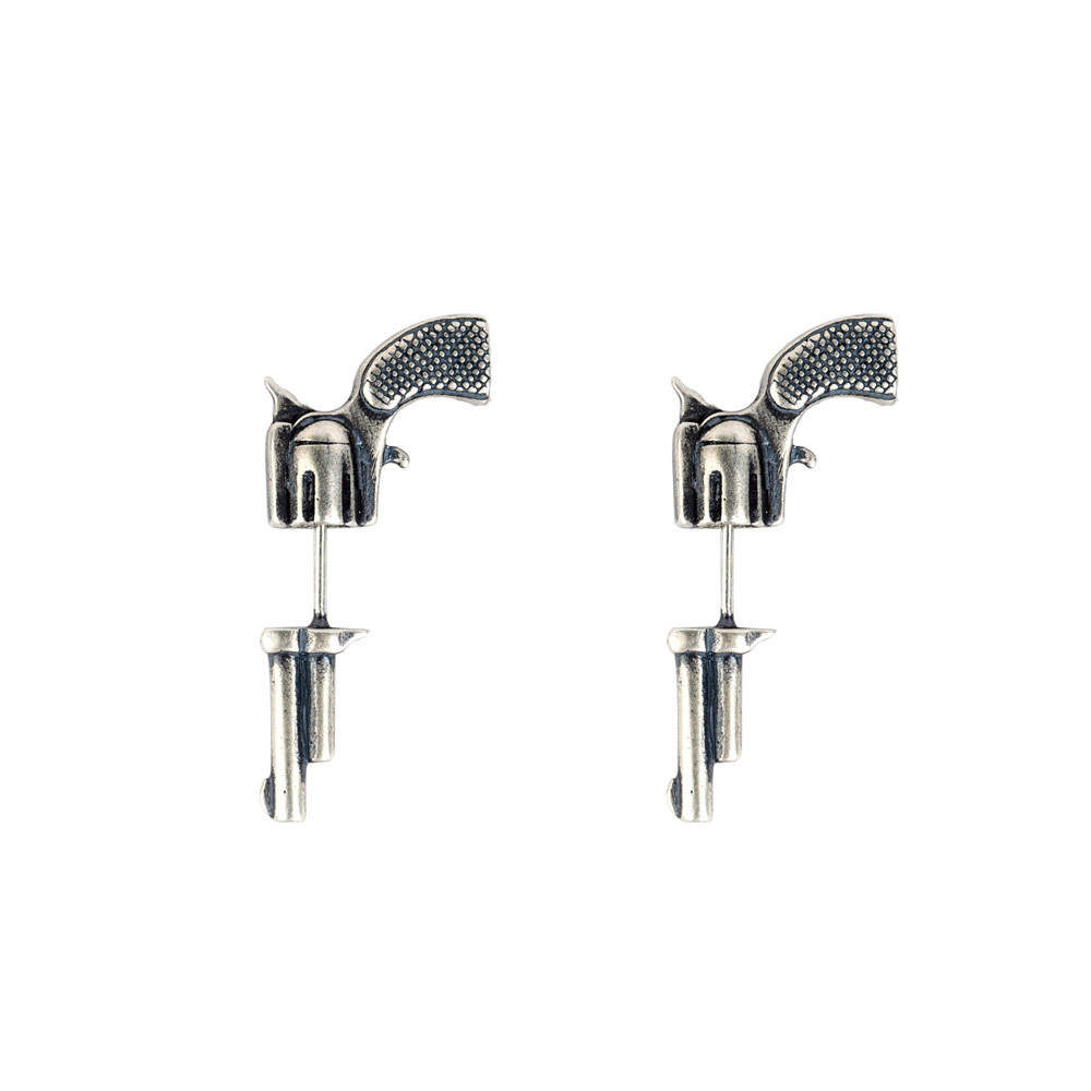 925 Sterling Silver Three-dimensional Miniature Pistol Earrings Jewelry