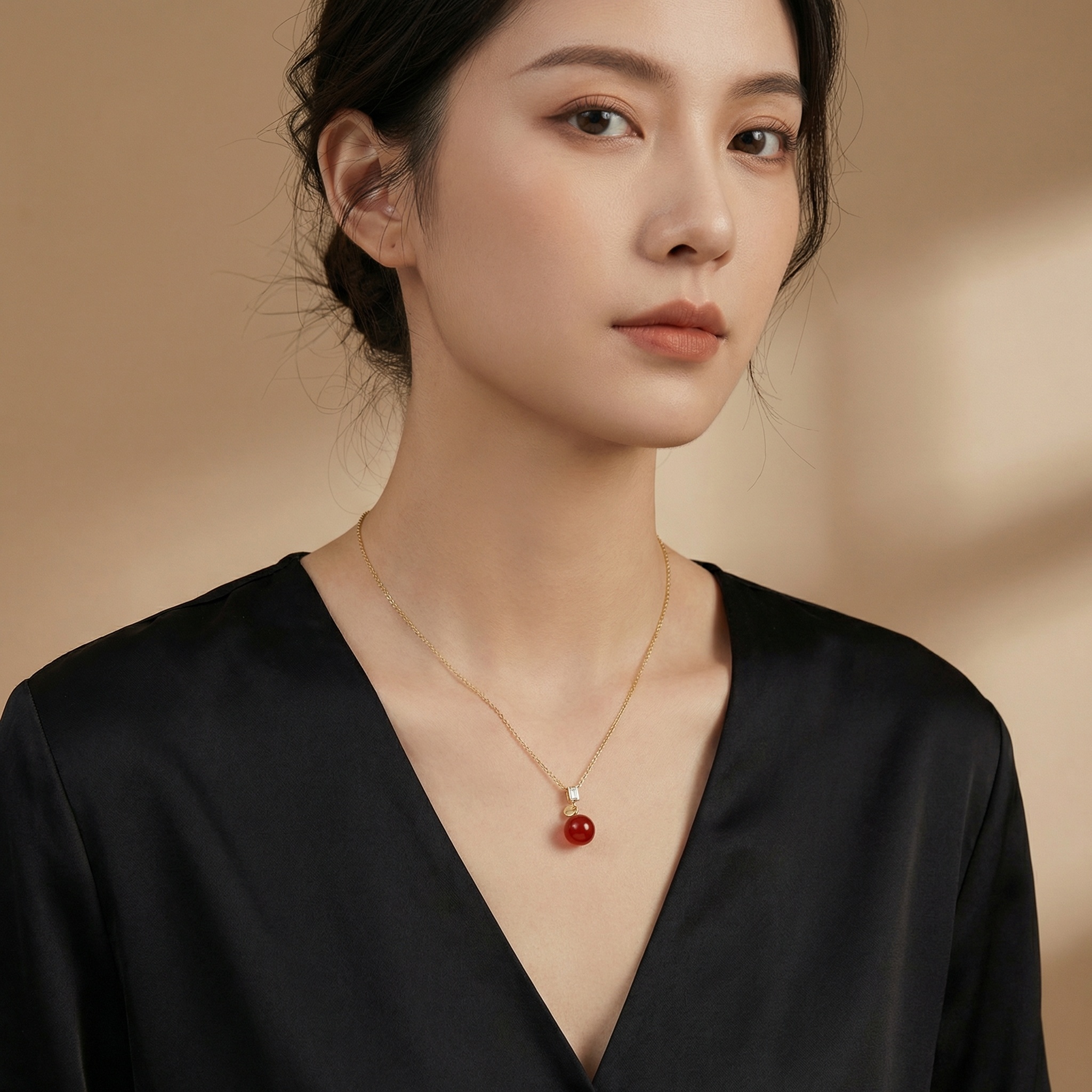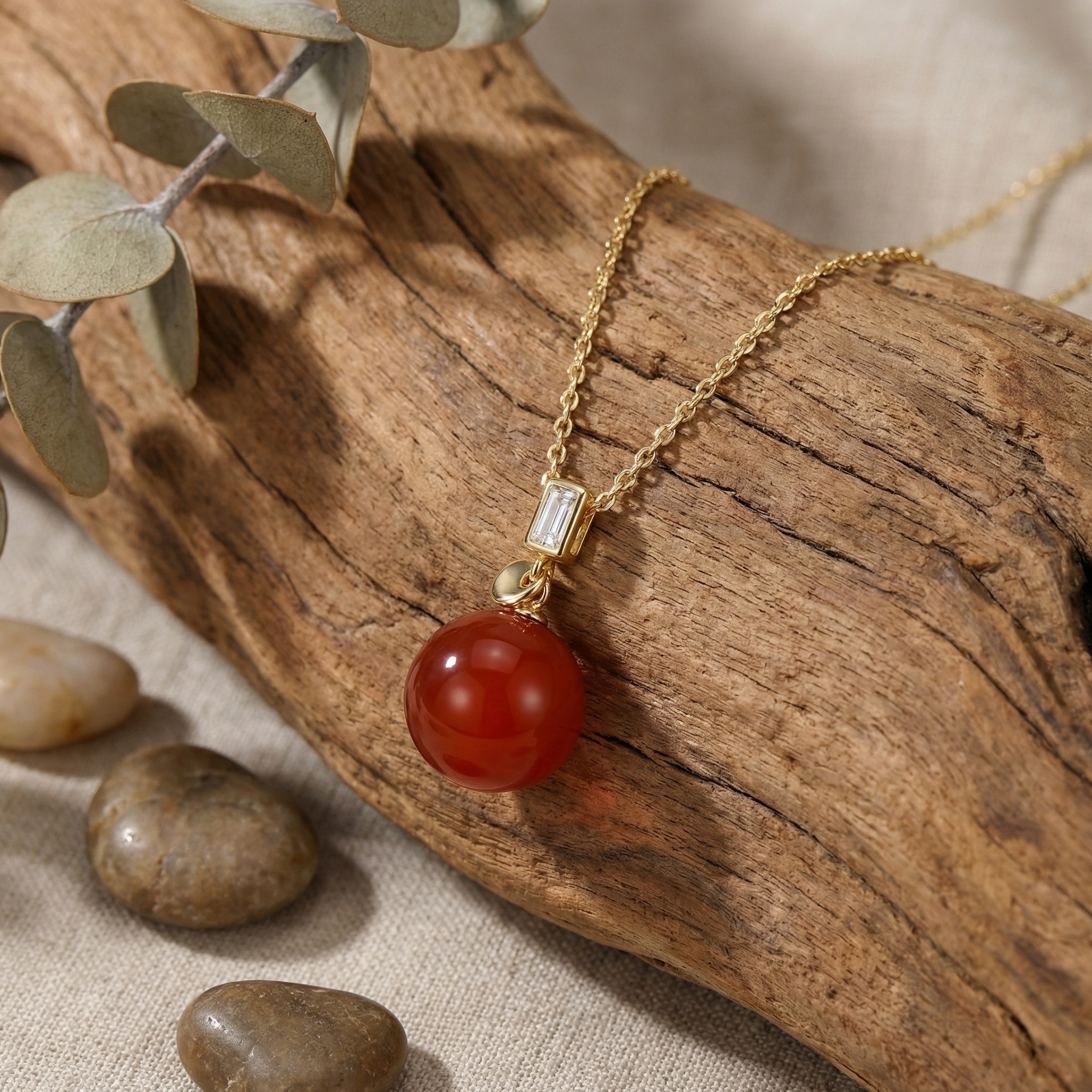 【Delivery Includes】 1 x Necklace with Red Sphere Carnelian and Baguette Diamond Pendant (Rectangular & Round Gems) 1 x Luxury Gift Box 1 x Soft Cleaning Cloth 【Care Instructions】 1. Gently wipe the necklace with the provided soft cloth after each use to remove oils and dirt. 2. Avoid exposure to harsh chemicals, perfumes or direct sunlight. 3. Store the necklace in its box or a separate soft pouch to prevent scratches. 4. Do not wear during bathing, swimming, or intense physical activities to ensure longevity. | Brand: jewelryodm