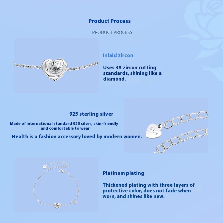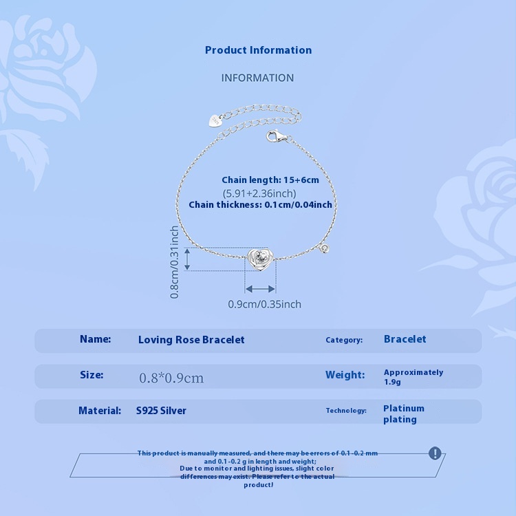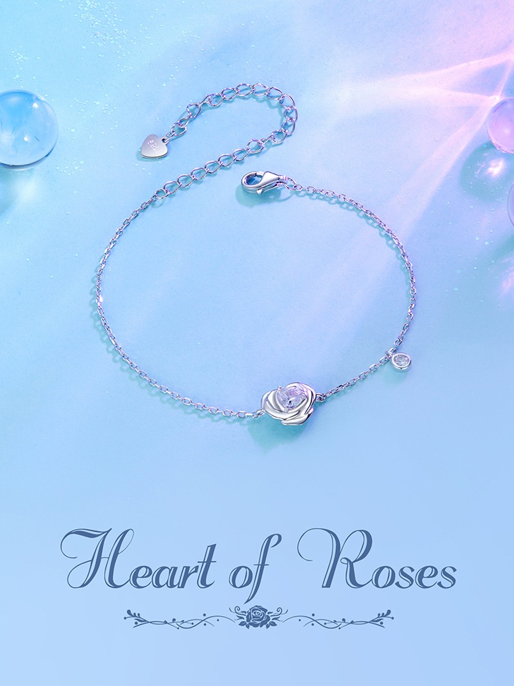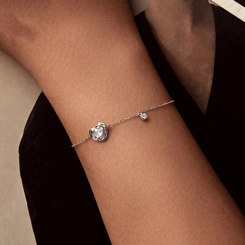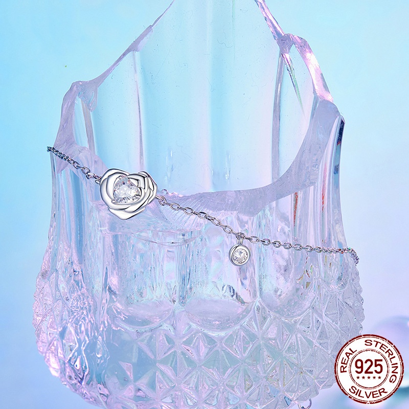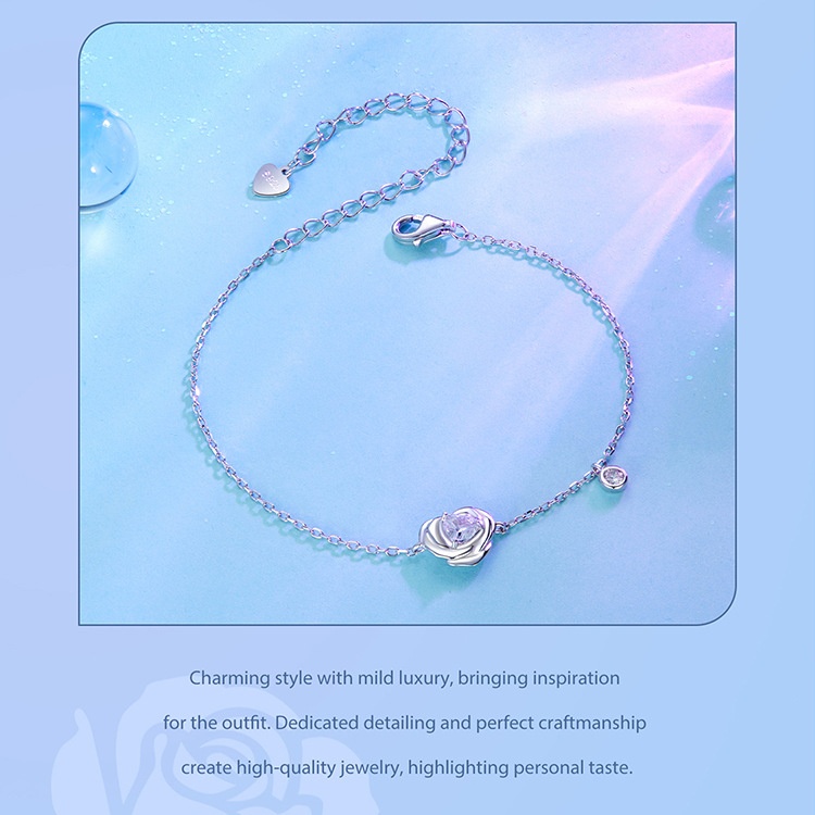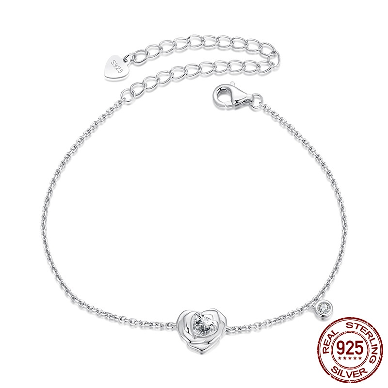 925 Sterling Silver White Gold Plated Love Rose Bracelet