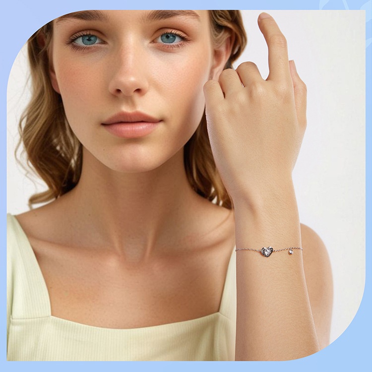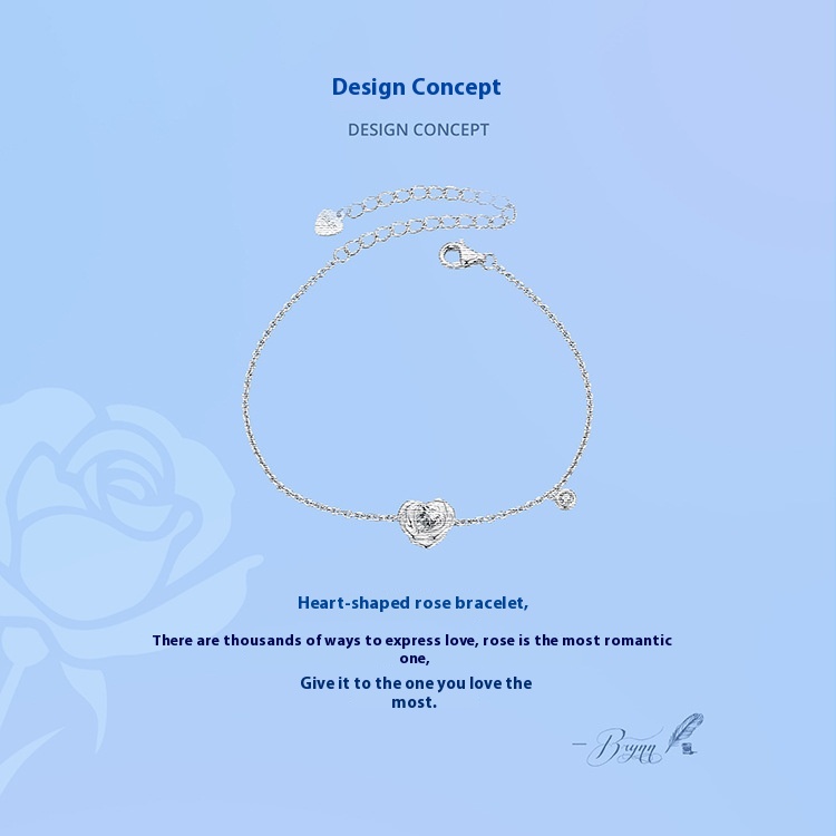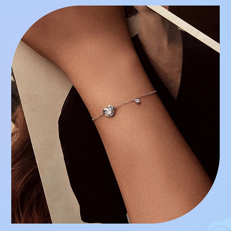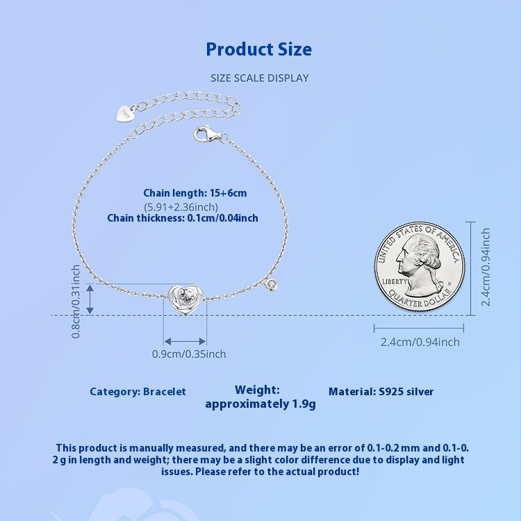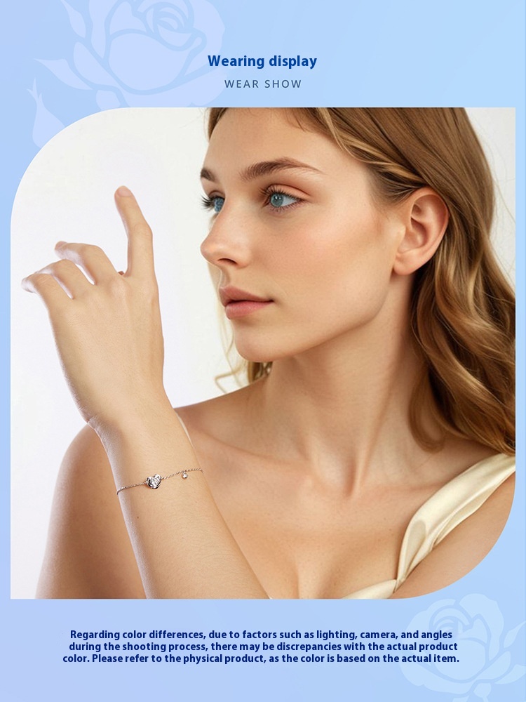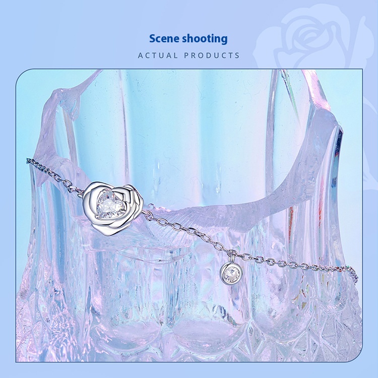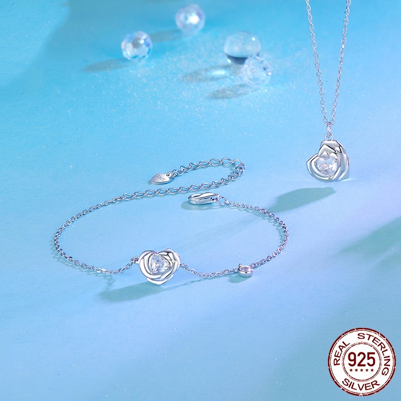 925 Sterling Silver White Gold Plated Love Rose Bracelet