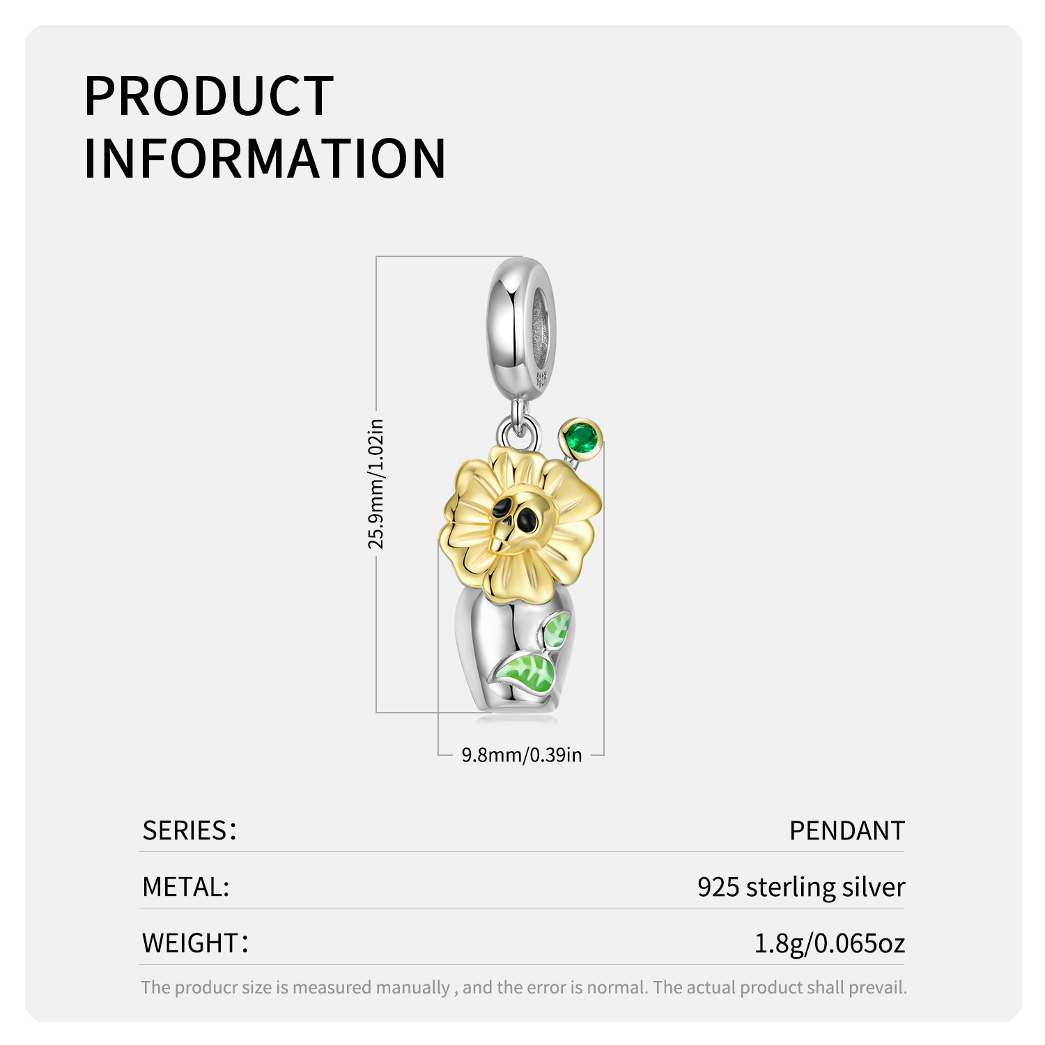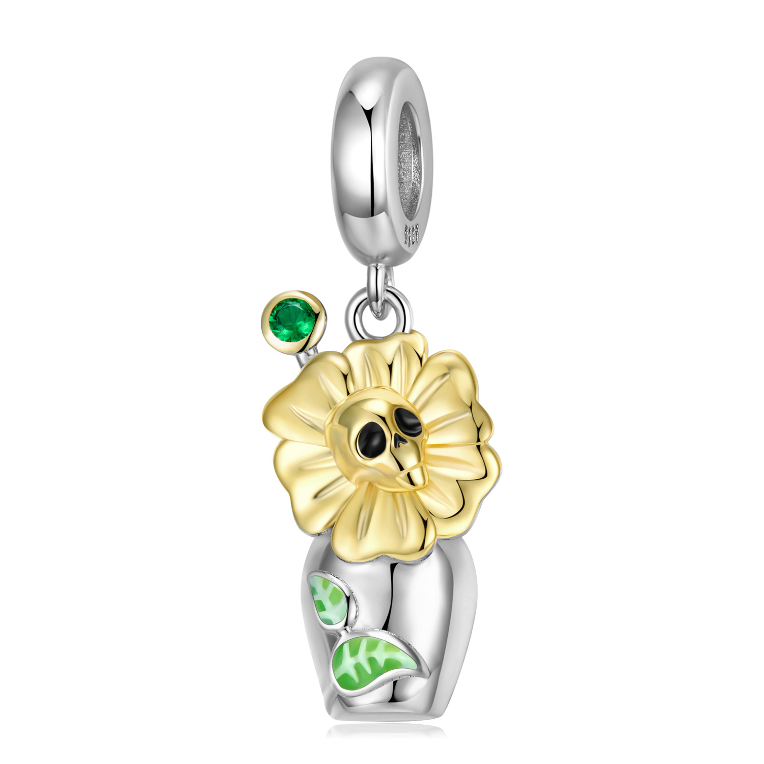 925 Sterling Silver Zirconium Inlaid Skull Vase Pendant Diy Beads