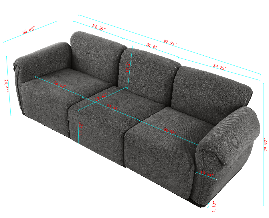 Product Name:93" length , Fashionable modular sofa, iron frame, chenille sofa,GREY, Suitable for living room, bedroom