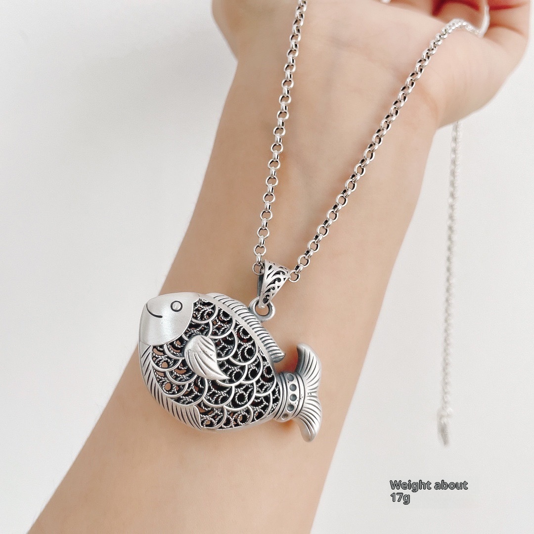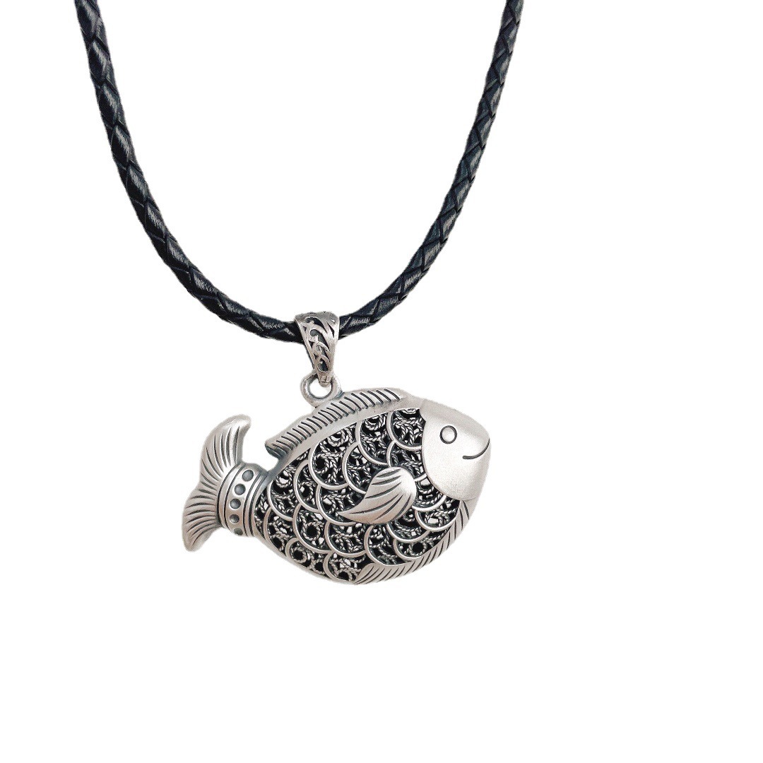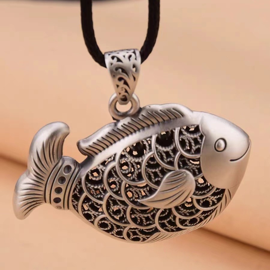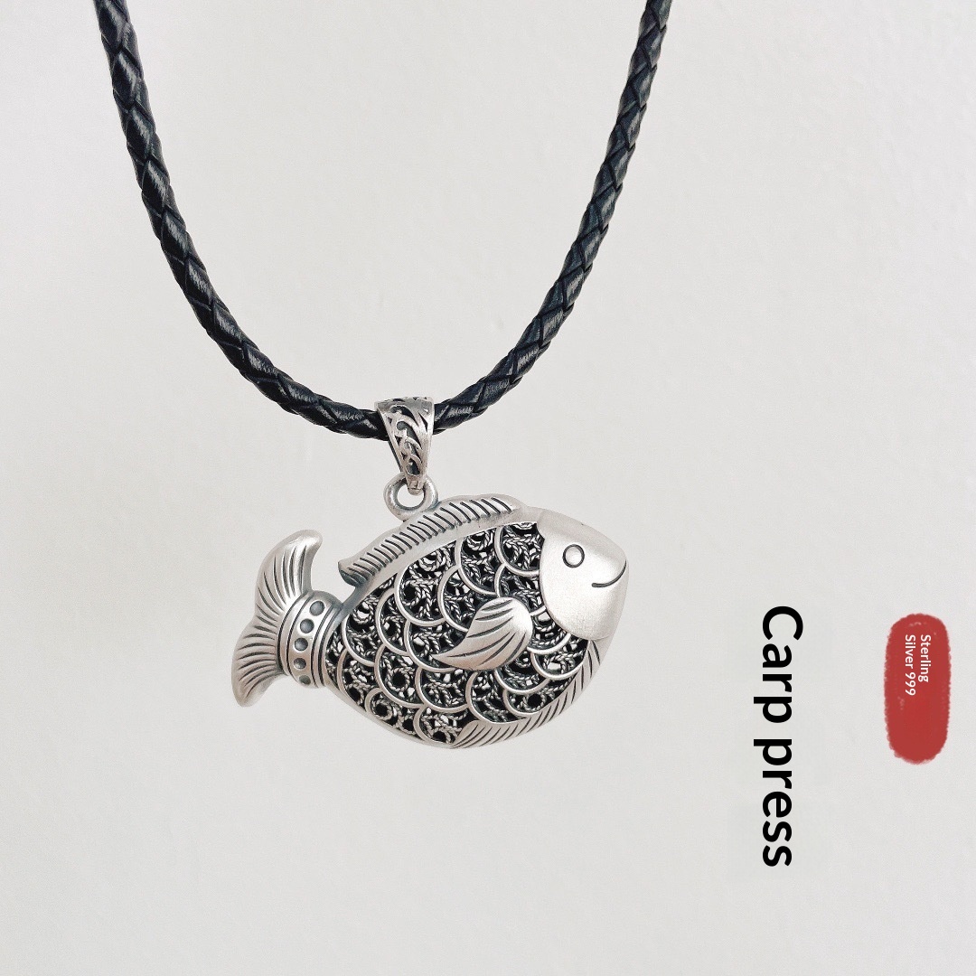 Colors: Carp Pendant with Leather Cord, Carp Pendant with Pearl Chain, Carp Pendant with Twist Chain, Carp Pendant with Dragonbone Chain
