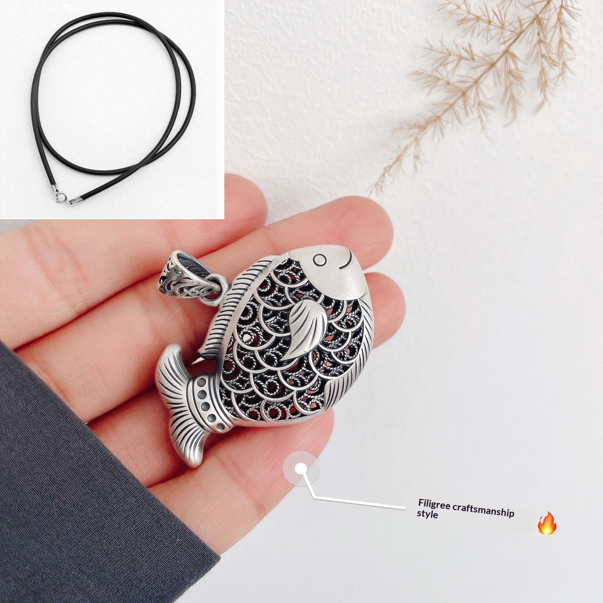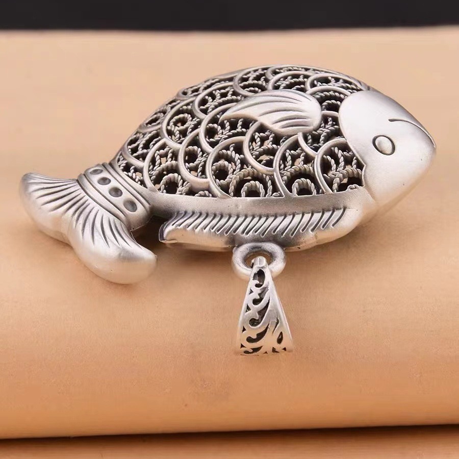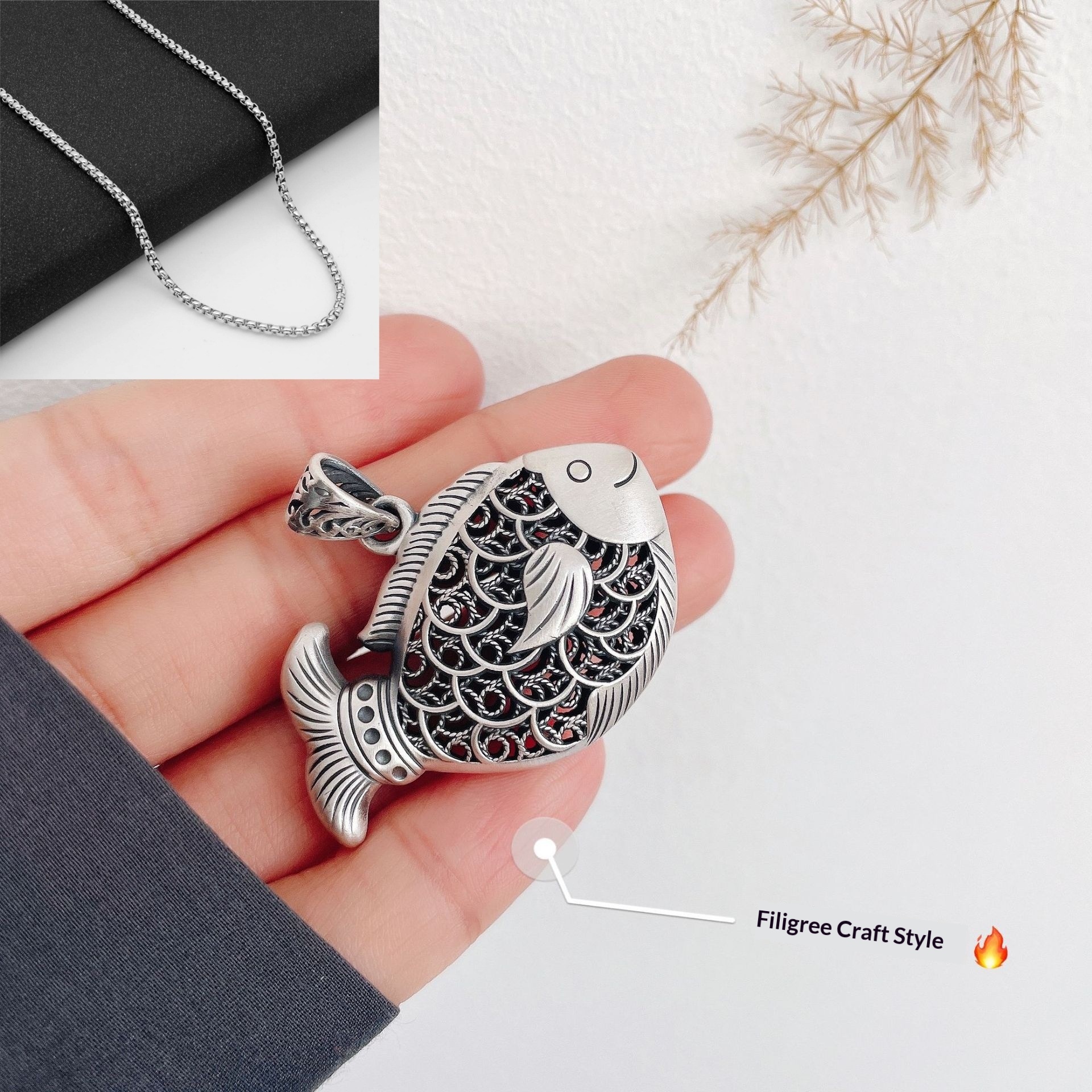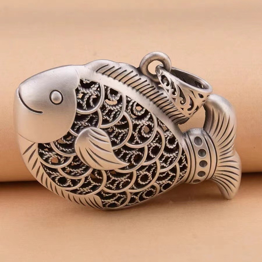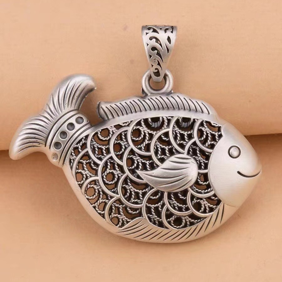 Colors: Carp Pendant with Leather Cord, Carp Pendant with Pearl Chain, Carp Pendant with Twist Chain, Carp Pendant with Dragonbone Chain
