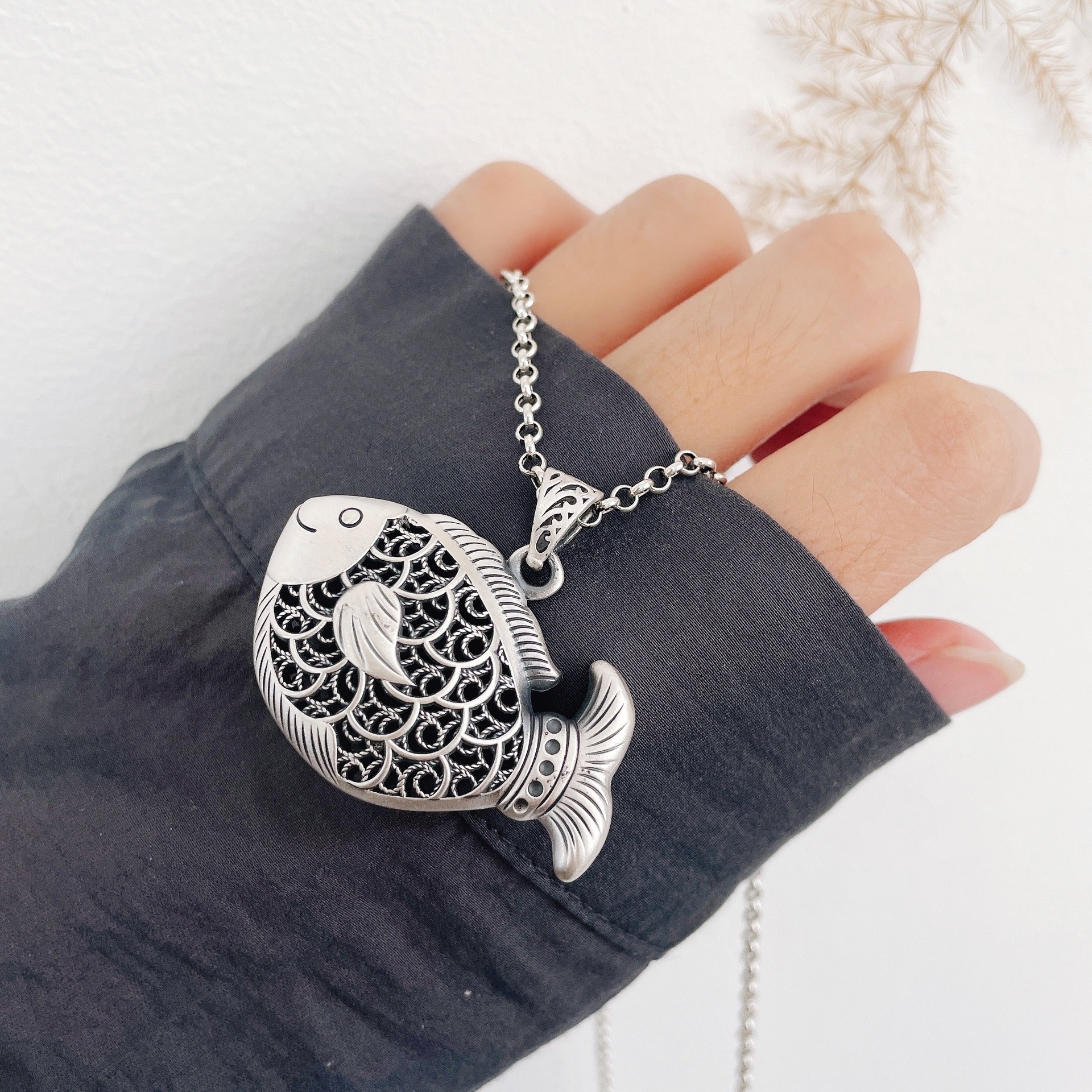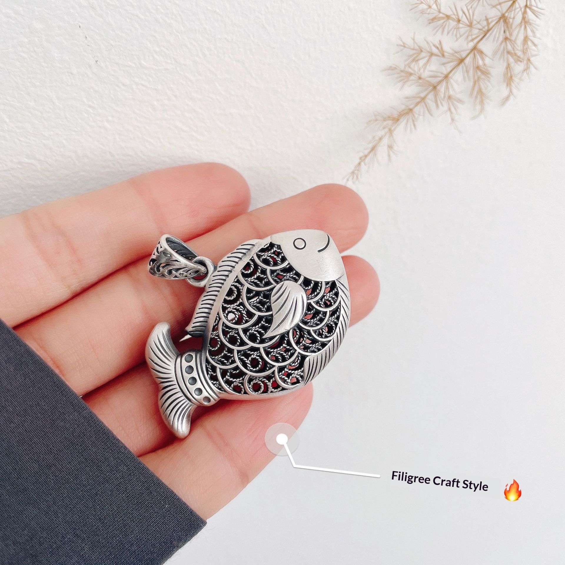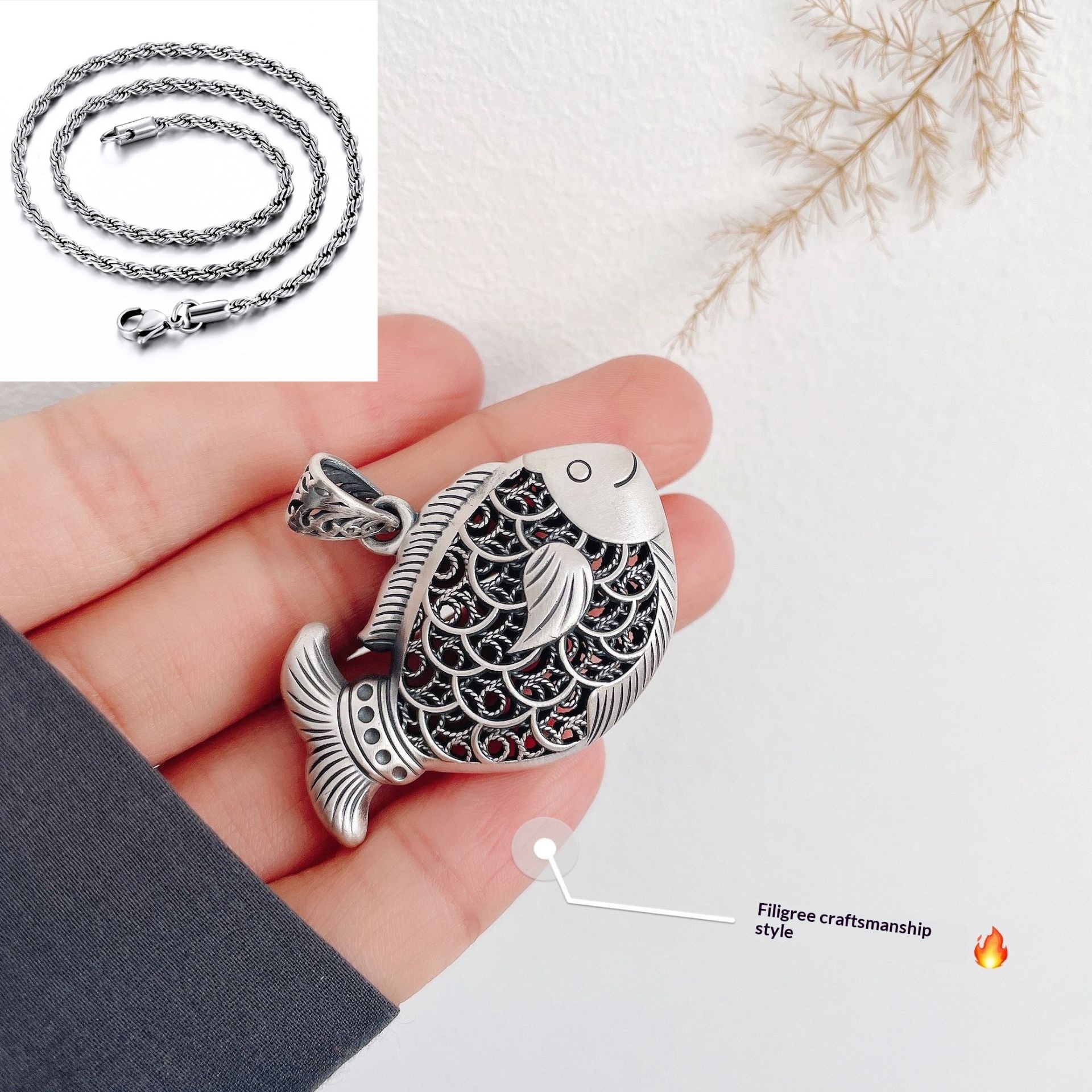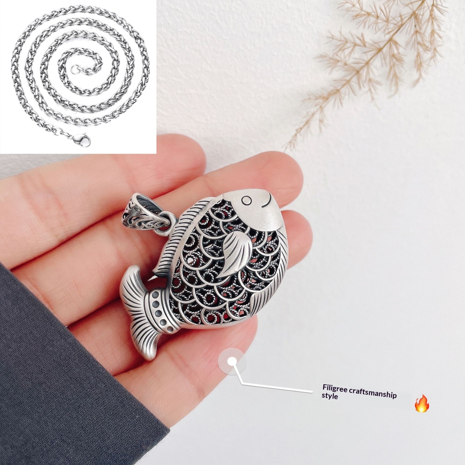 Colors: Carp Pendant with Leather Cord, Carp Pendant with Pearl Chain, Carp Pendant with Twist Chain, Carp Pendant with Dragonbone Chain
