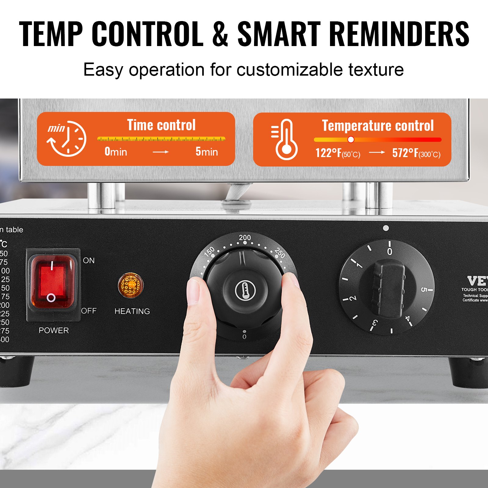 Precision Temperature Control: This dorayaki baker machine is designed with a temperature control knob (122-572°F / 50-300°C), allowing you to adjust according to your preferences. Customize it to create personalized waffles, whether you prefer them crispy or fluffy. With individual preparation and audible alerts, it's easy to operate—it reminds you to add batter and indicates when the waffle is cooked, so you don't have to watch it constantly.