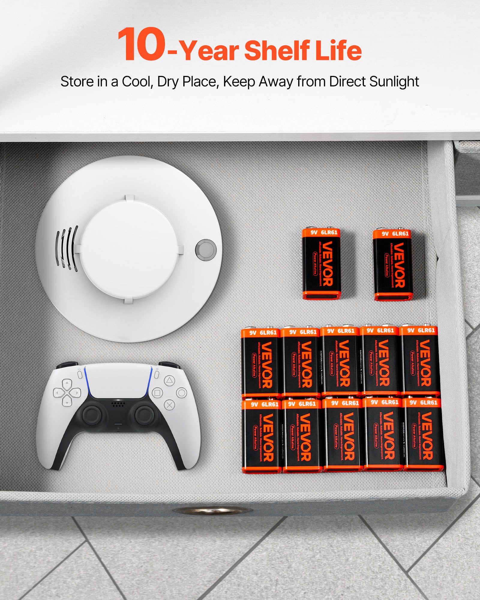 Up to 10 Years of Shelf Life: Designed with a leak-proof seal, our 9V square batteries avoid internal fluid loss and safeguard your devices. Stores securely for up to 10 years in a cool, dry place