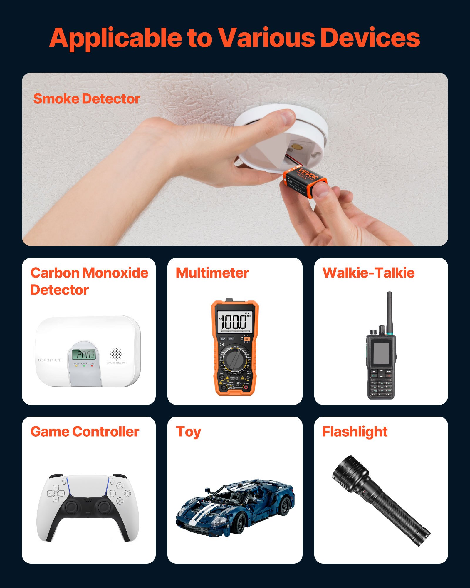 Versatile for Everyday Electronics: Ideal for garage door openers, smoke detectors, carbon monoxide alarms, clocks, radios, toys, and flashlights. Our 9 volt batteries are ideal for home, office, camping trips, and emergency kits