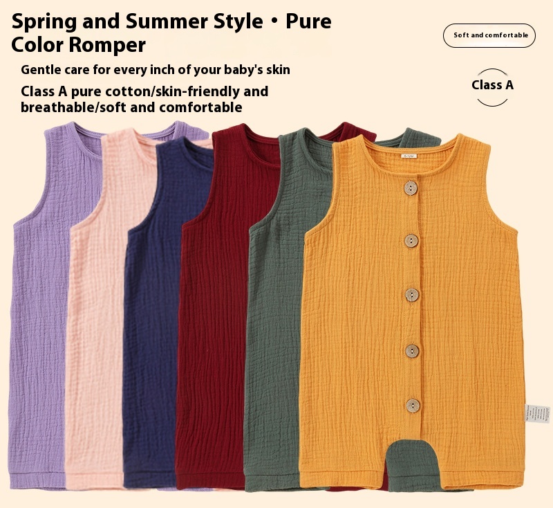 Color: solid color romper-orange, solid color romper-dark green, solid color romper-dark blue, solid color romper-pink, solid color romper-wine red, solid color romper-purple