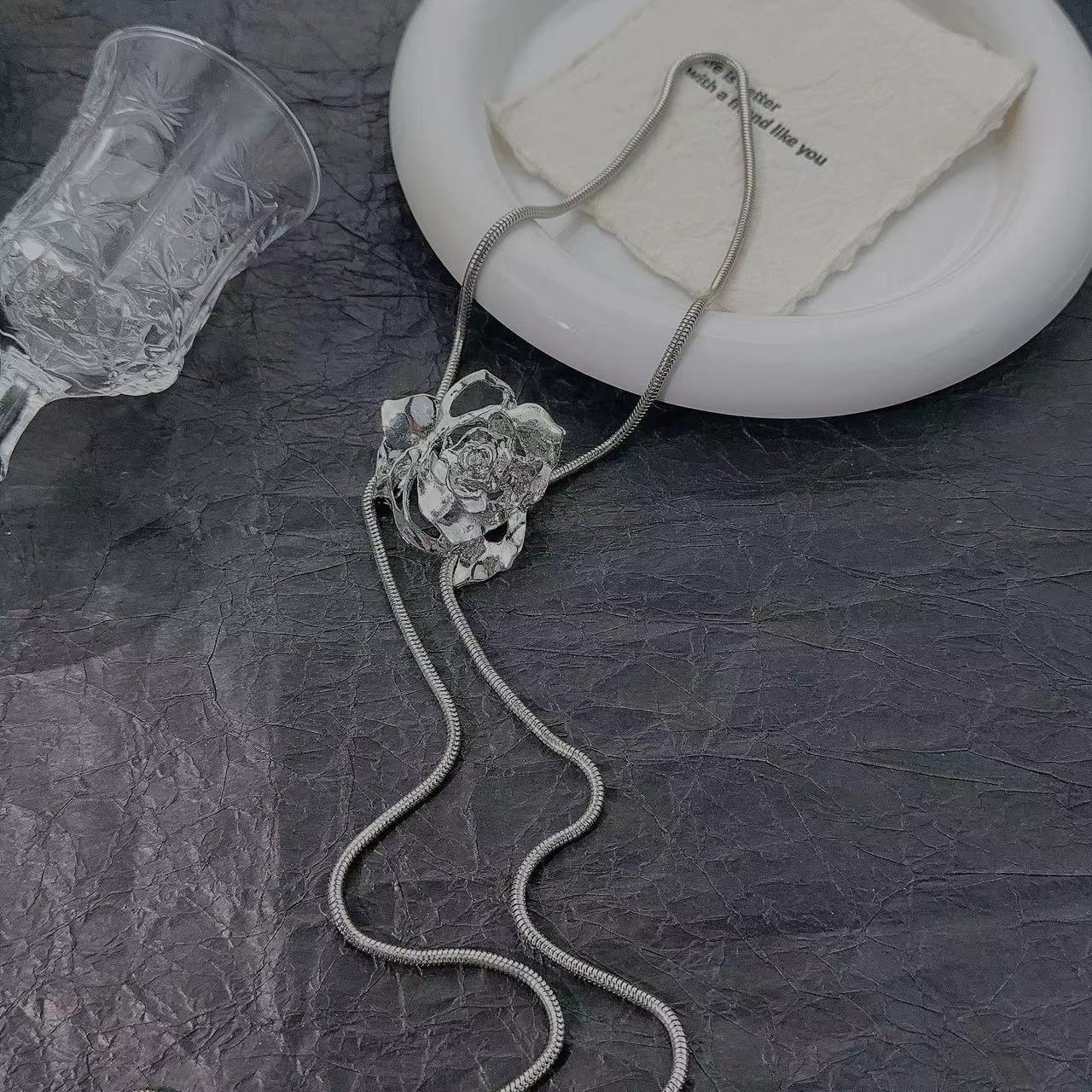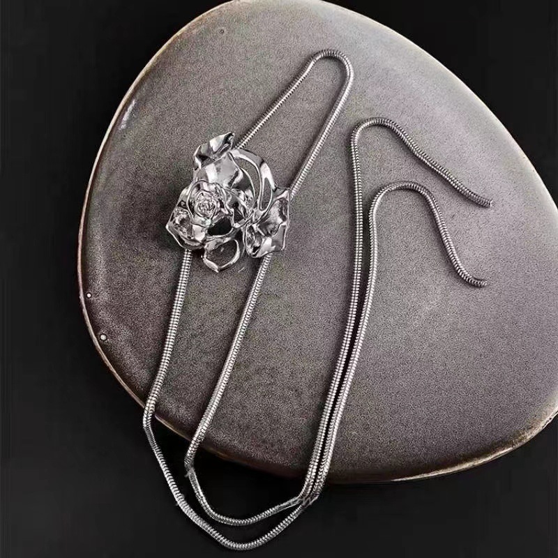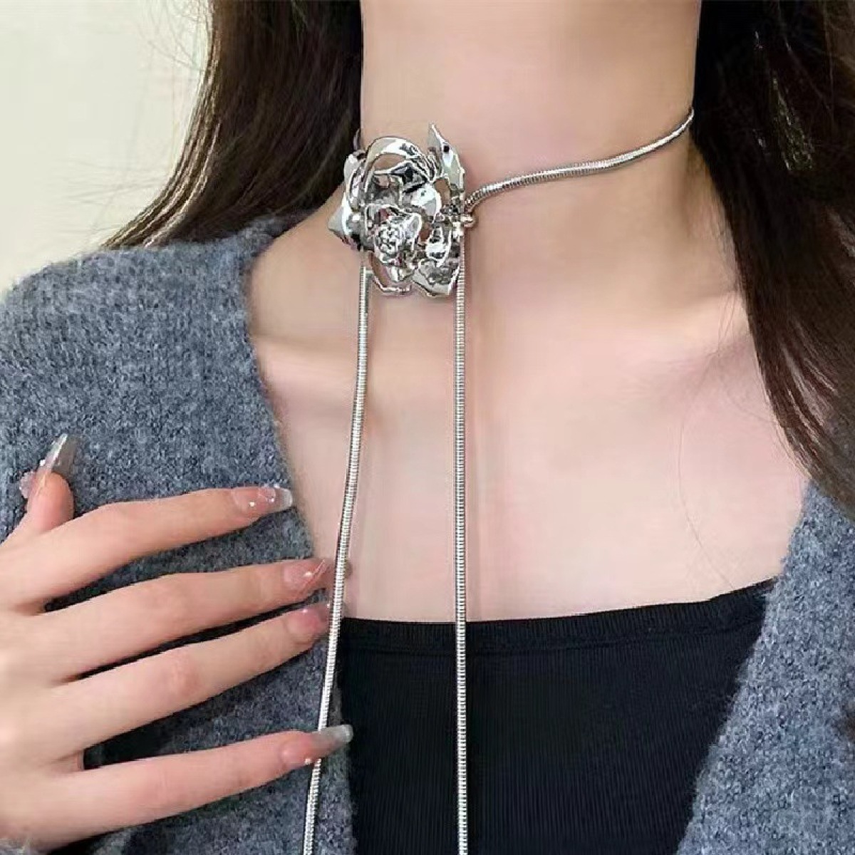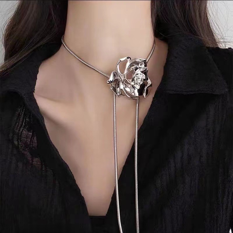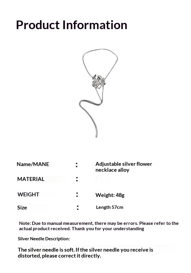 Color: Adjustable Silver Flower Necklace