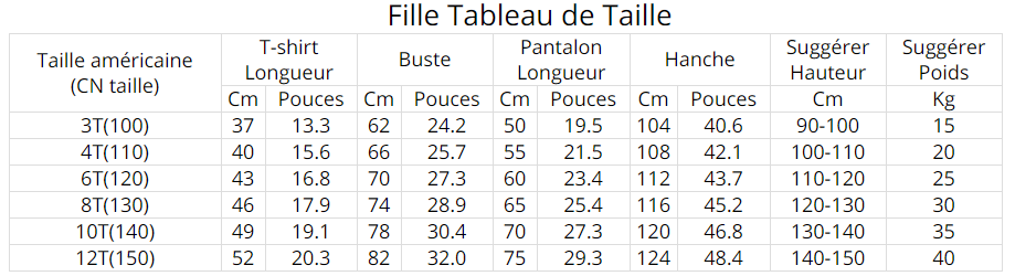girl 100 110 120 130 140 150