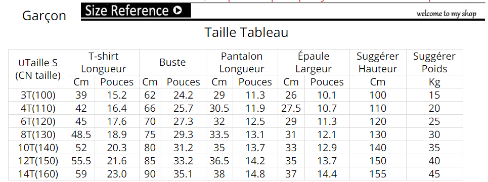 Size: boy 100 110 120 130 140 150 160