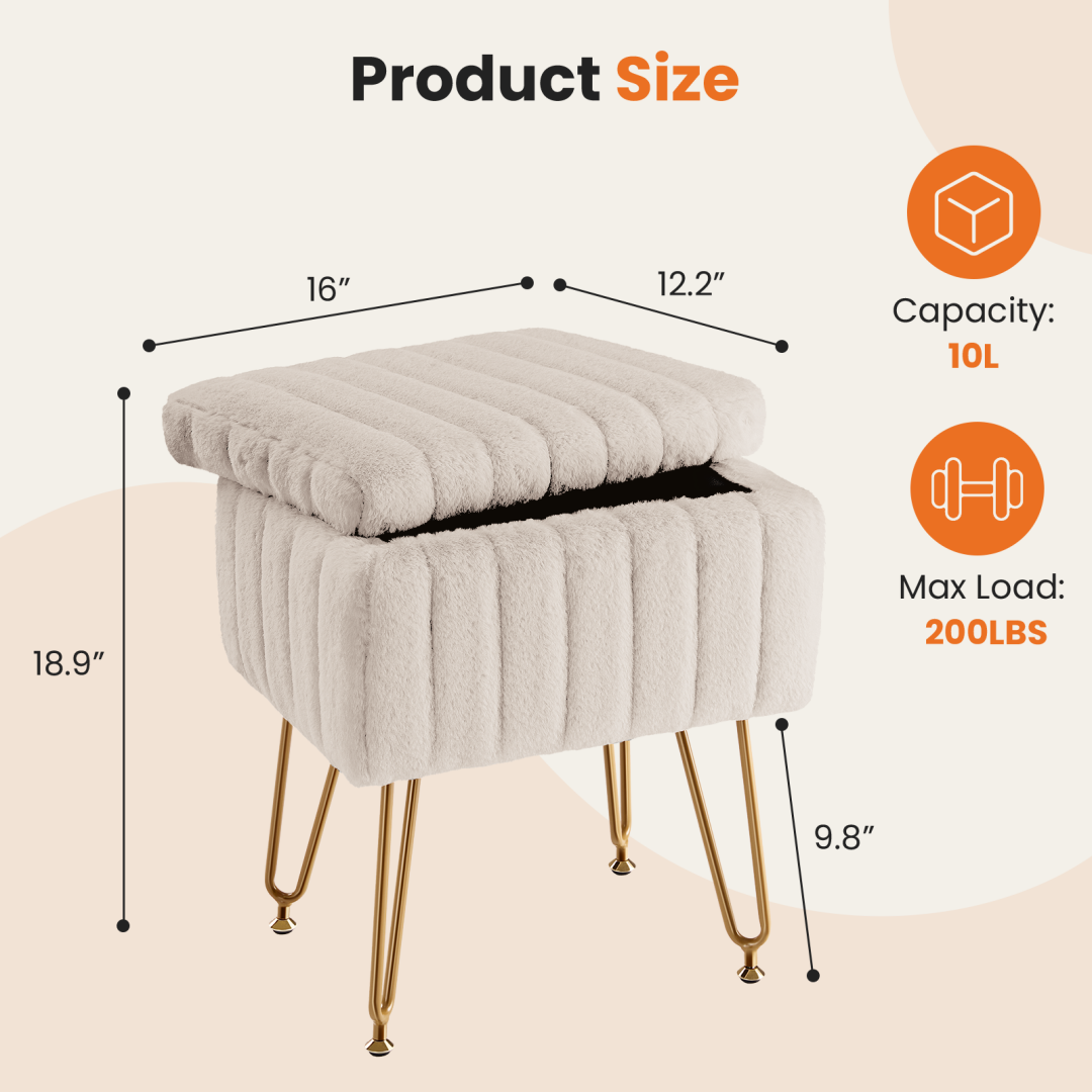 Soft imitation fur seat, comfortable to sit on; paired with sturdy metal supports, with strong load-bearing capacity, stable and does not shake even when sitting for a long time.