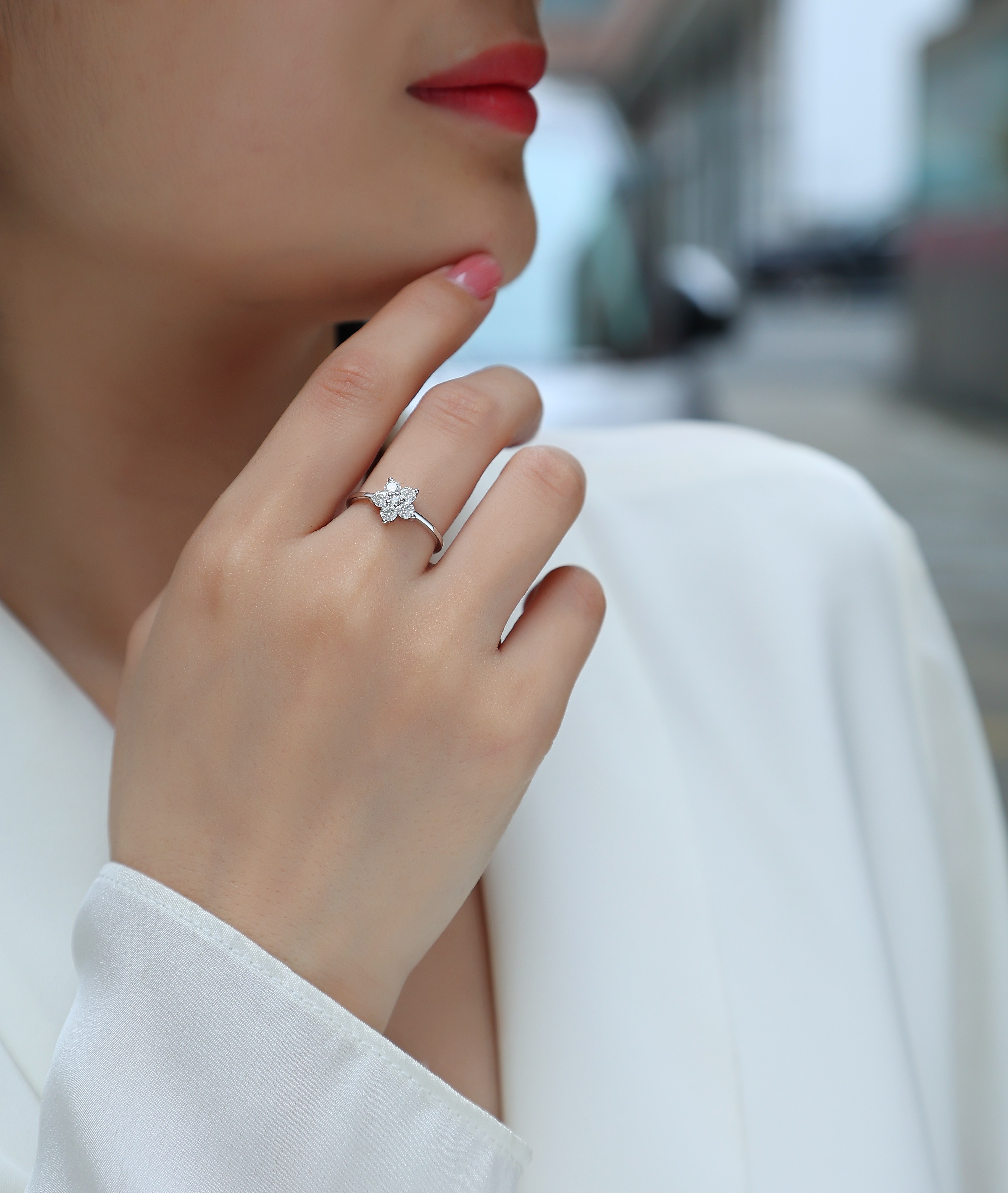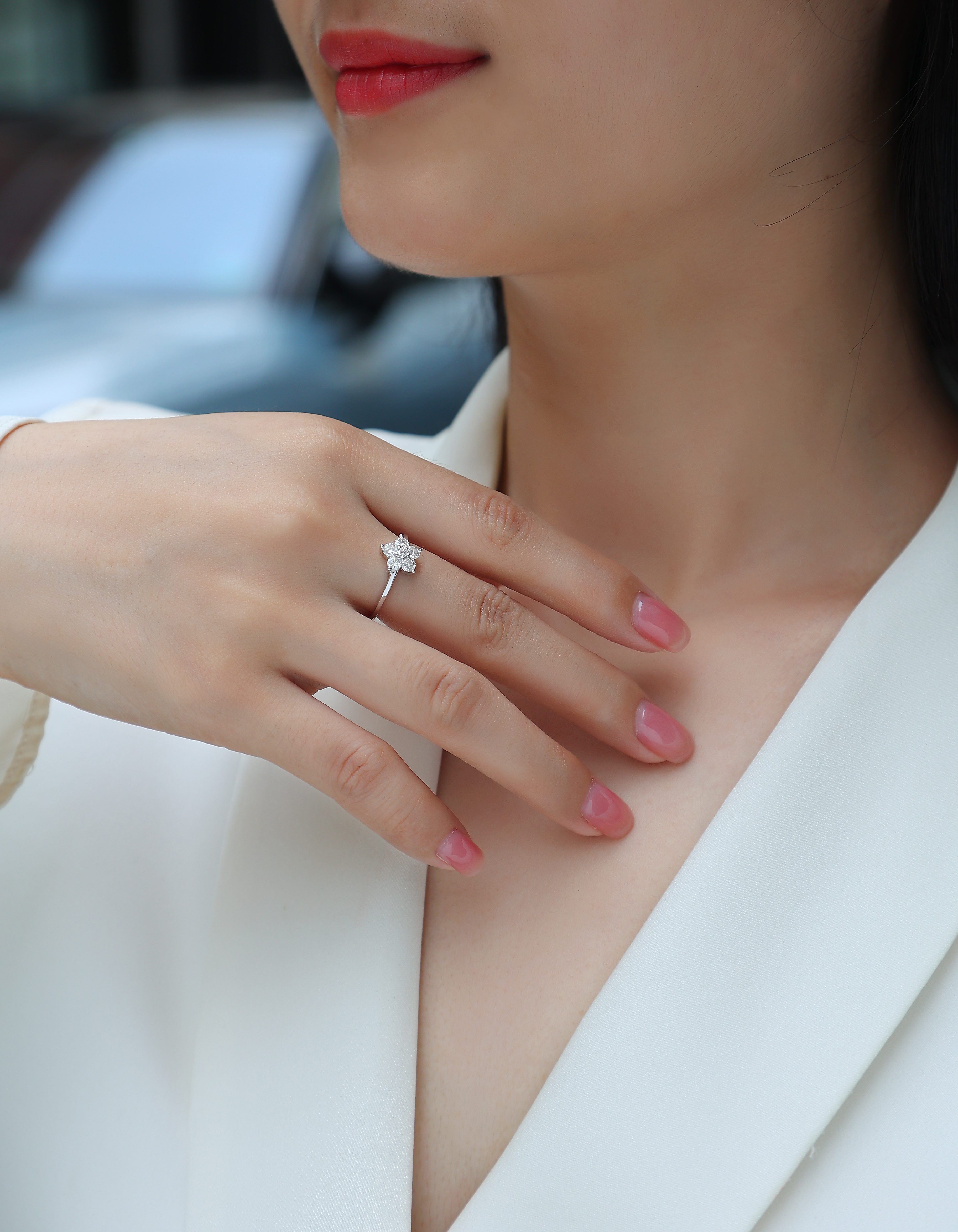 A Luxurious And Fashionable Light Luxury Jewelry Silver Ring Set With Top-quality Moissanite, S925 Silver Plated With Platinum