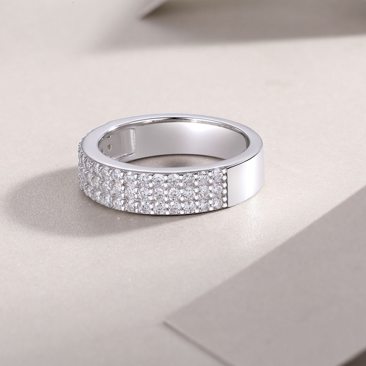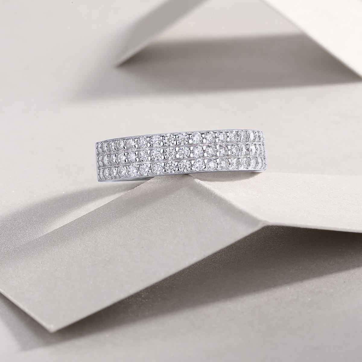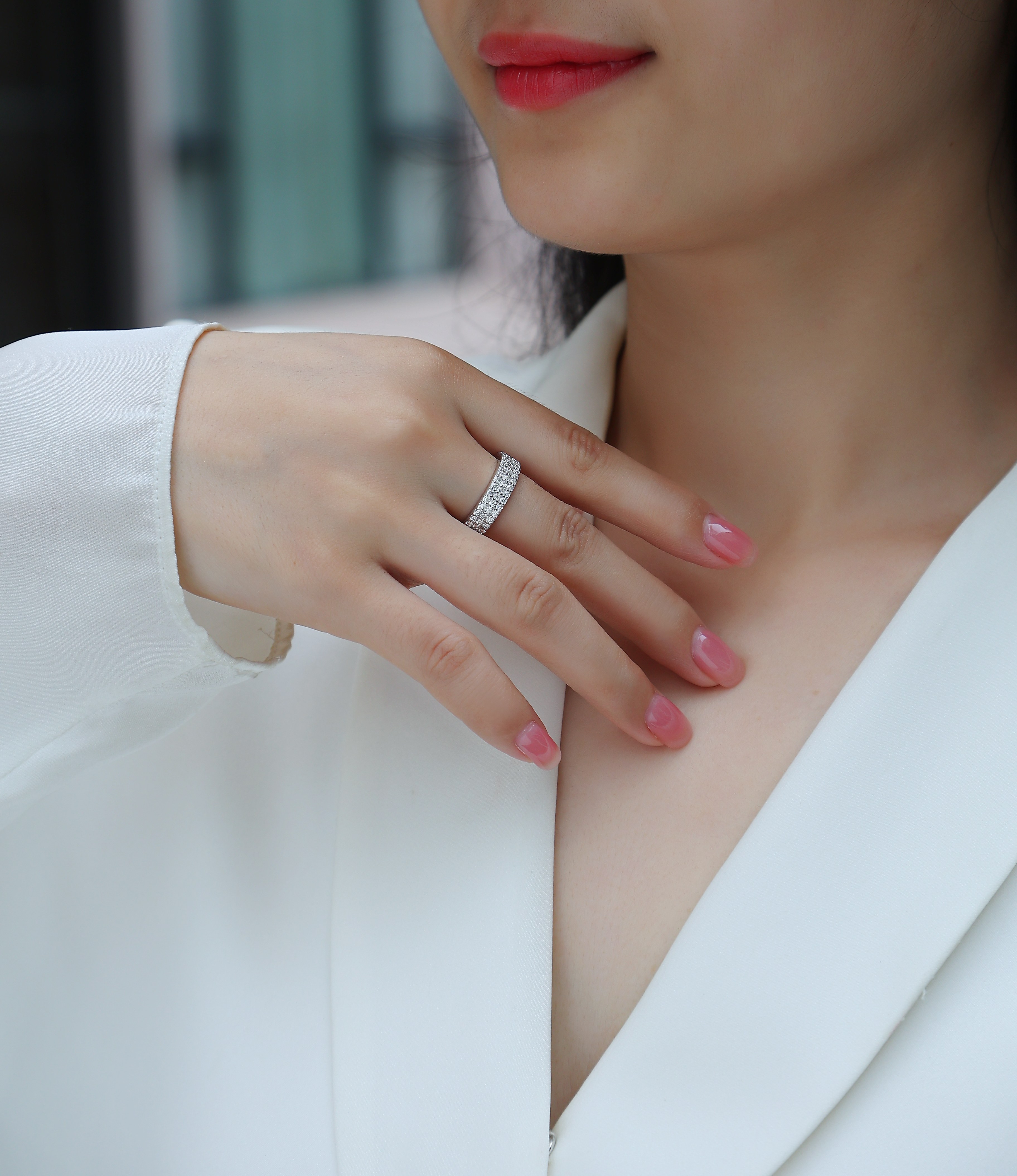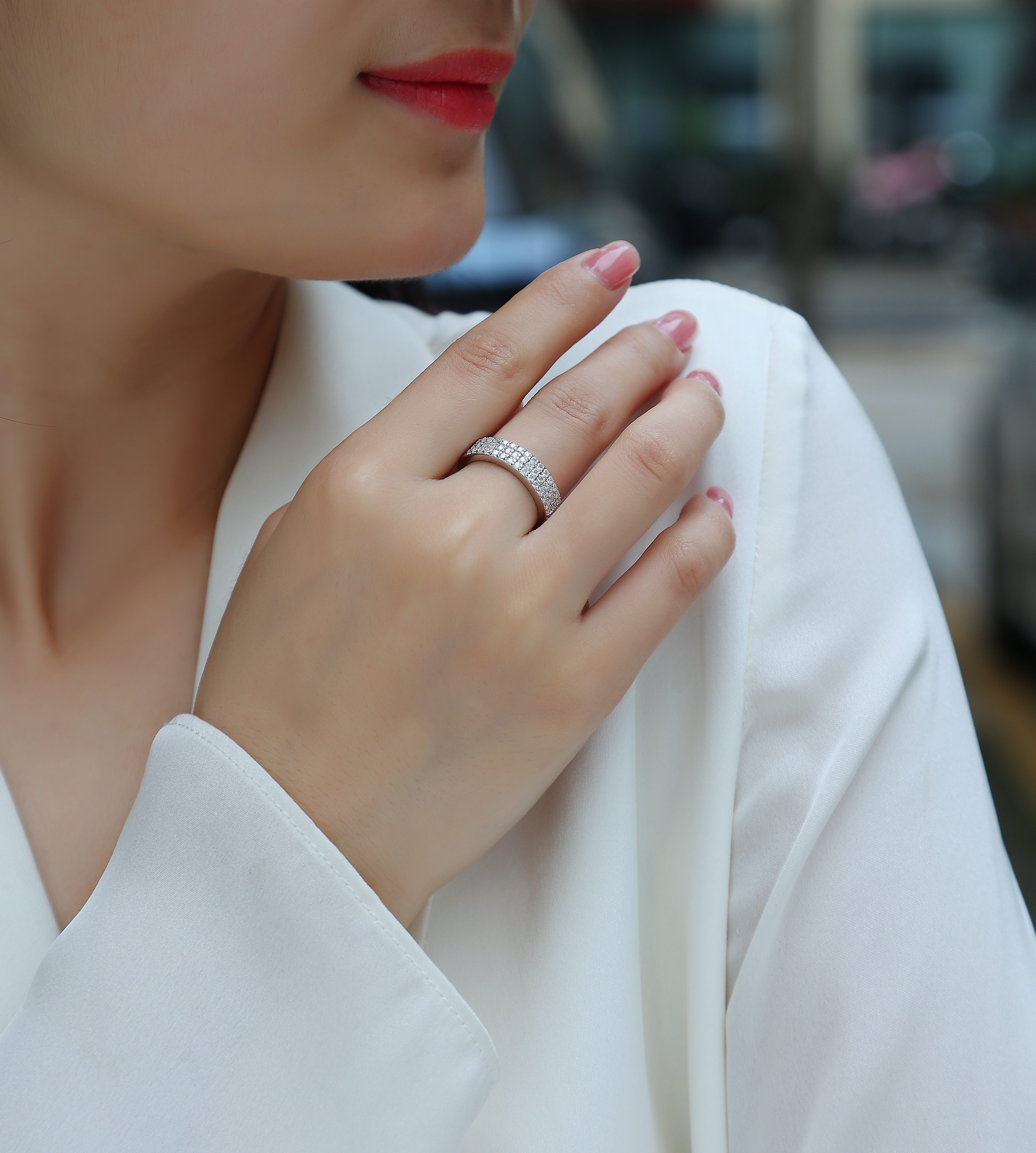 A Luxurious And Fashionable Light Luxury Jewelry Silver Ring Set With Top-quality Moissanite, S925 Silver Plated With Platinum