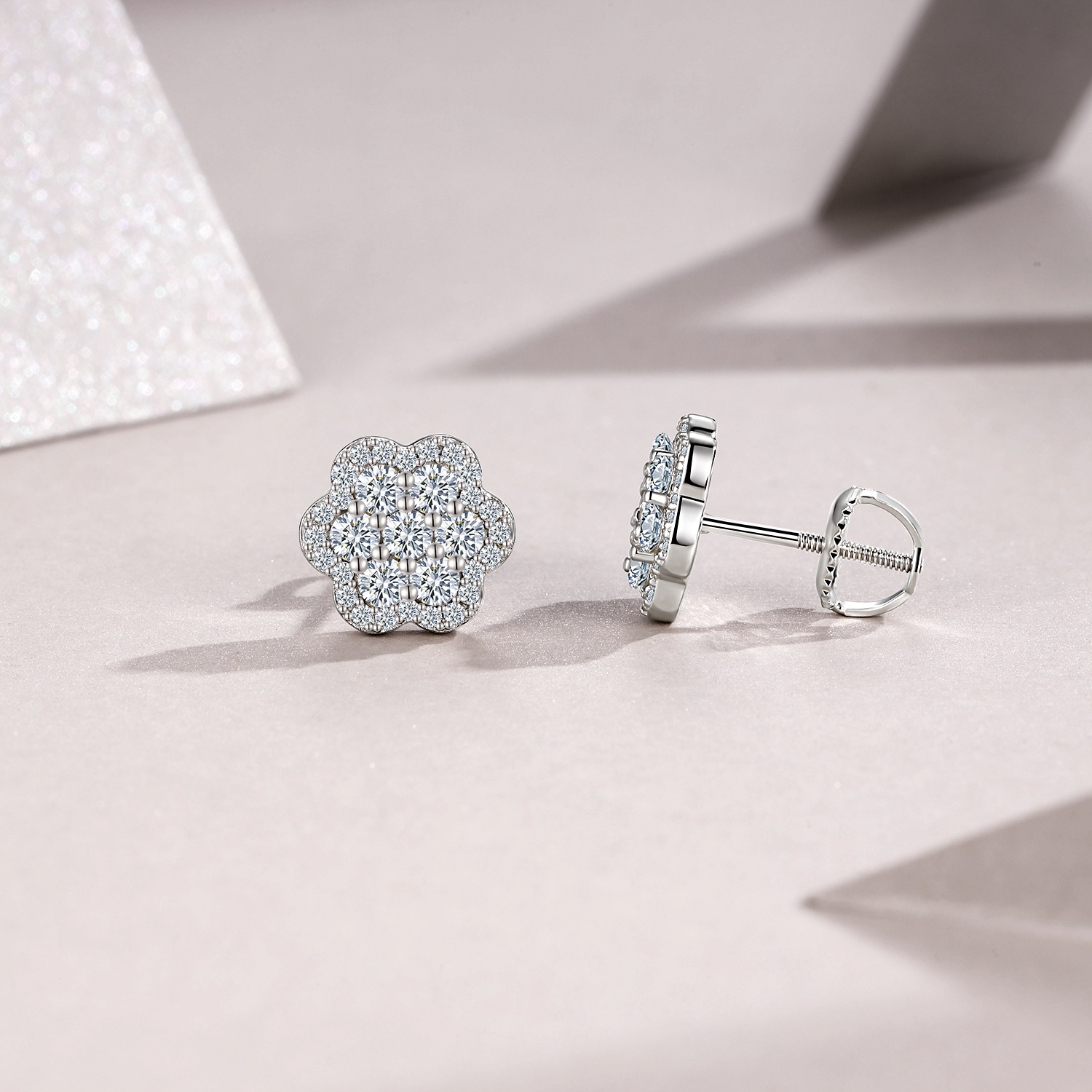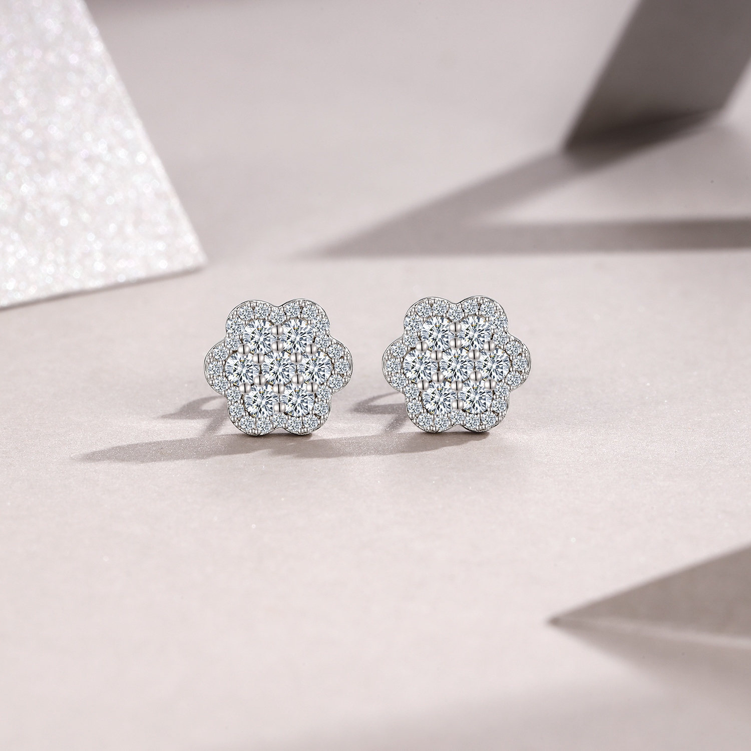 A Luxurious And Fashionable Minimalist Jewelry Earring Set Featuring Top-quality Moissanite Stones, Made Of S925 Silver Electroplated With Platinum.