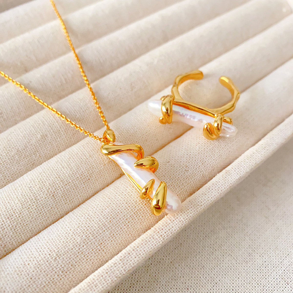 Product information:Processing method: Electroplating Color: Necklace, ring Material: Copper Trendy element: Pearl