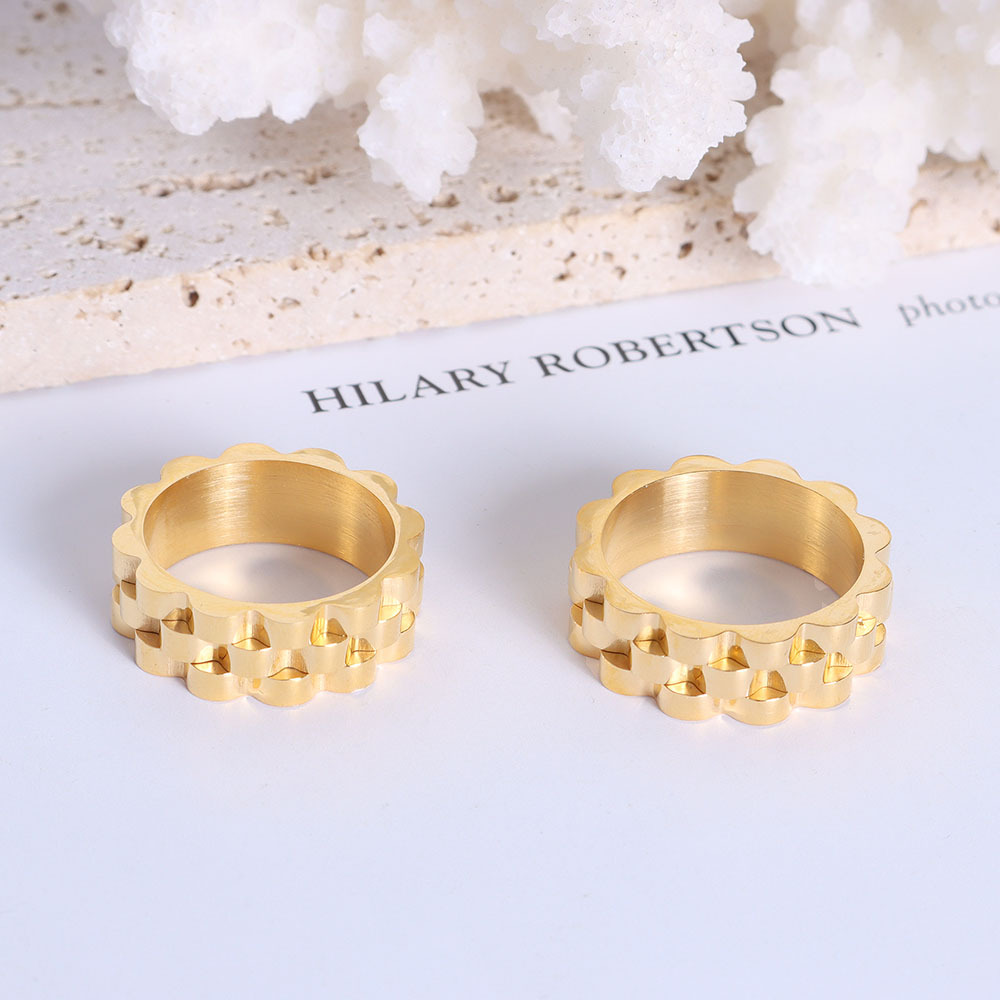 A Sense Of Nature Titanium Steel 18k Gold Plated Jewelry Bracelet Ring