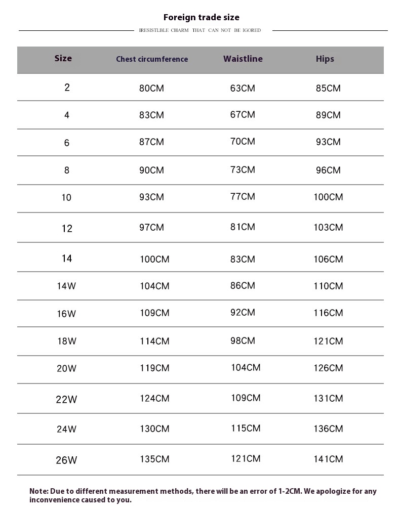 Size: 2,4,6,8,10,12,14,14W, 16W, 18W, 20W, 22W, 24W, 26W