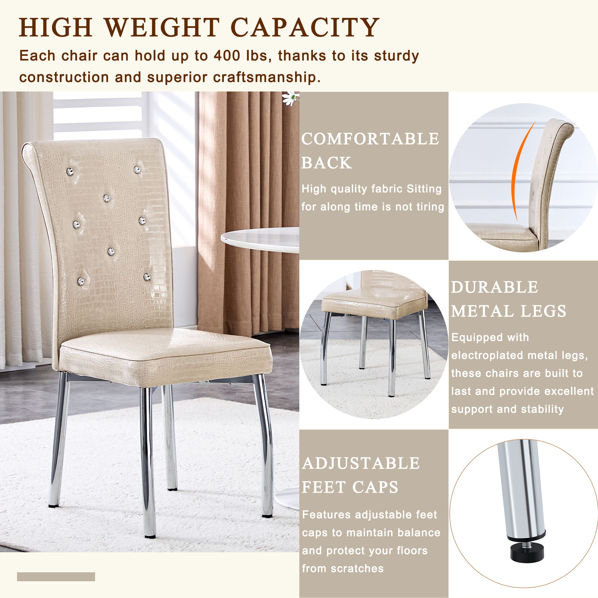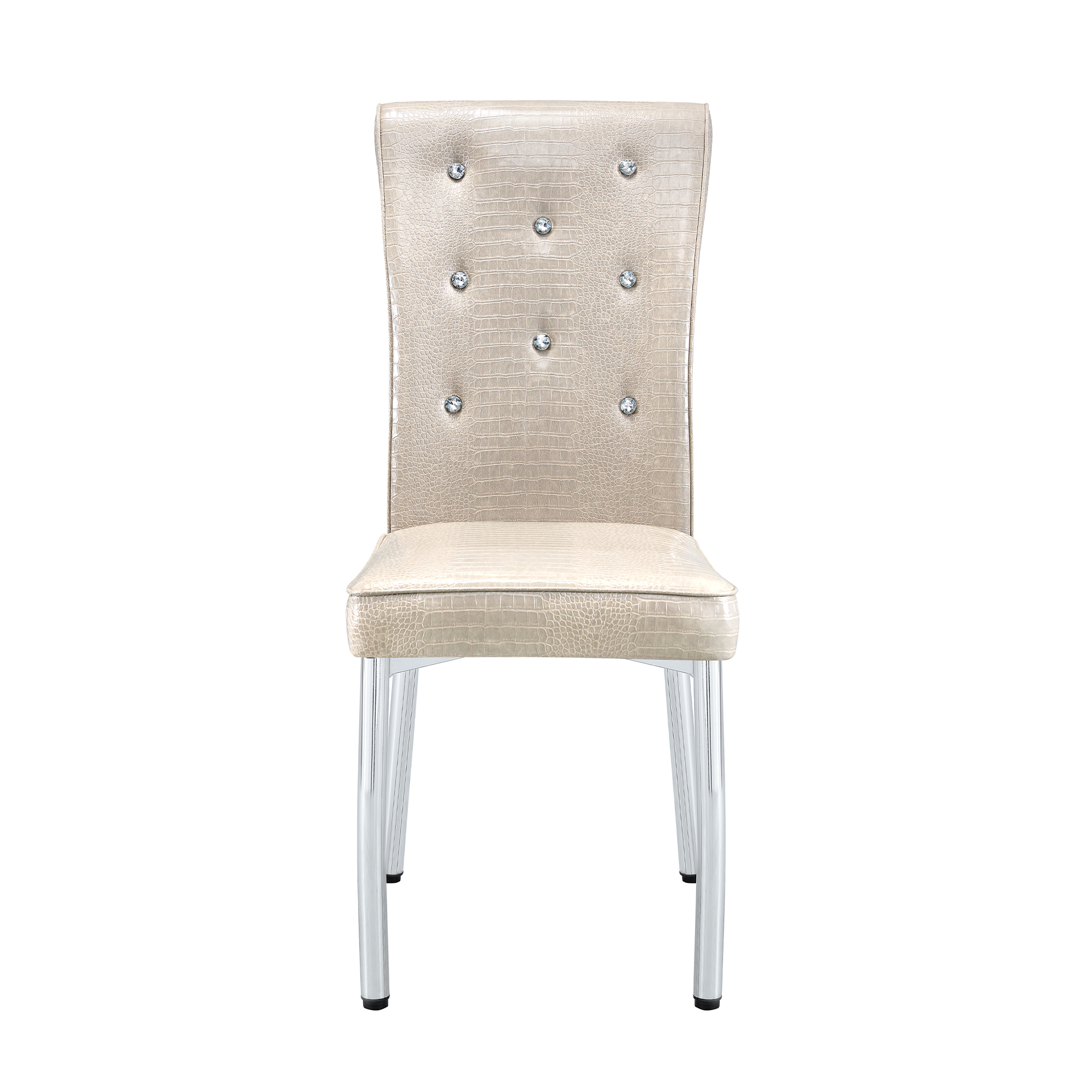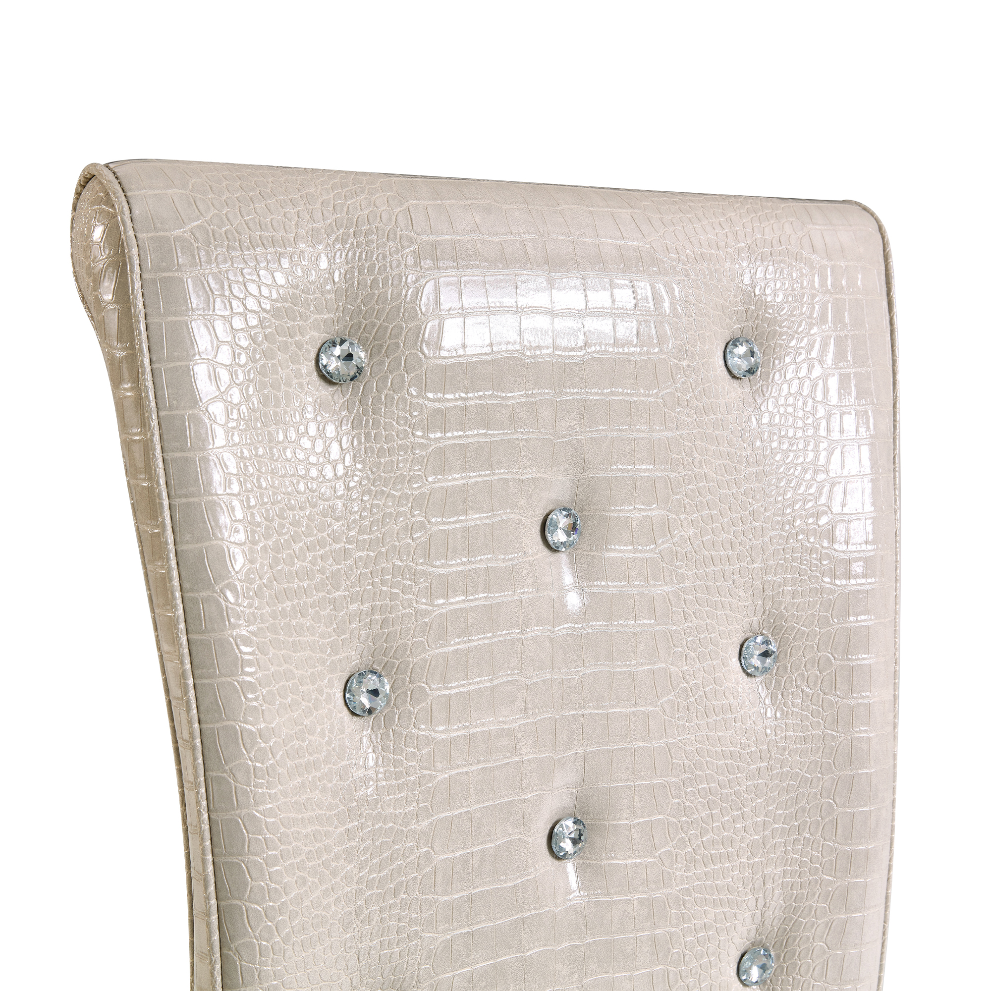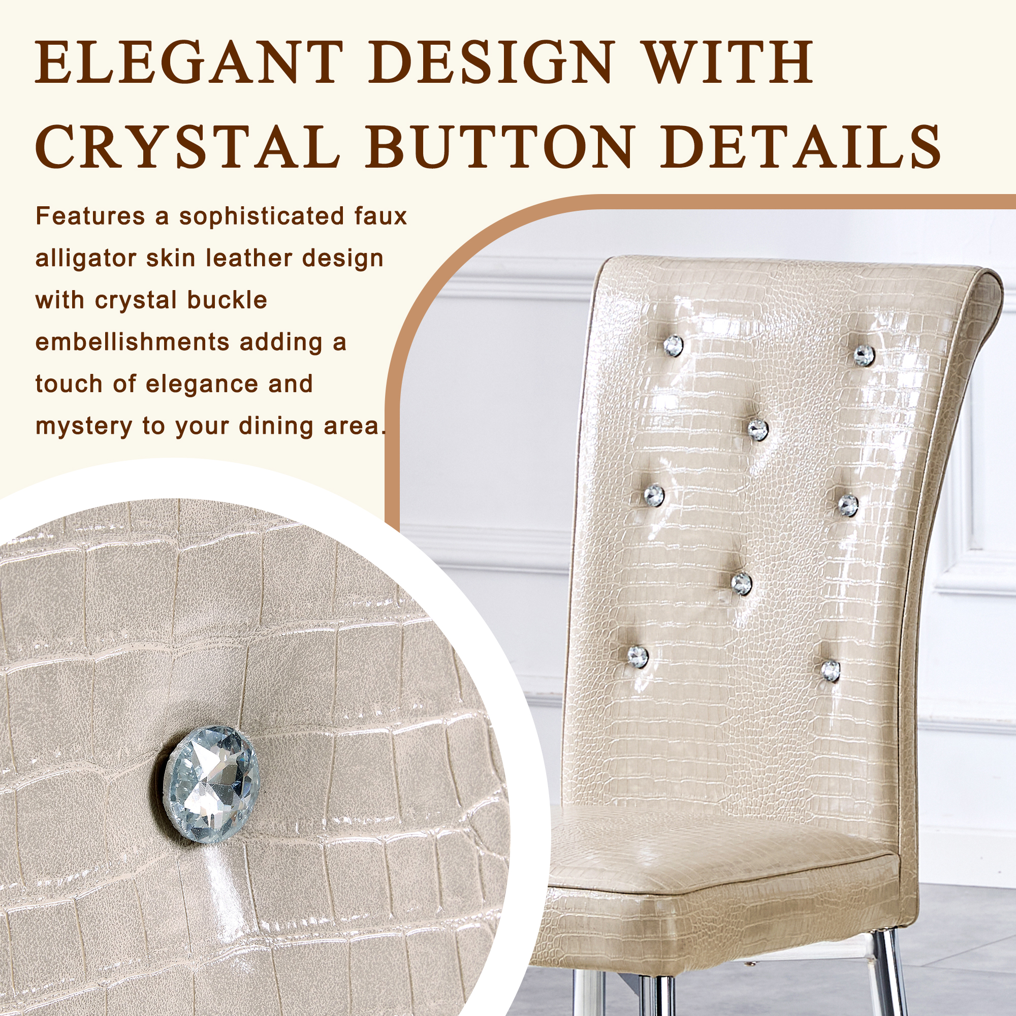 Product Name:A set of 2 beige and silver vintage crocodile leather cushioned dining chairs, featuring crystal clasp design and artificial leather design, adding a touch of elegance and mystery to the dining area