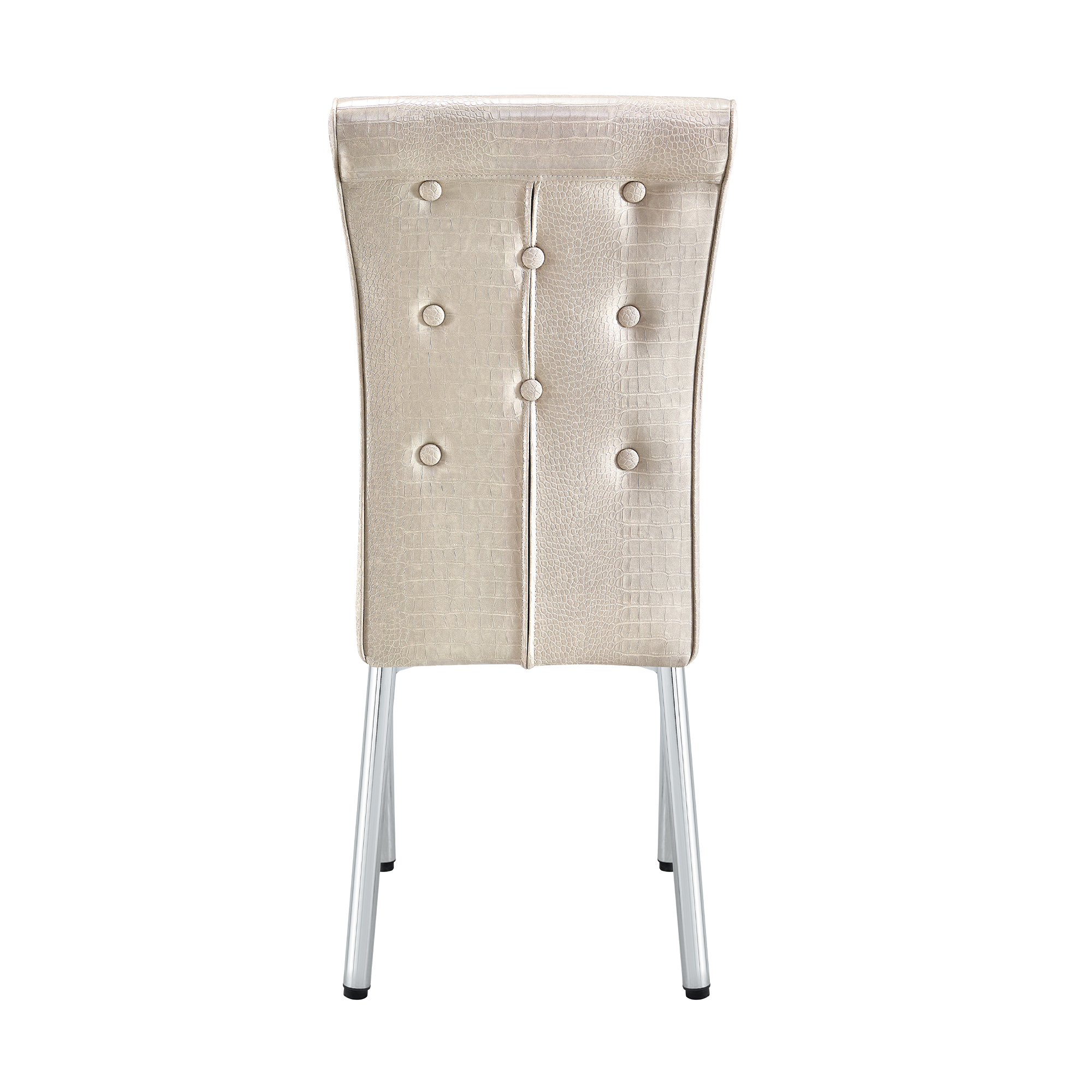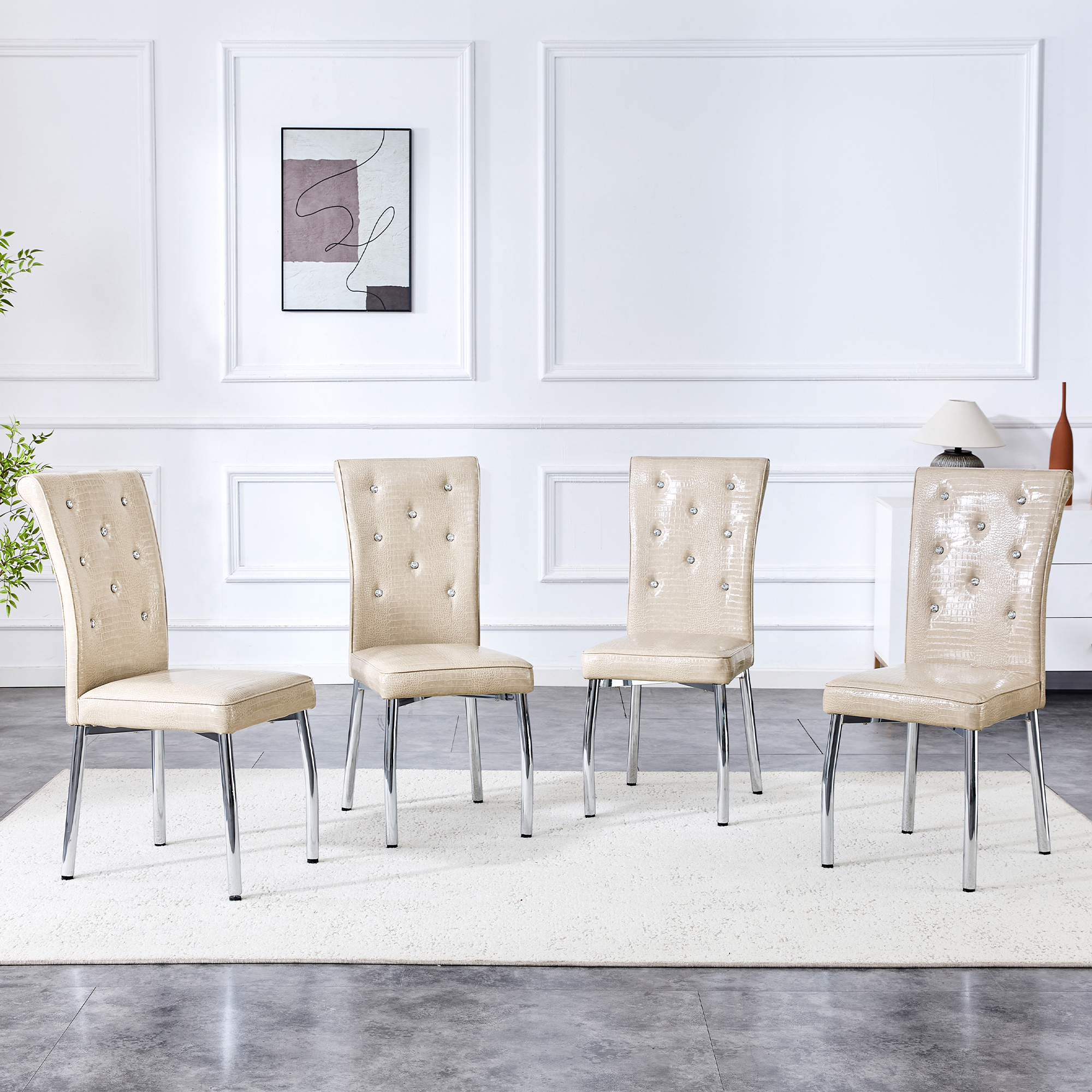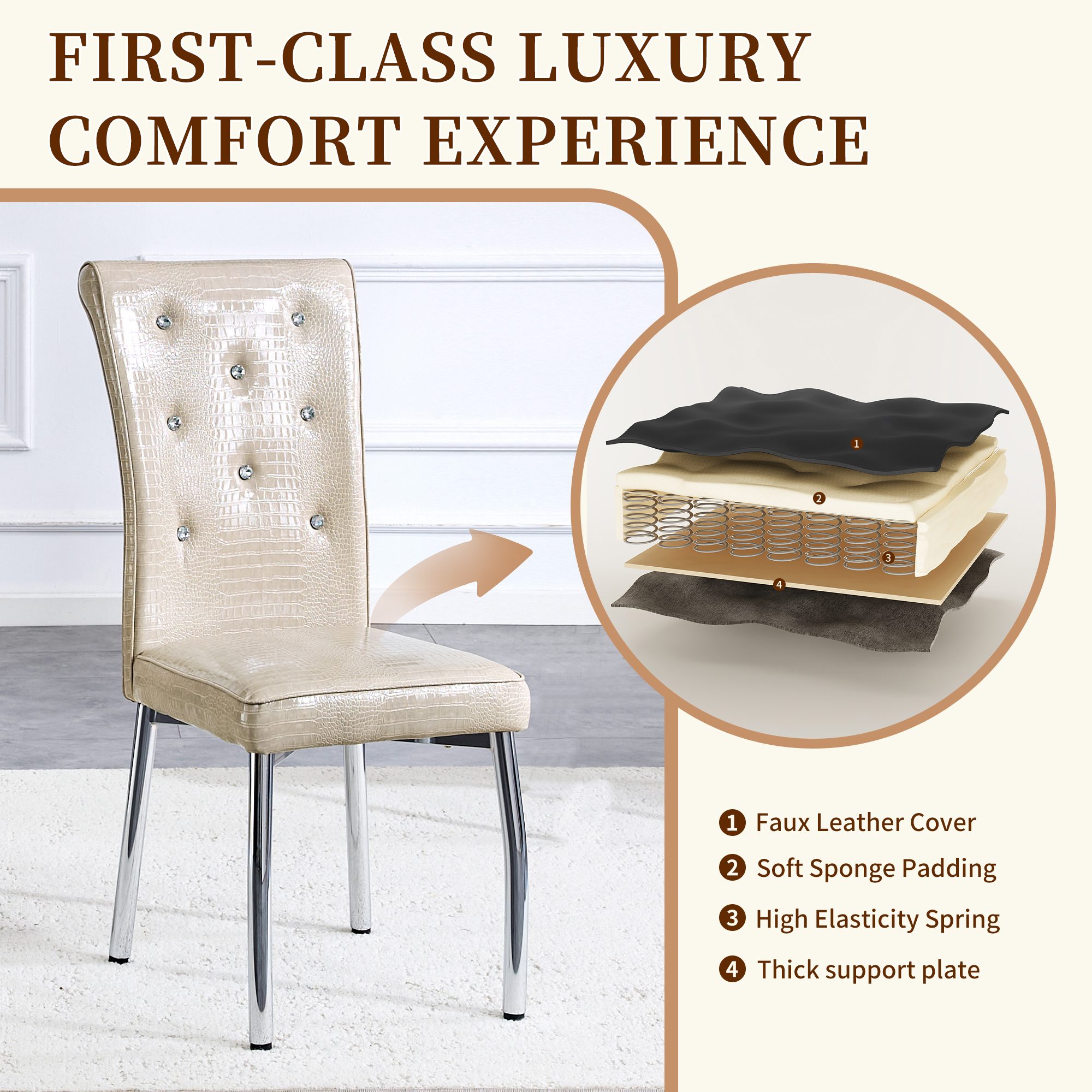 Product Name:A set of 2 beige and silver vintage crocodile leather cushioned dining chairs, featuring crystal clasp design and artificial leather design, adding a touch of elegance and mystery to the dining area