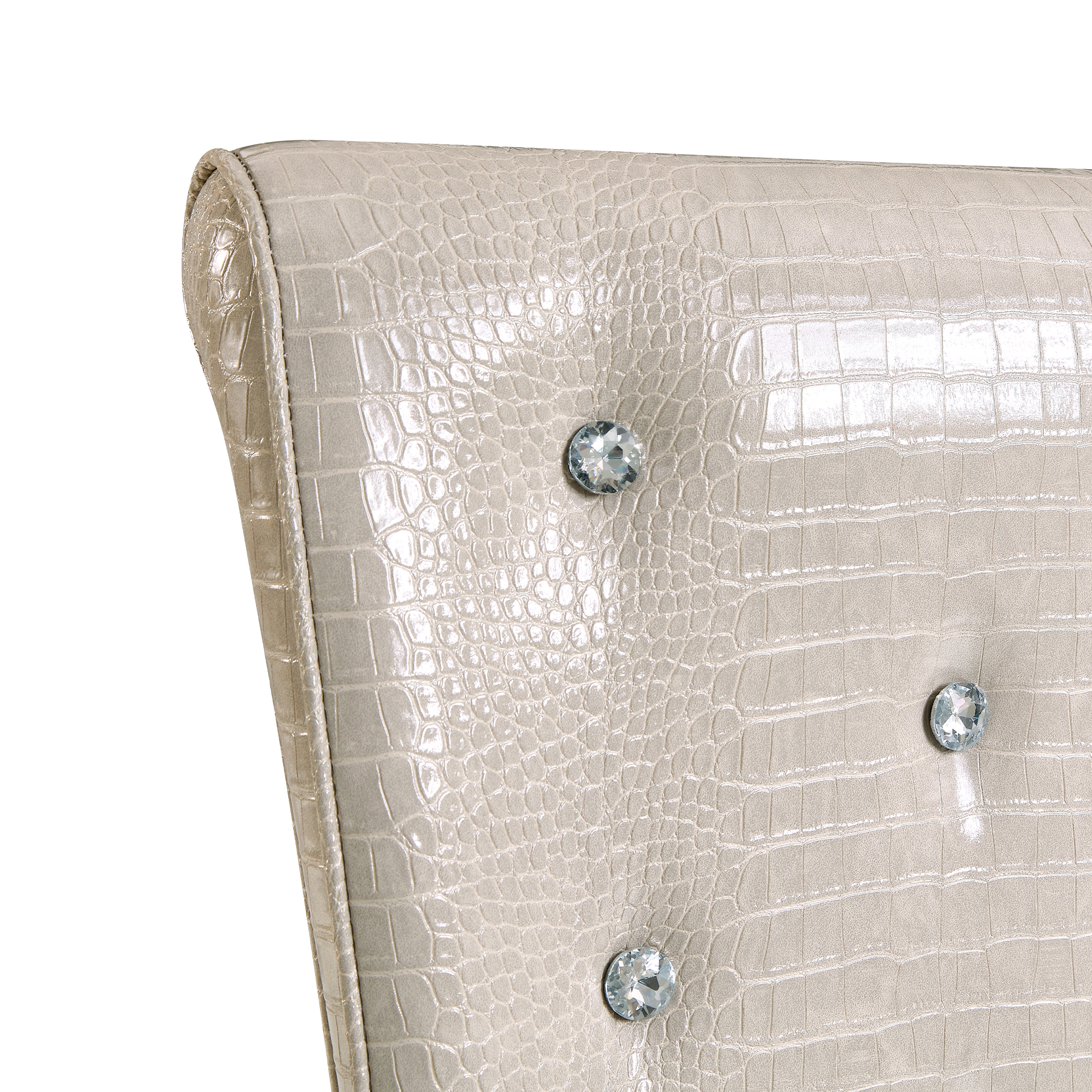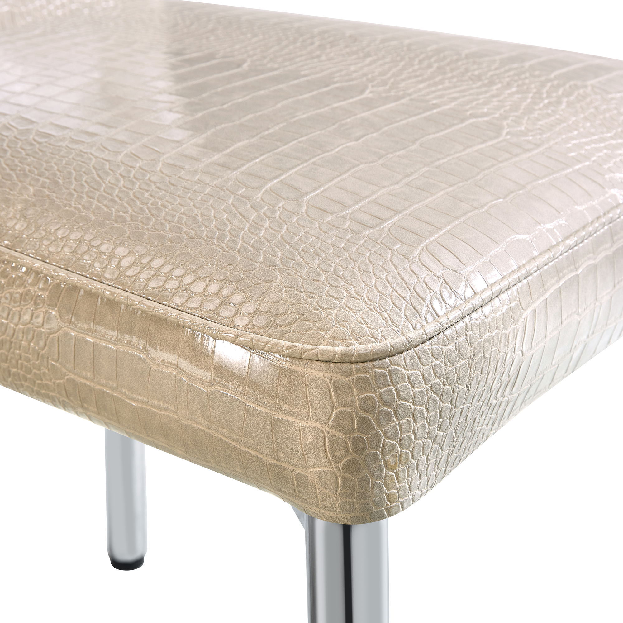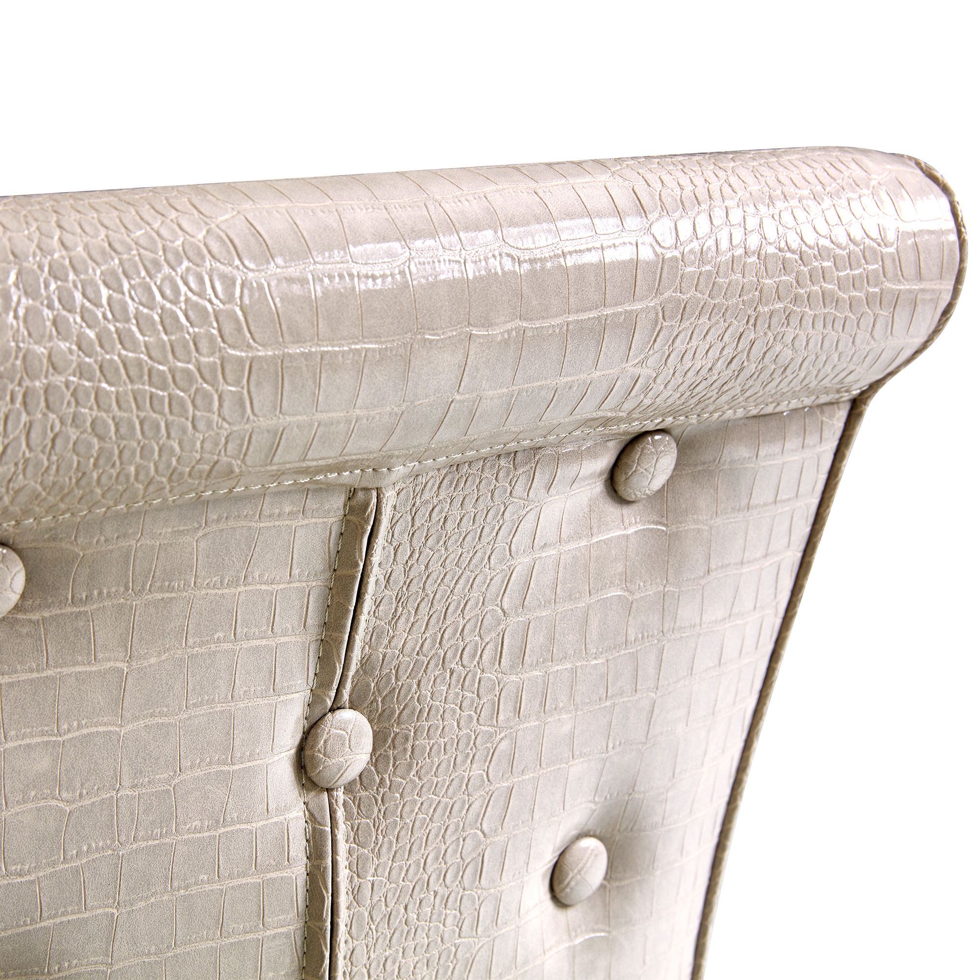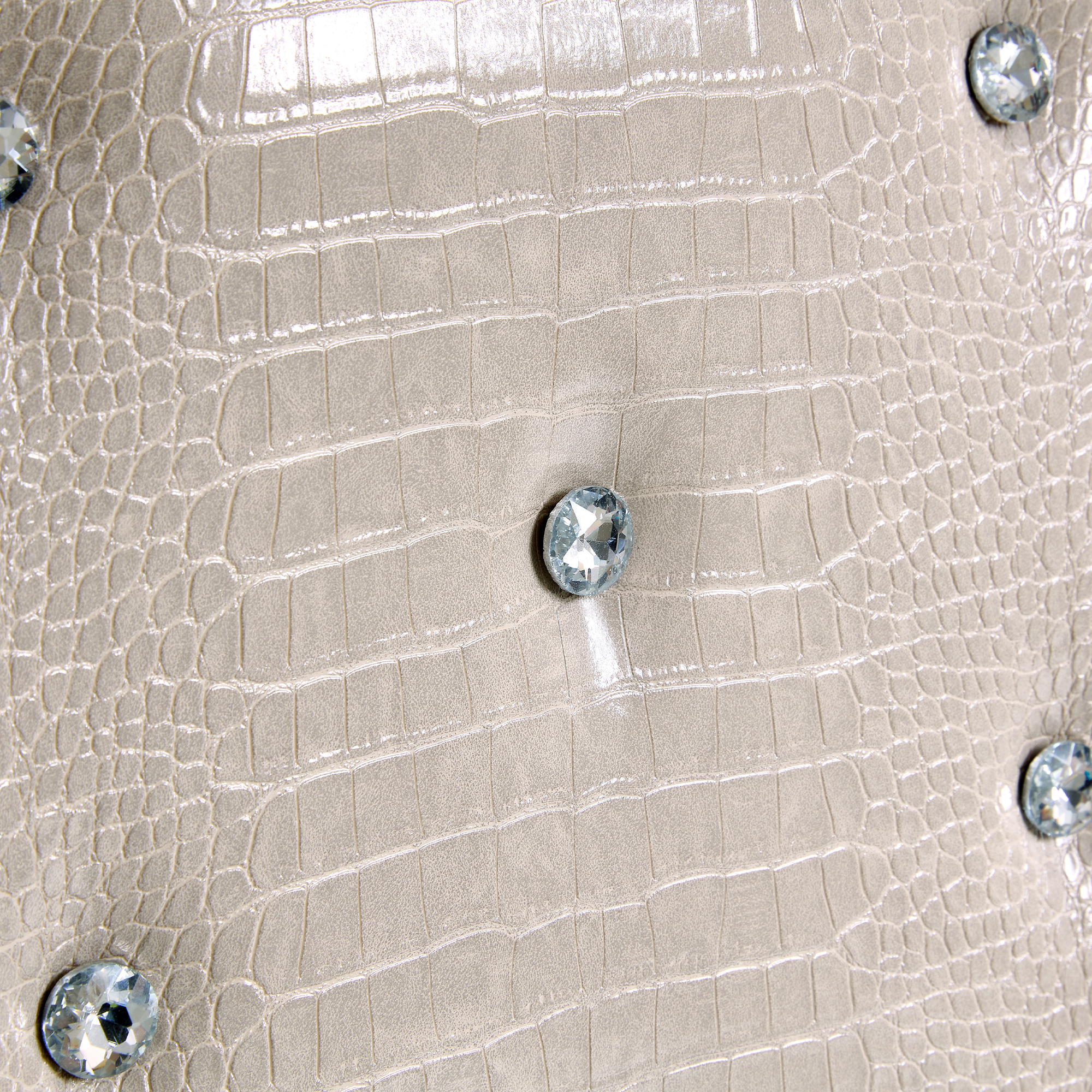 Product Name:A set of 2 beige and silver vintage crocodile leather cushioned dining chairs, featuring crystal clasp design and artificial leather design, adding a touch of elegance and mystery to the dining area