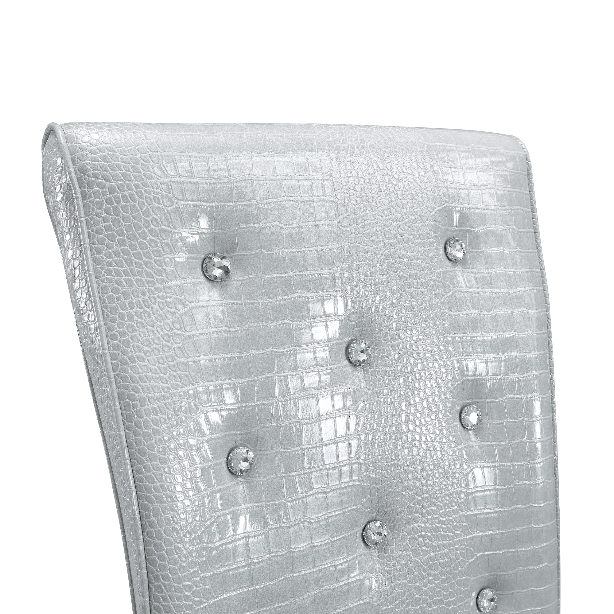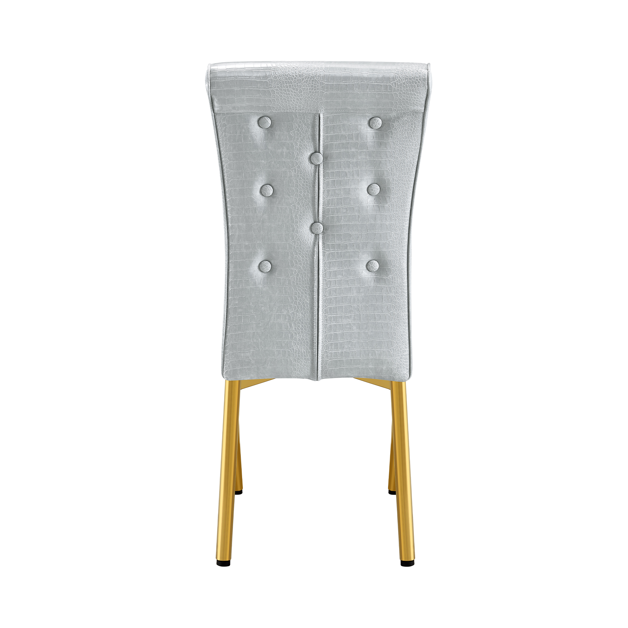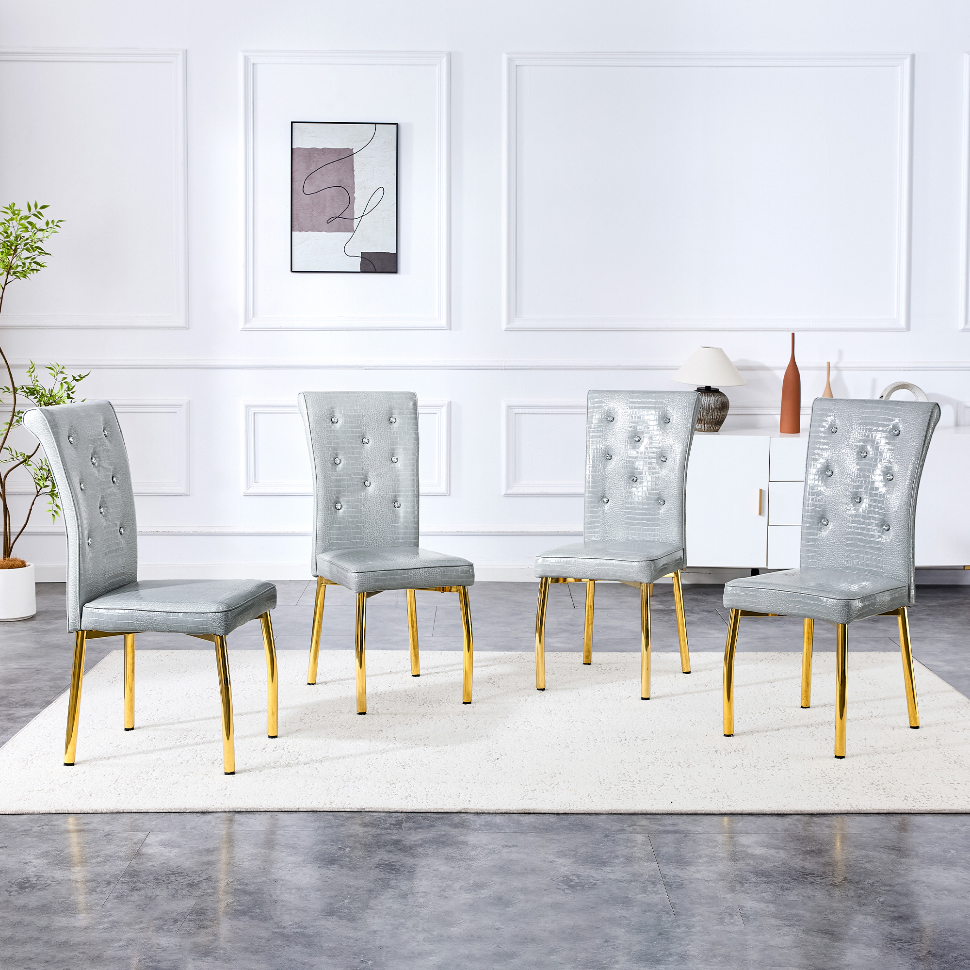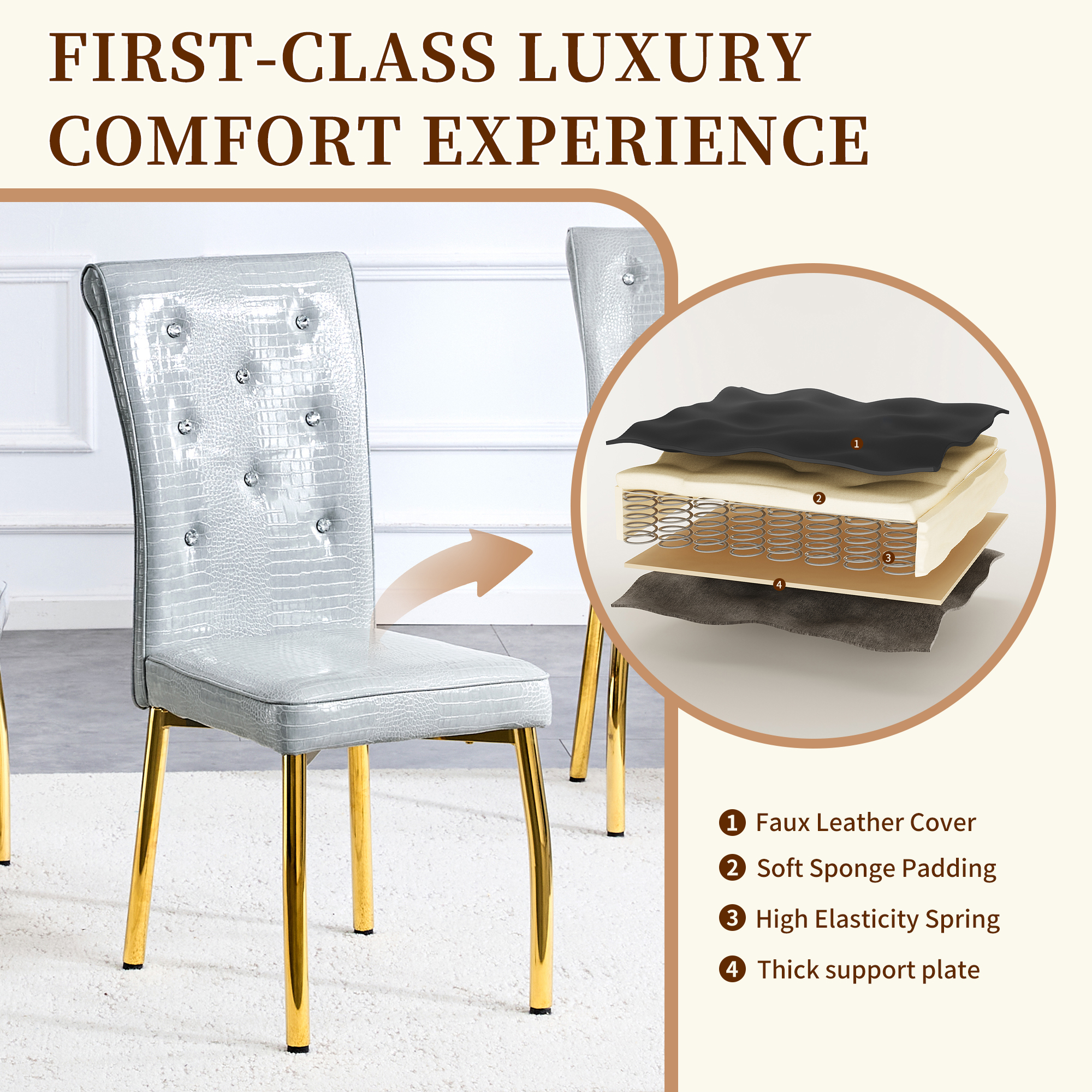 Product Name:A set of 2 gray and gold vintage crocodile leather cushioned dining chairs, featuring crystal clasp design and artificial leather design, adding a touch of elegance and mystery to the dining area