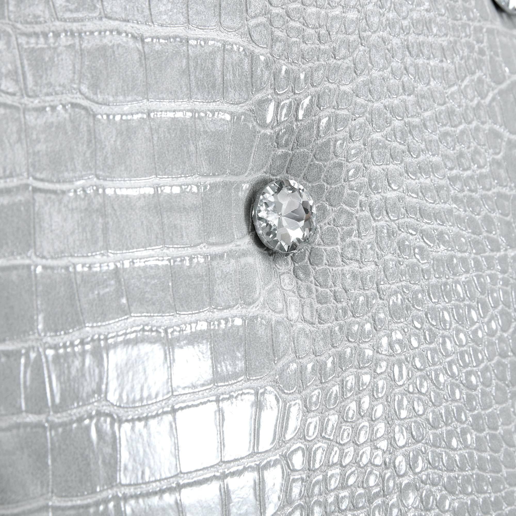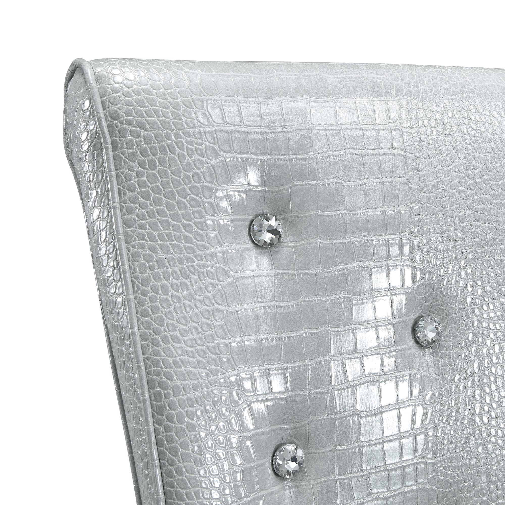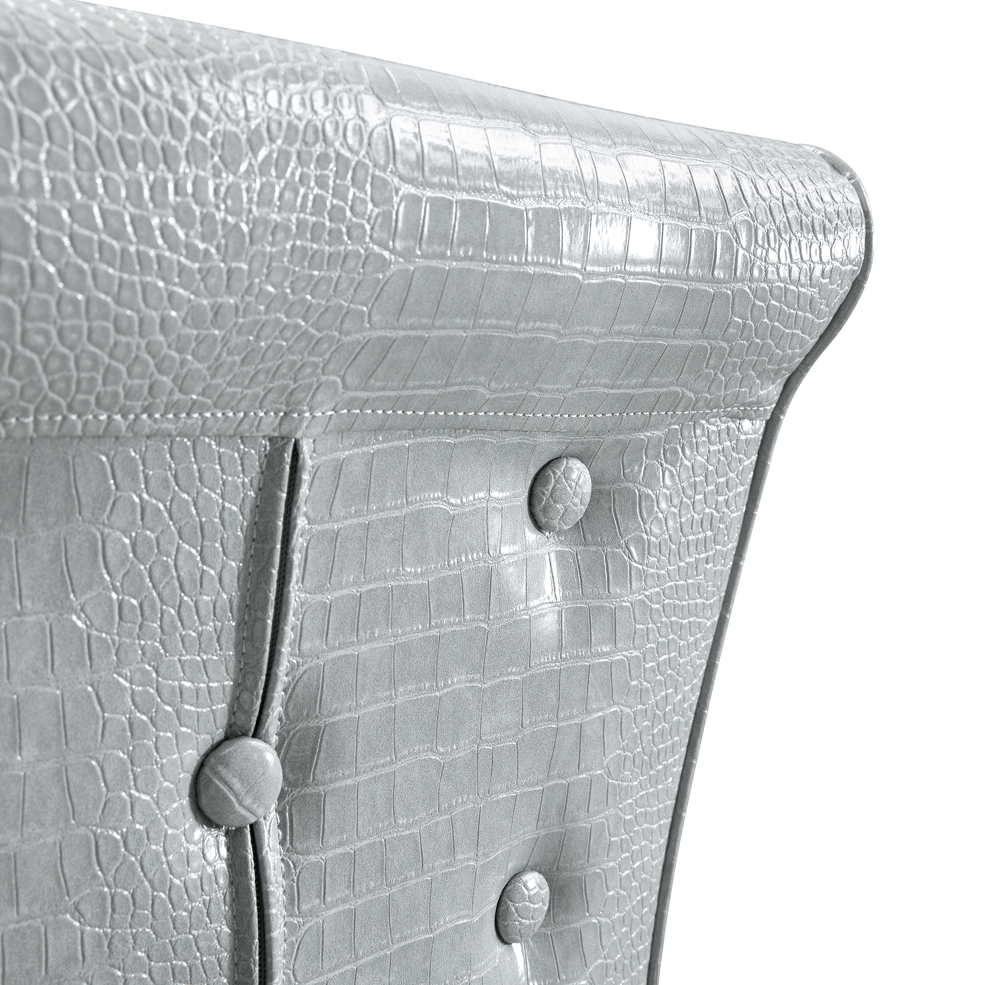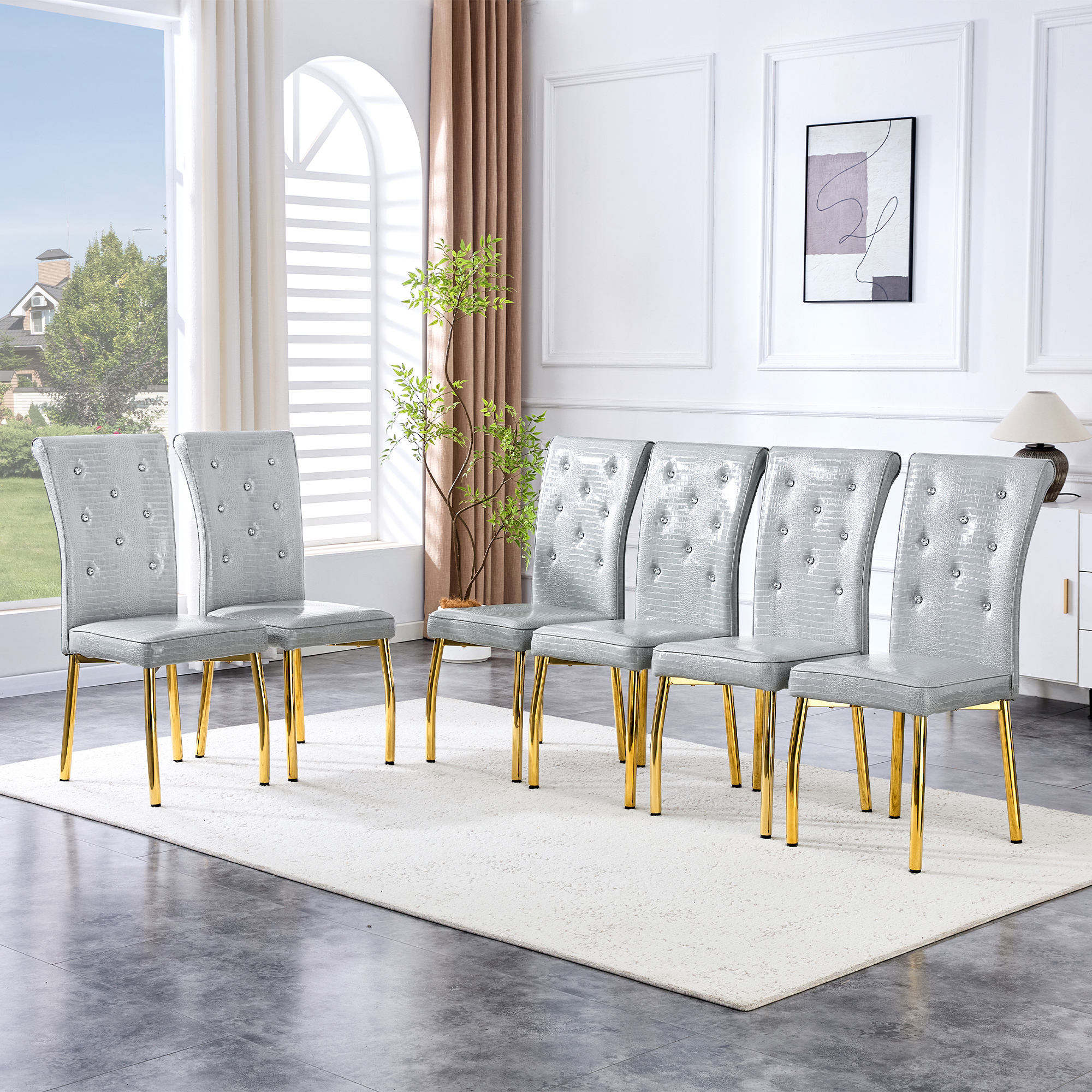 Product Name:A set of 2 gray and gold vintage crocodile leather cushioned dining chairs, featuring crystal clasp design and artificial leather design, adding a touch of elegance and mystery to the dining area