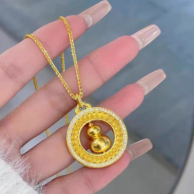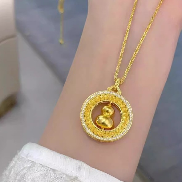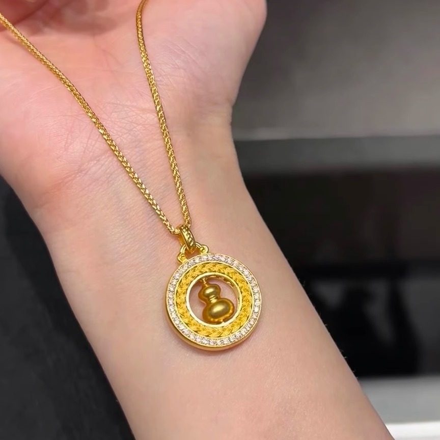 Style: Micro-pave Wheat Ears Rotating Gourd Pendant (necklace not included), Micro-pave Wheat Ears Rotating Gourd Pendant with Chopin Chain