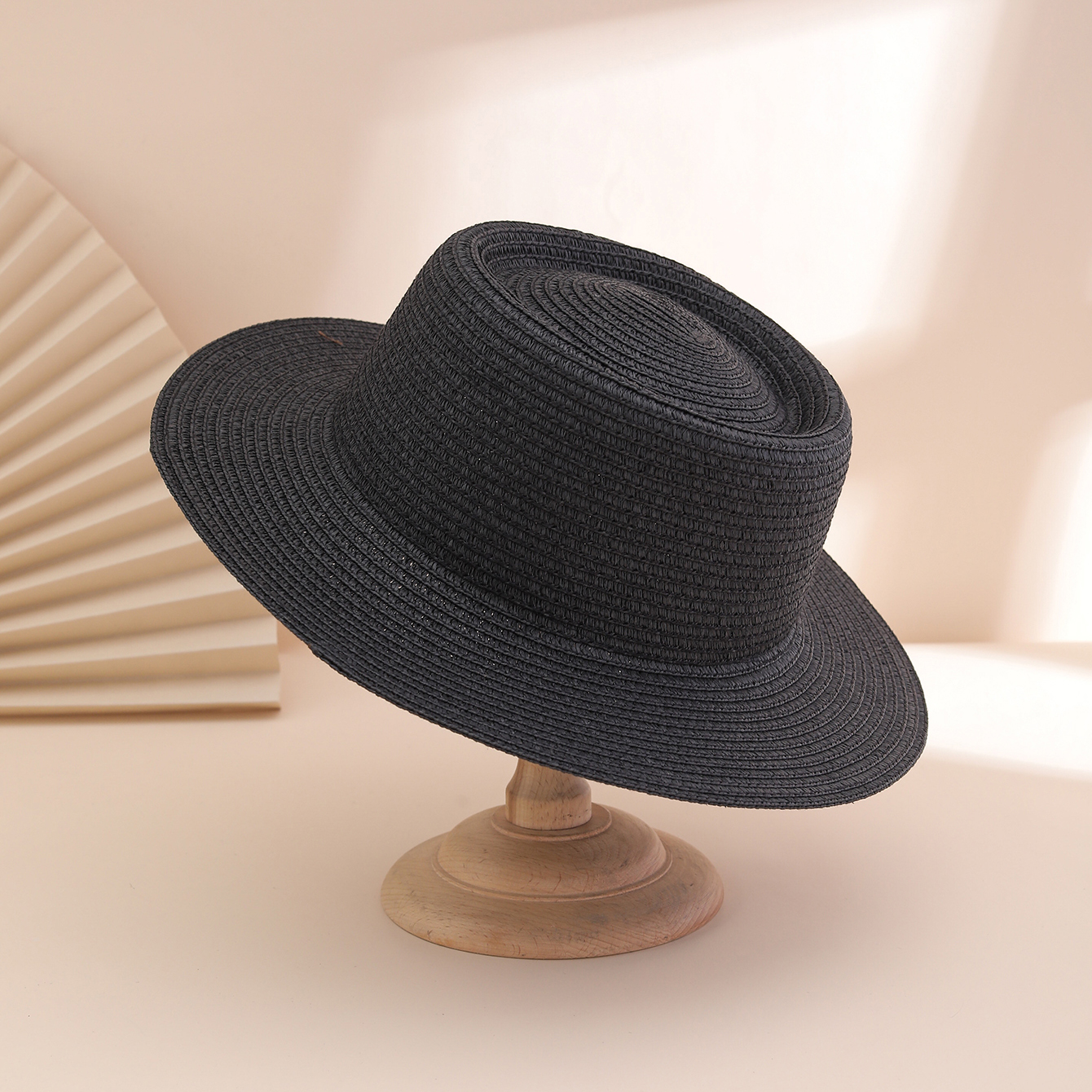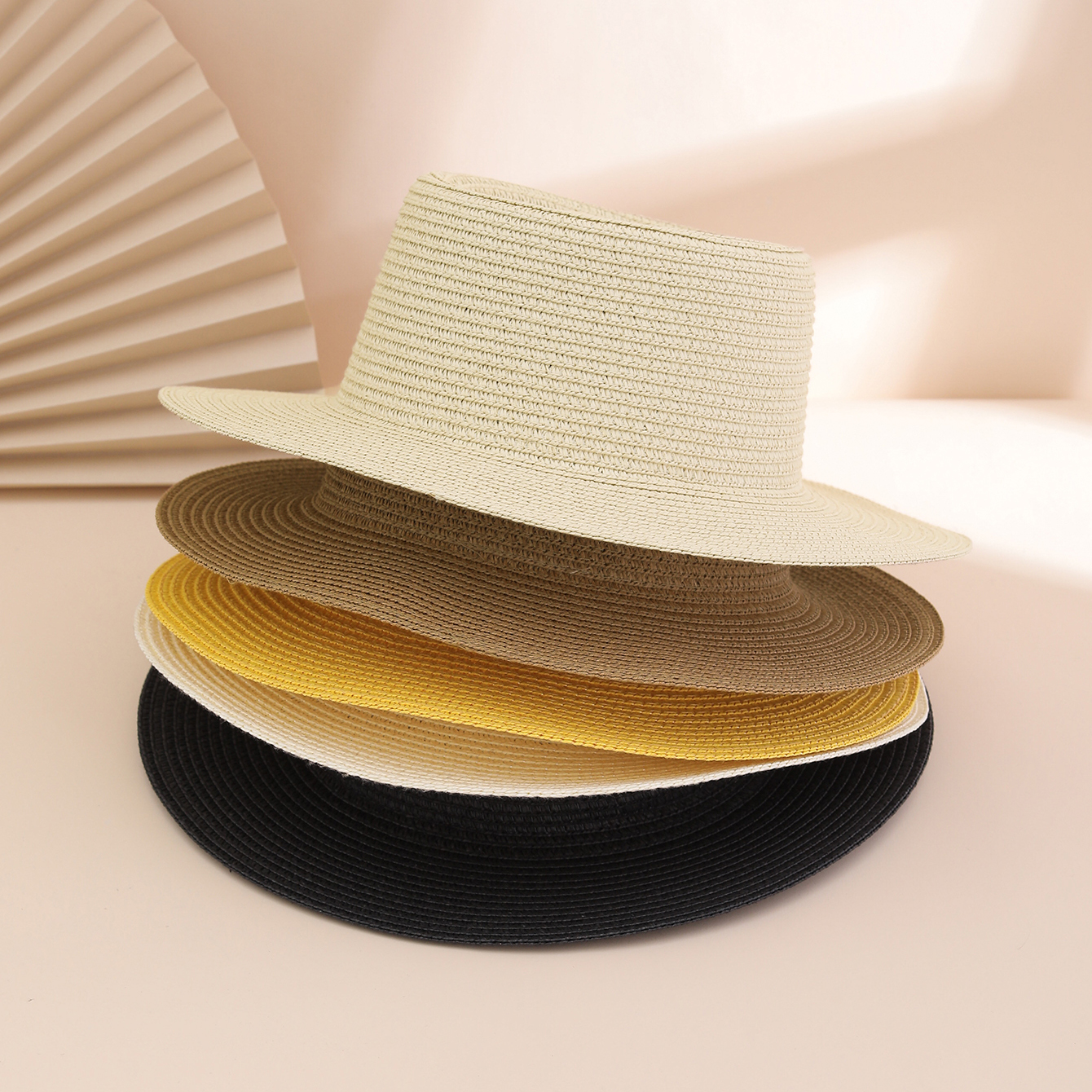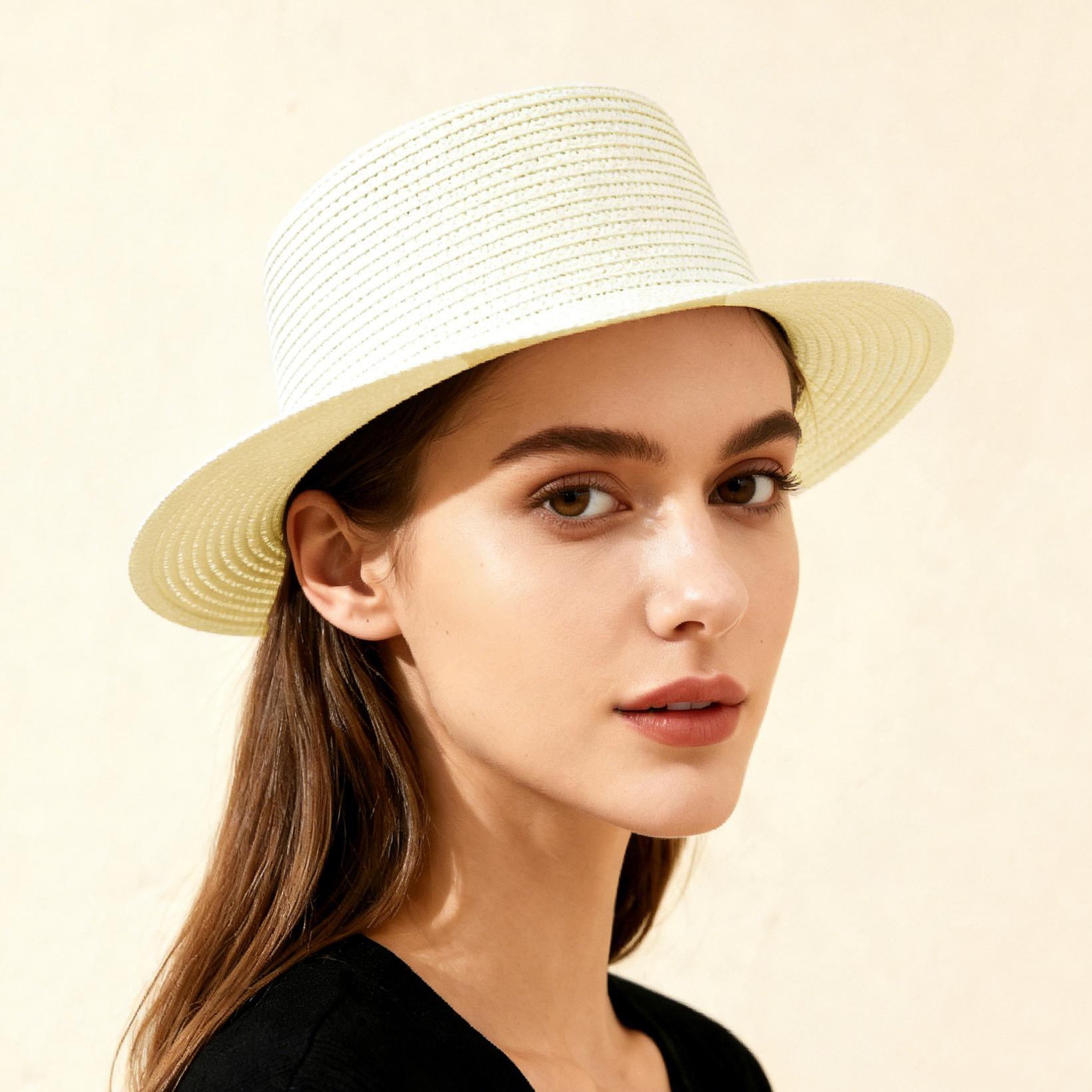 A stylish and versatile sun hat for ladies, featuring a solid color broad brim and foldable concave top. Perfect for outdoor travel, beach vacations.
