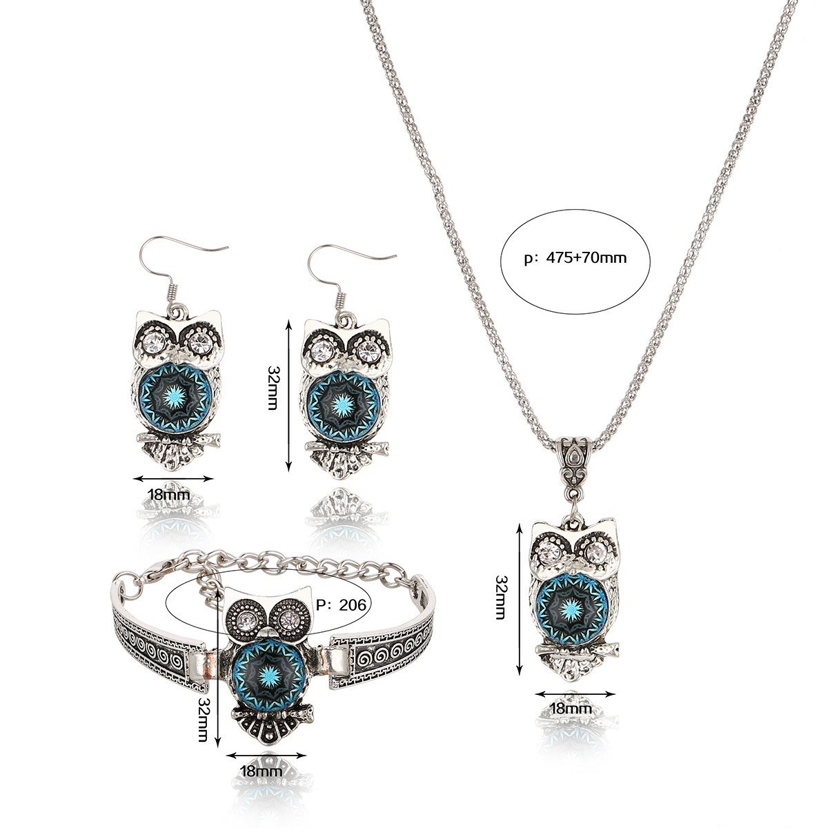 Set combination: earrings + necklace + hand accessories